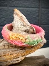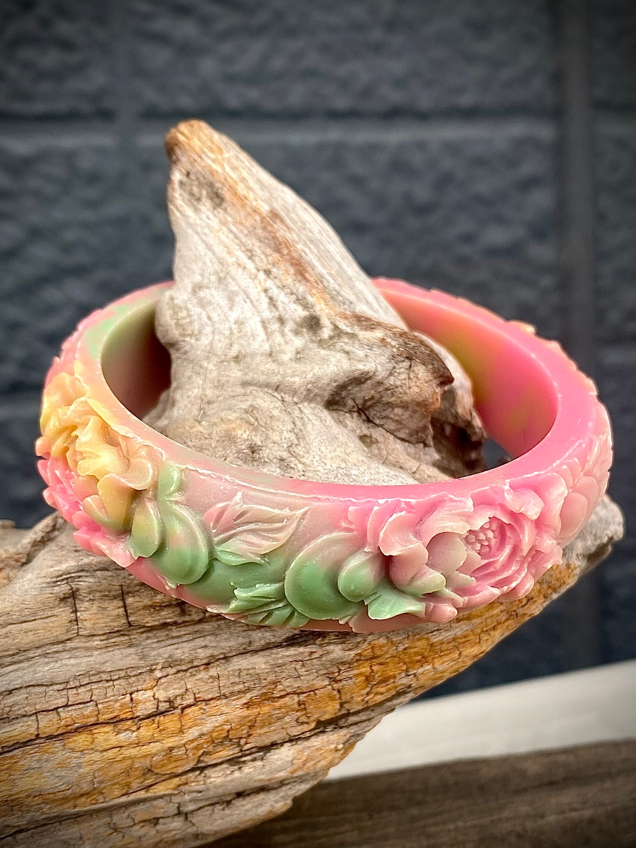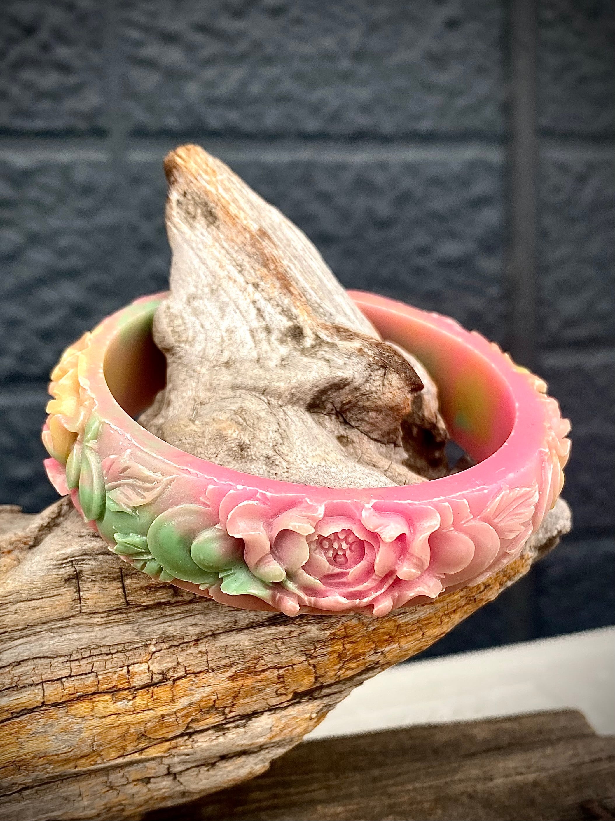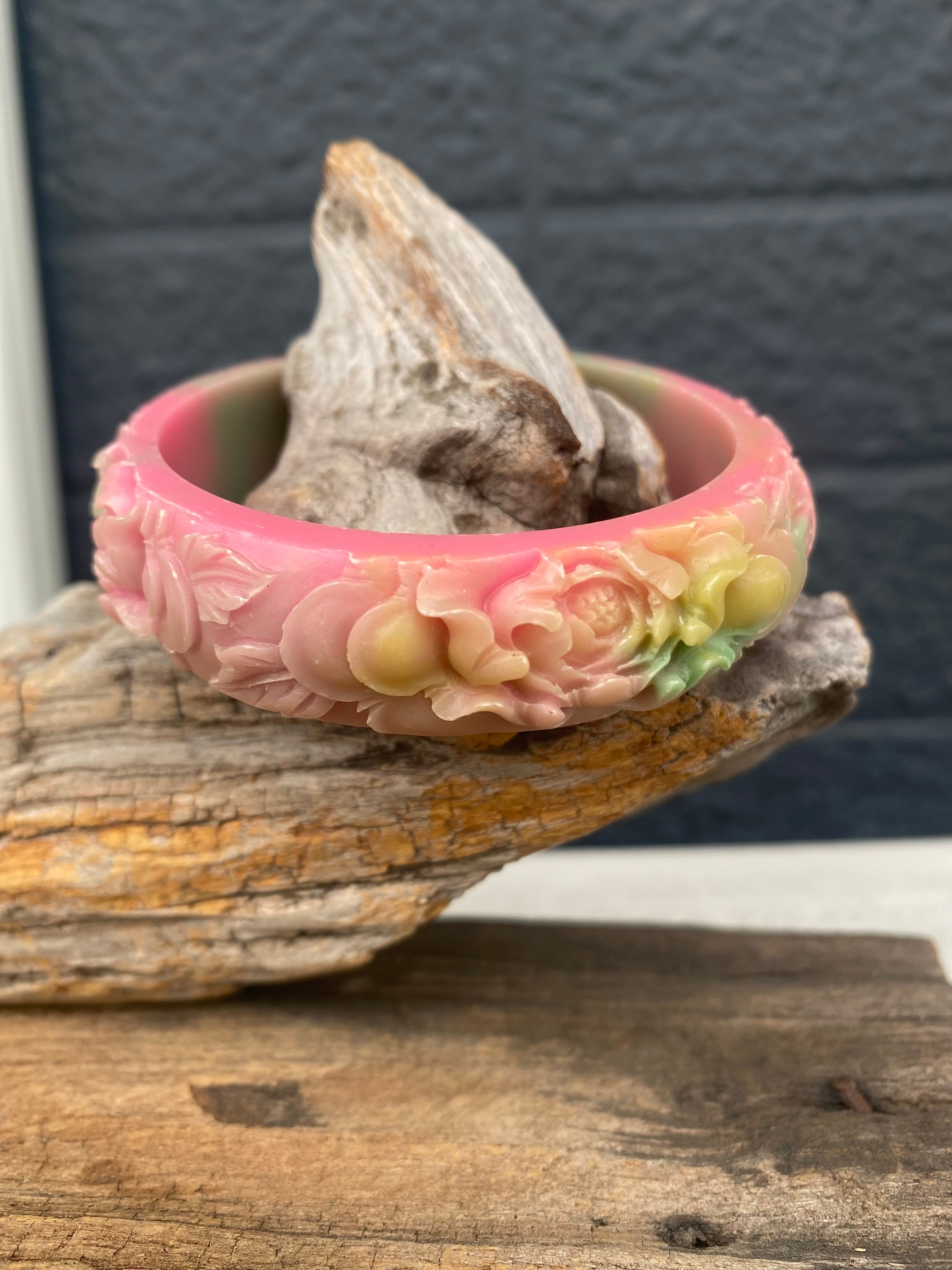 セレクトインポートしました天然石塩源瑪瑙ロータスバングルです。