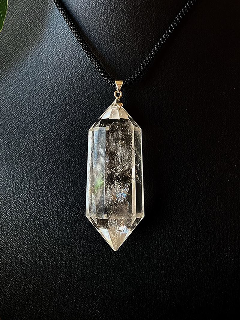 セレクトインポートしました天然石レインボー水晶ダイヤモンドカットロングペンダントです。