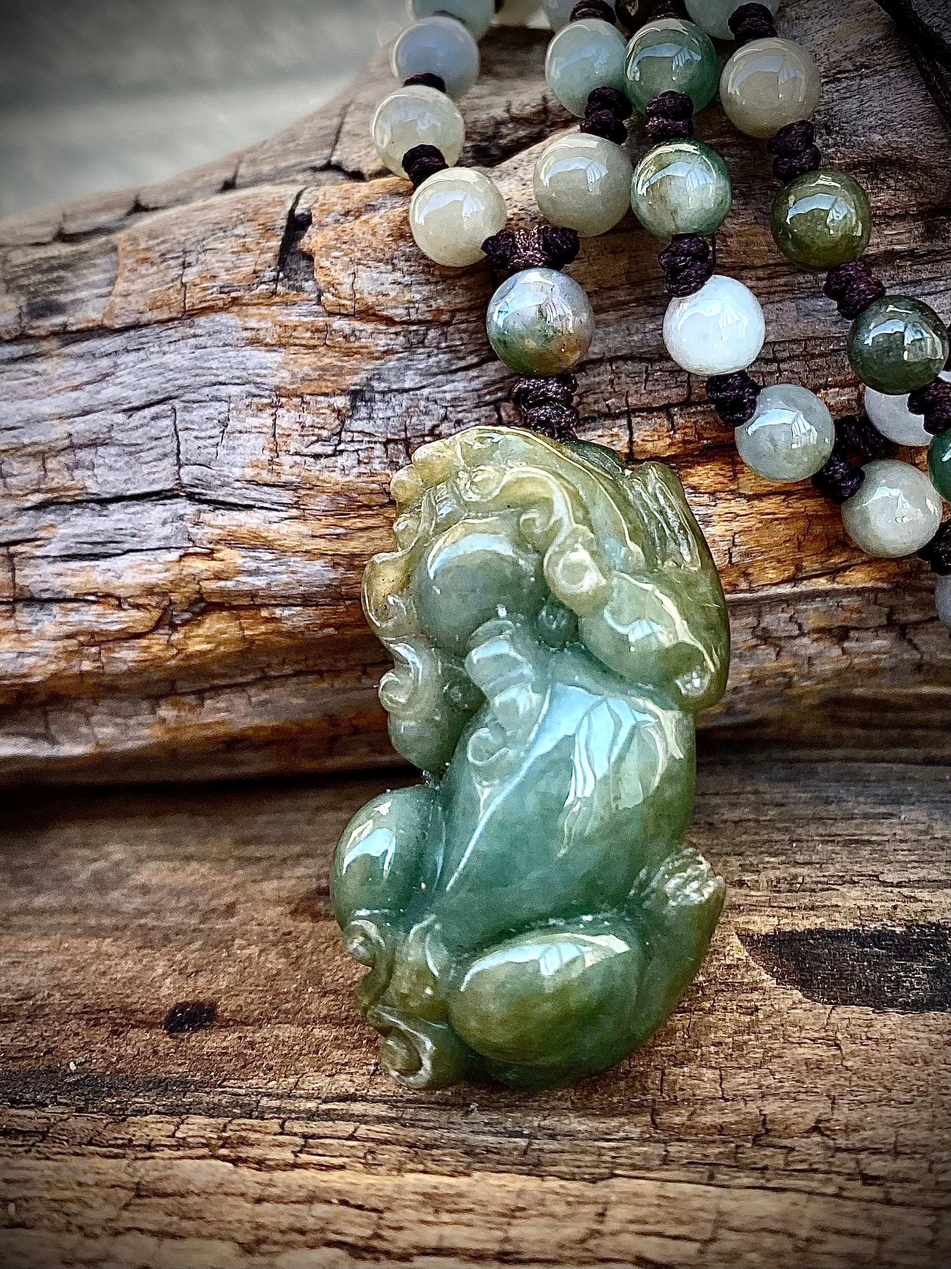 【Reserved】天然石グリーン翡翠ひきゅうペンダント