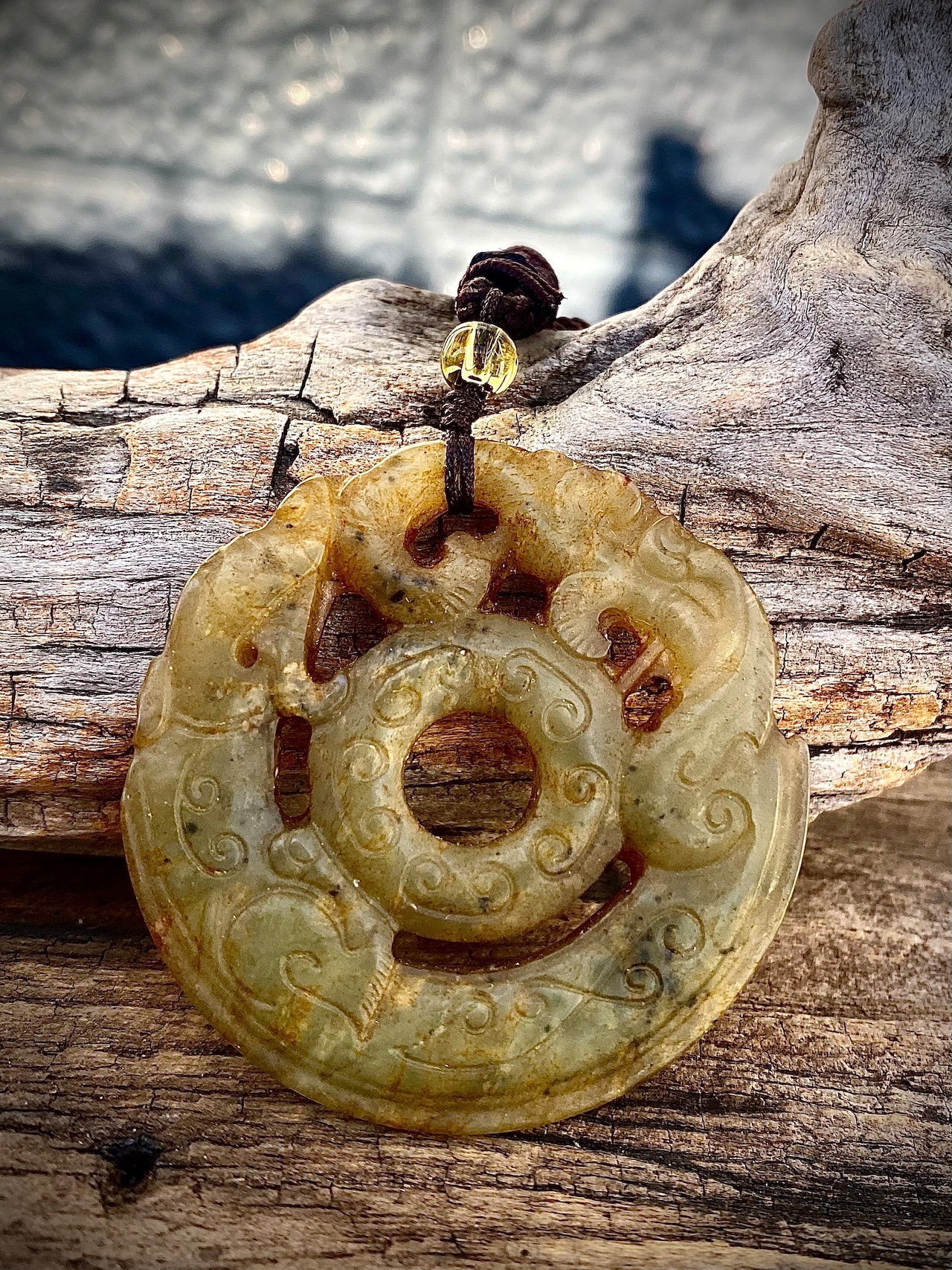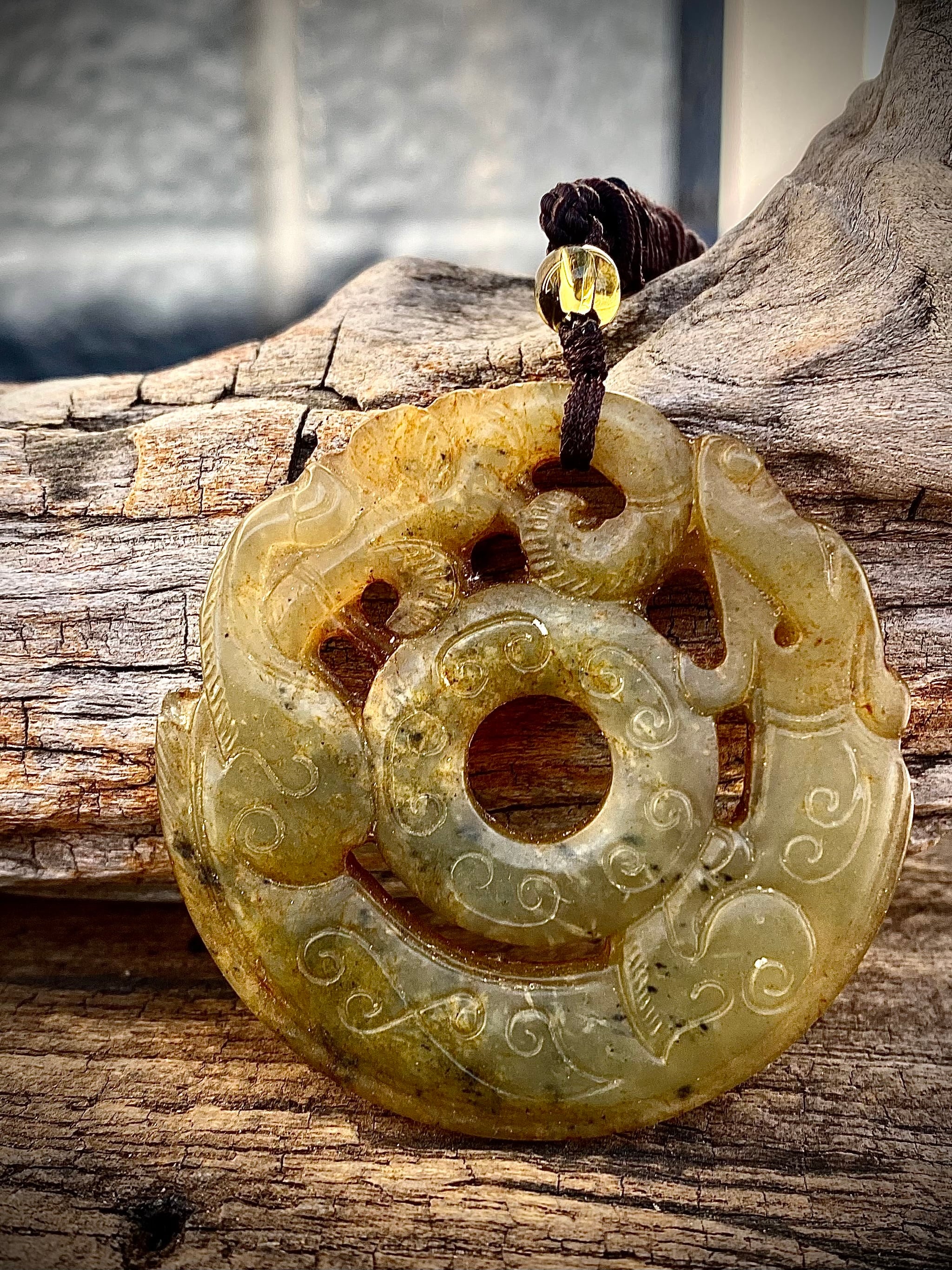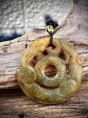 天然石 岫玉翡翠ドラゴンピースバックルペンダント