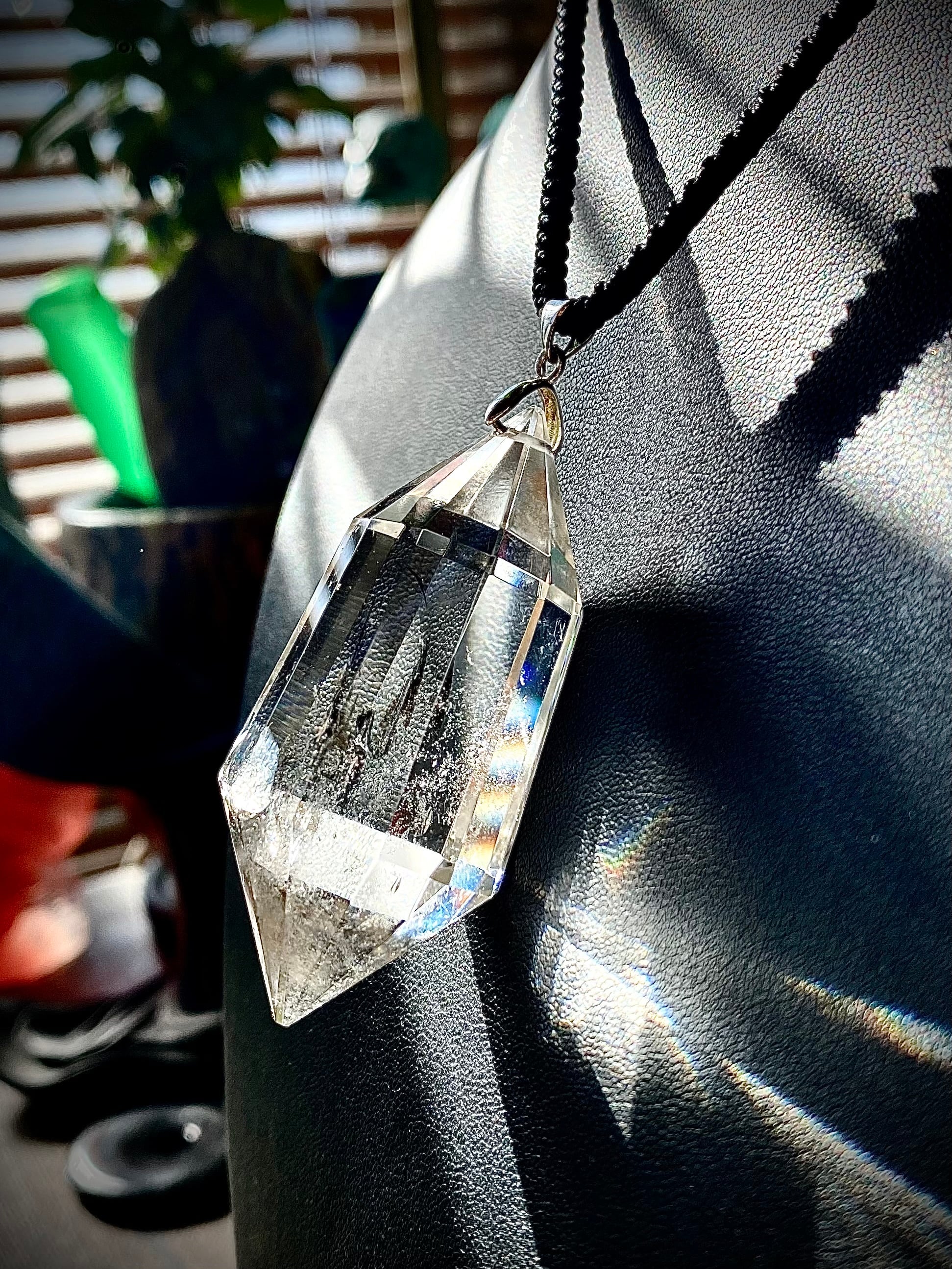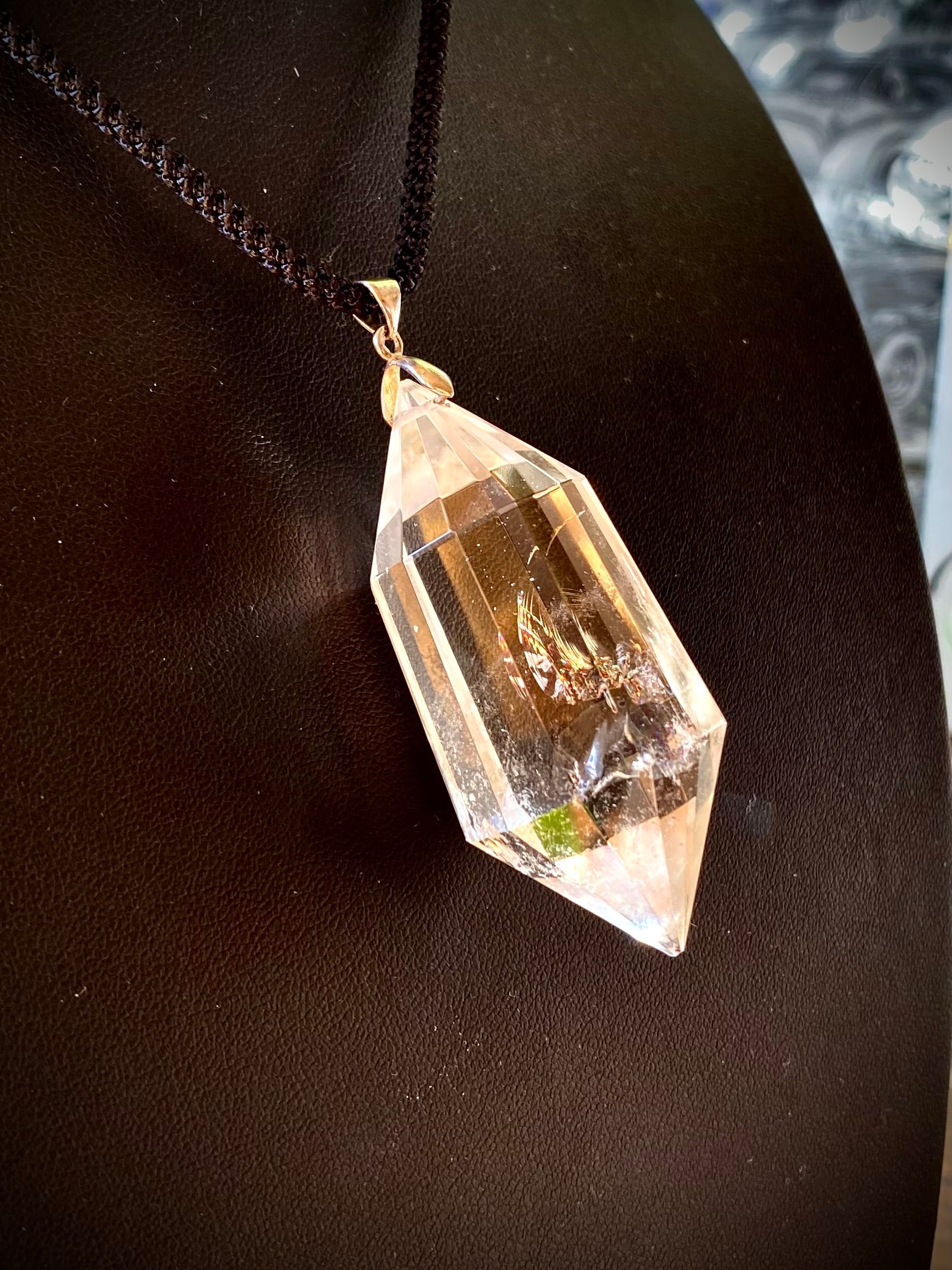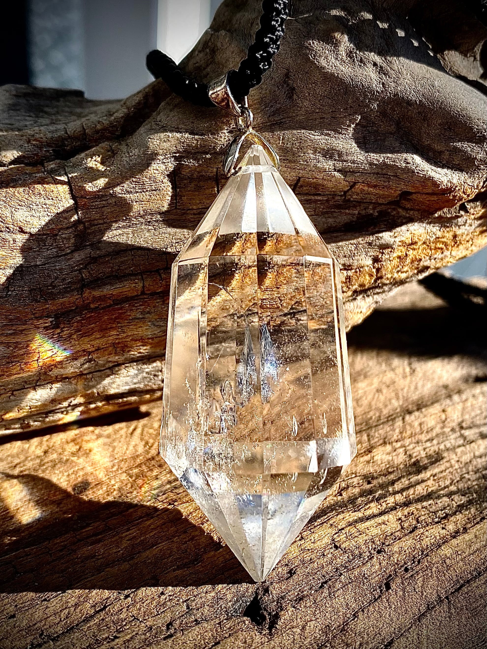 天然石水晶ダイヤモンドカットロングペンダント