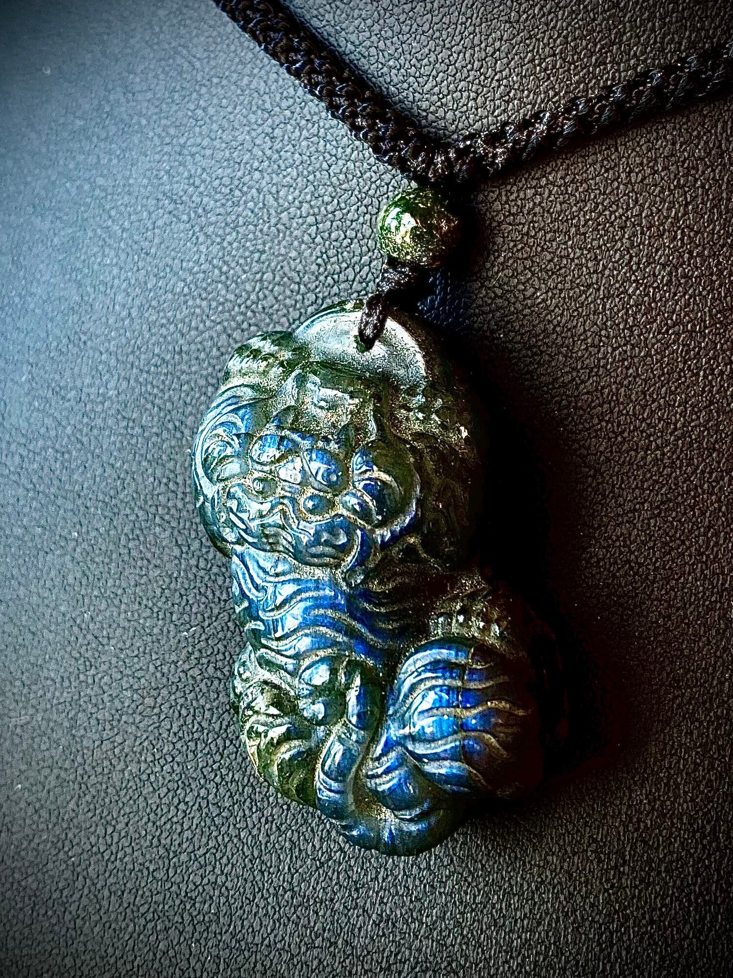 天然石ラブラドライトひきゅう(貔貅)ペンダント