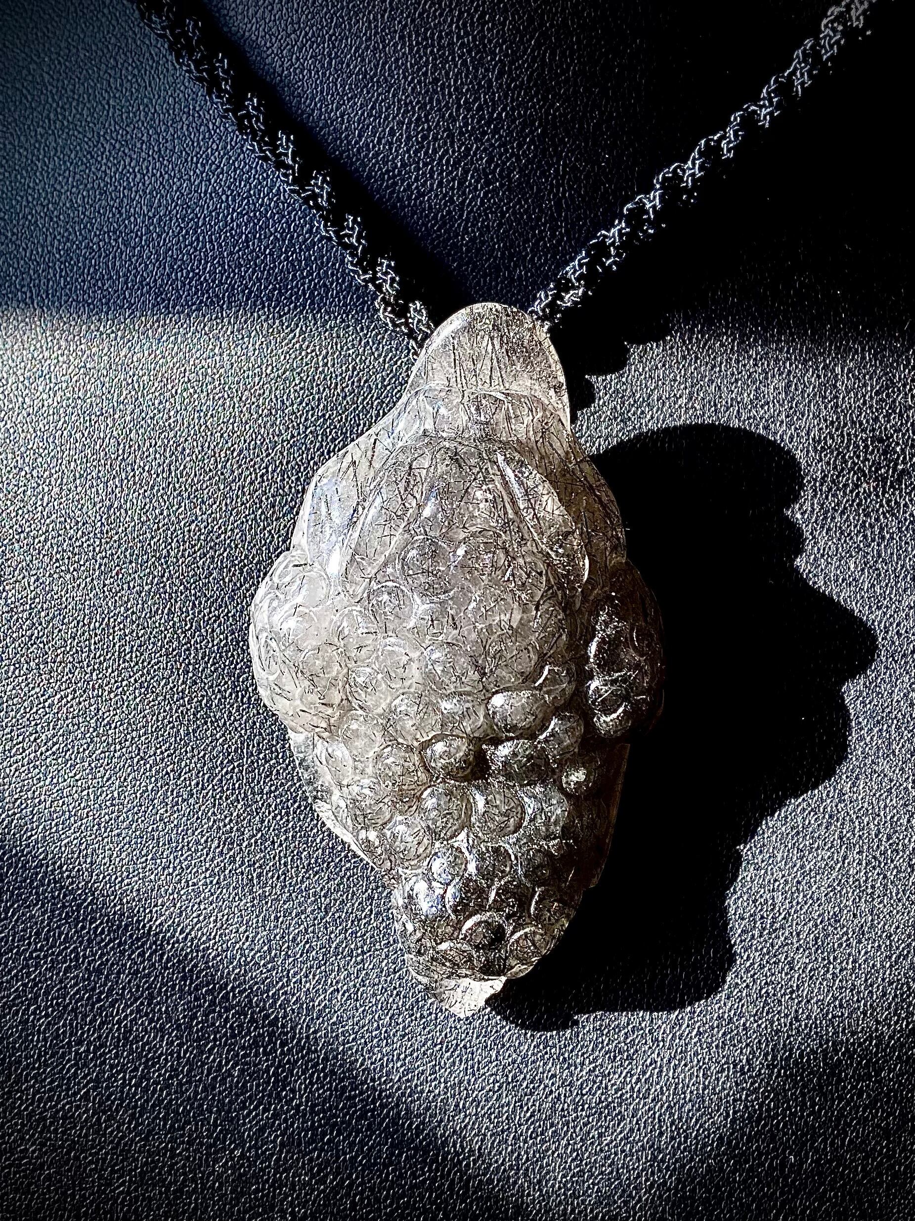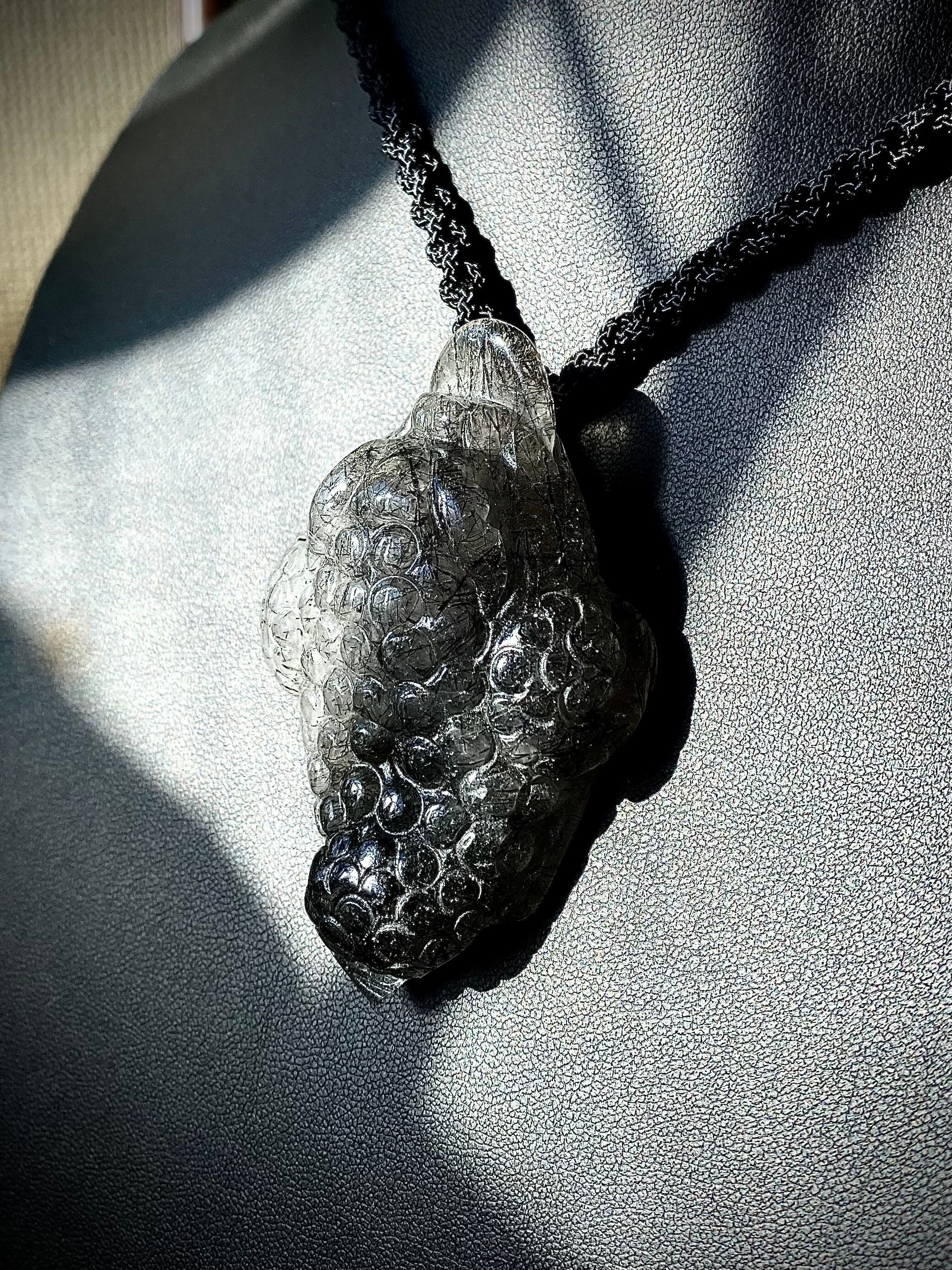 天然石ブラックルチルクォーツマネートードペンダントです。