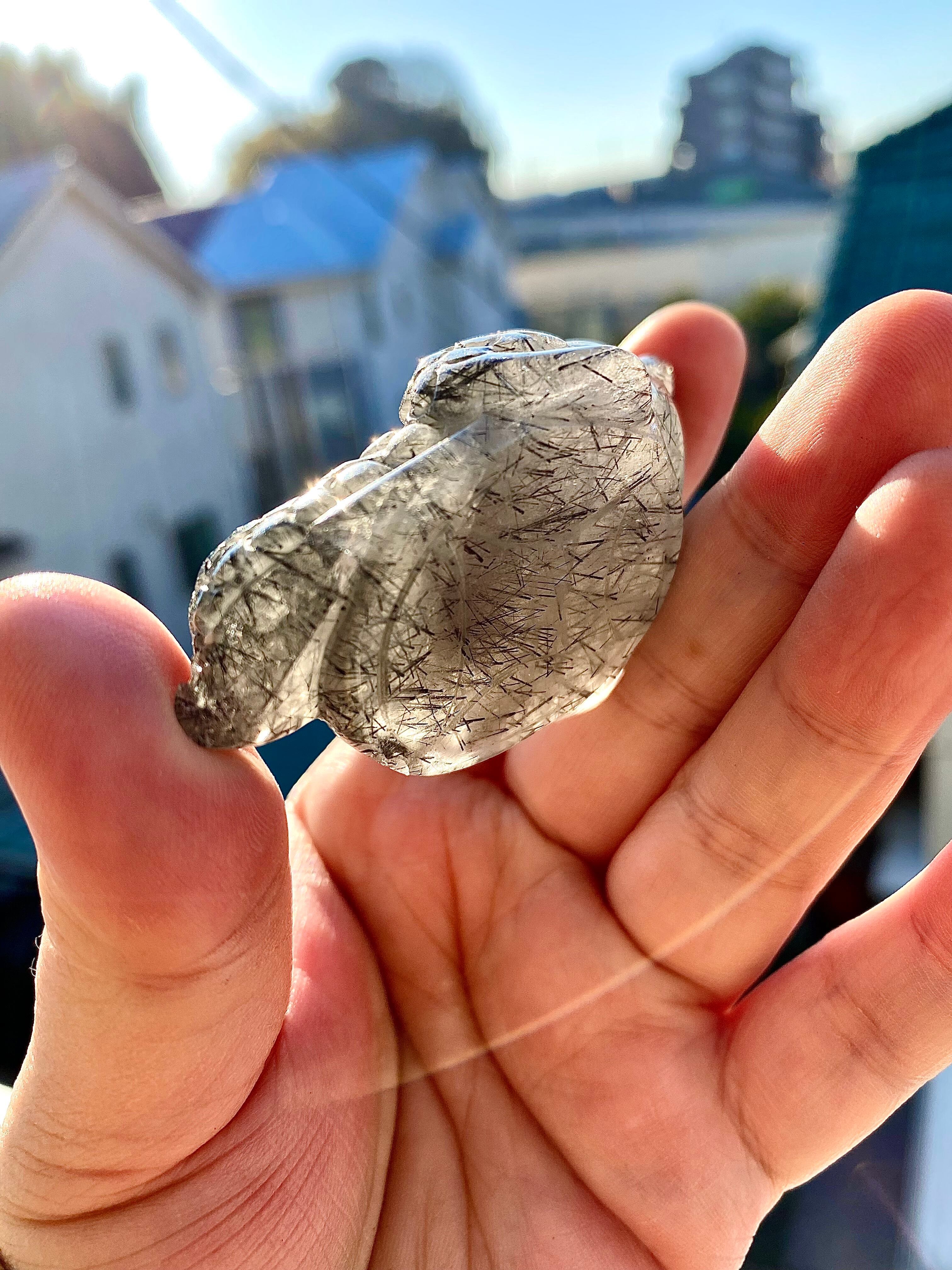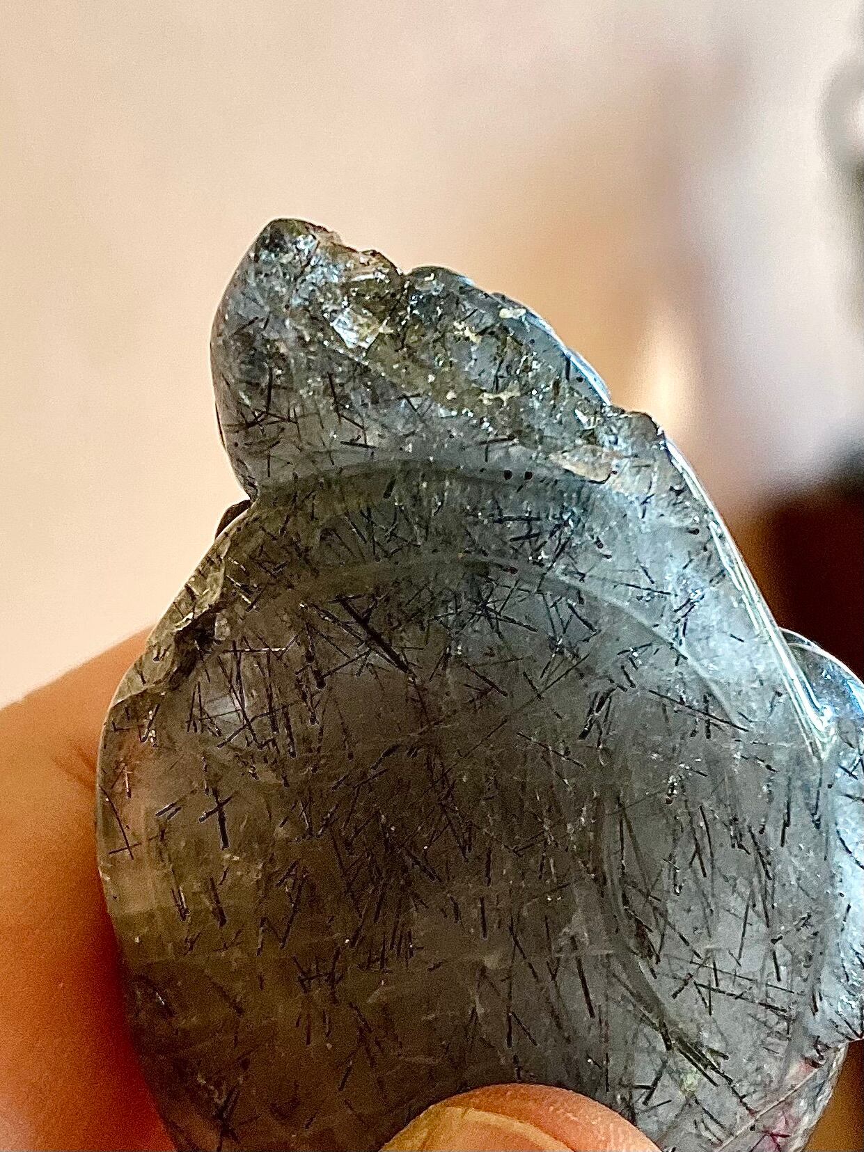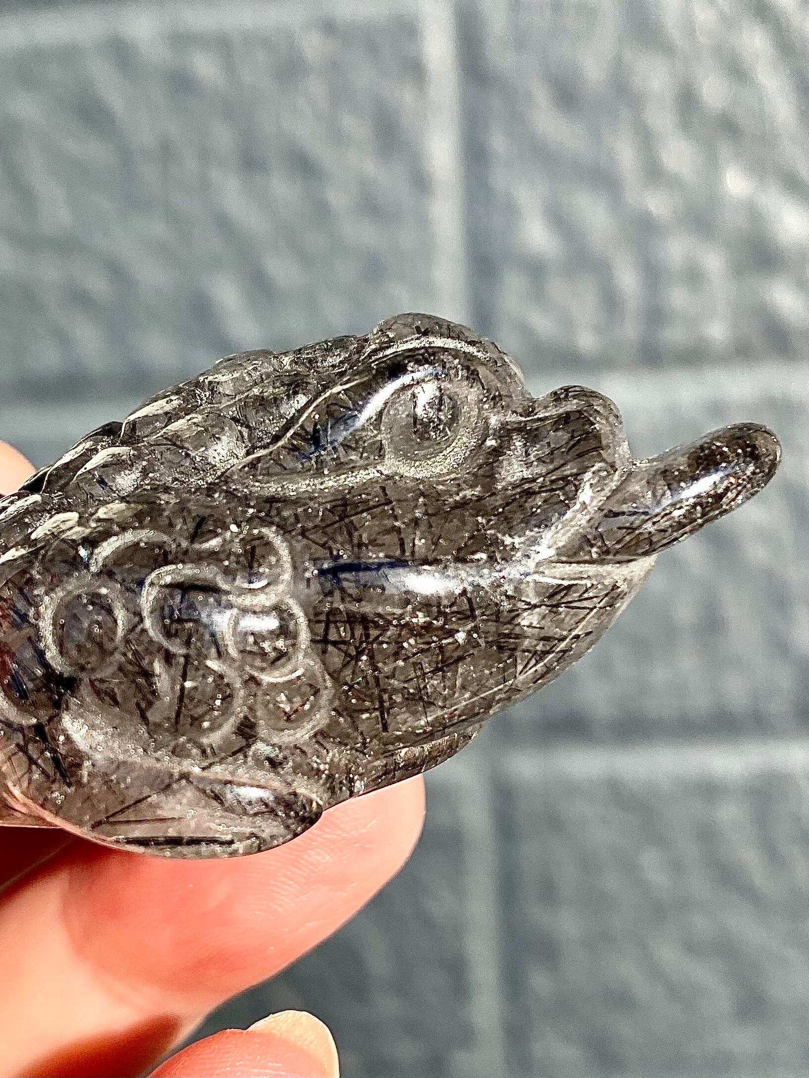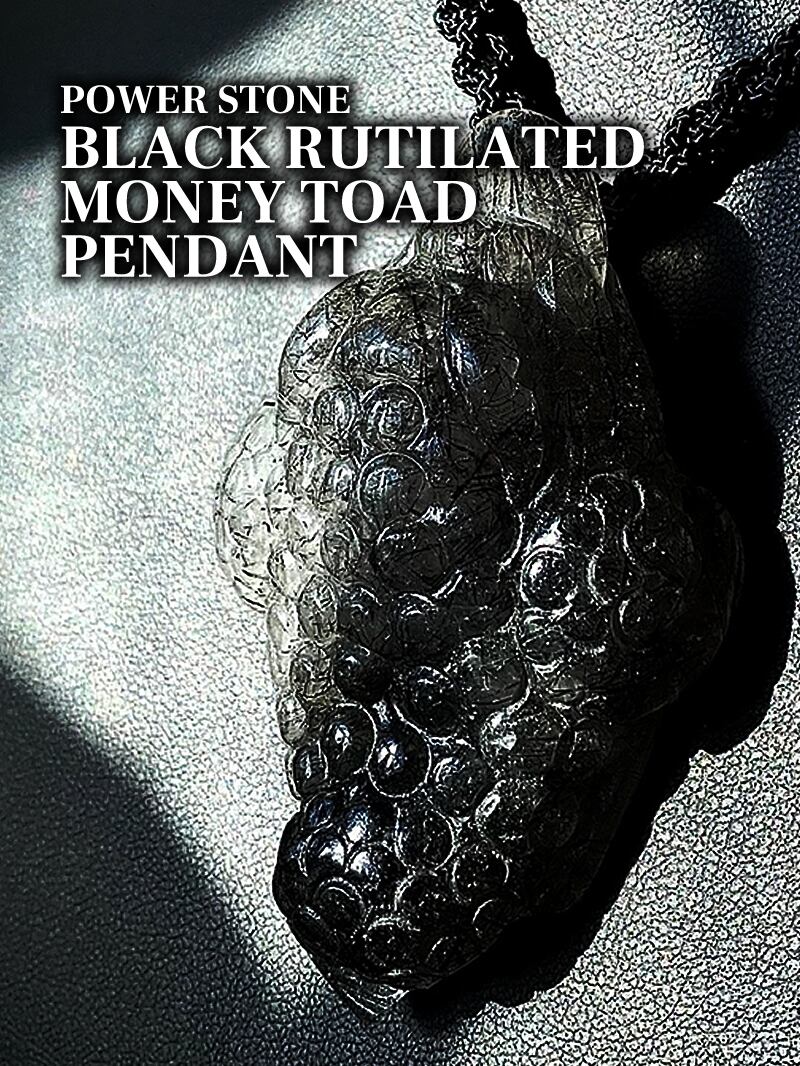 天然石ブラックルチルクォーツマネートードペンダント【難あり】