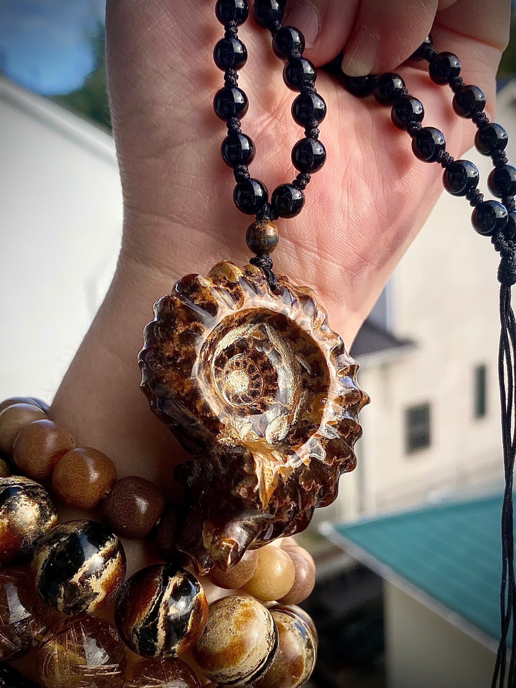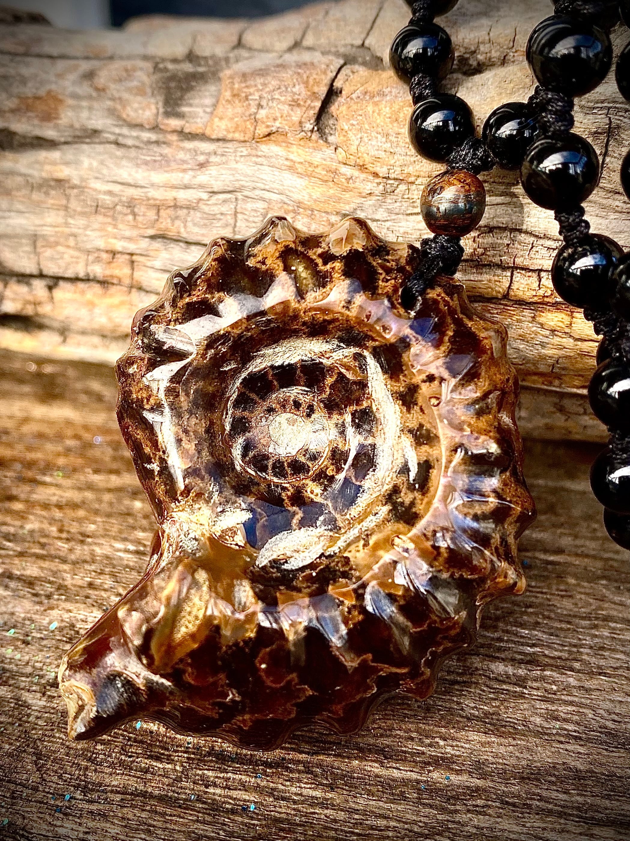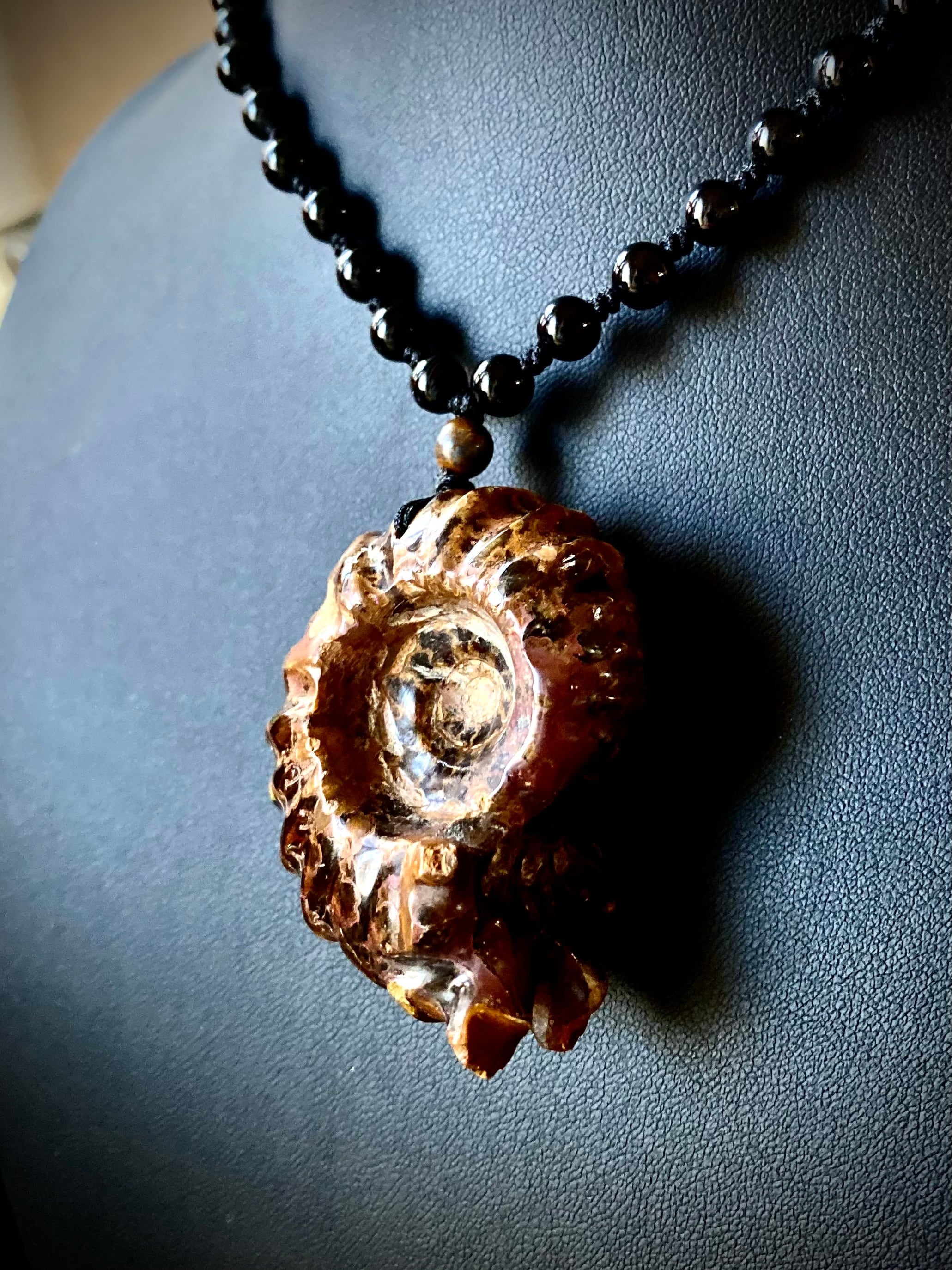 アンモナイトのペンダントです。もともとは化石として売られていたものに