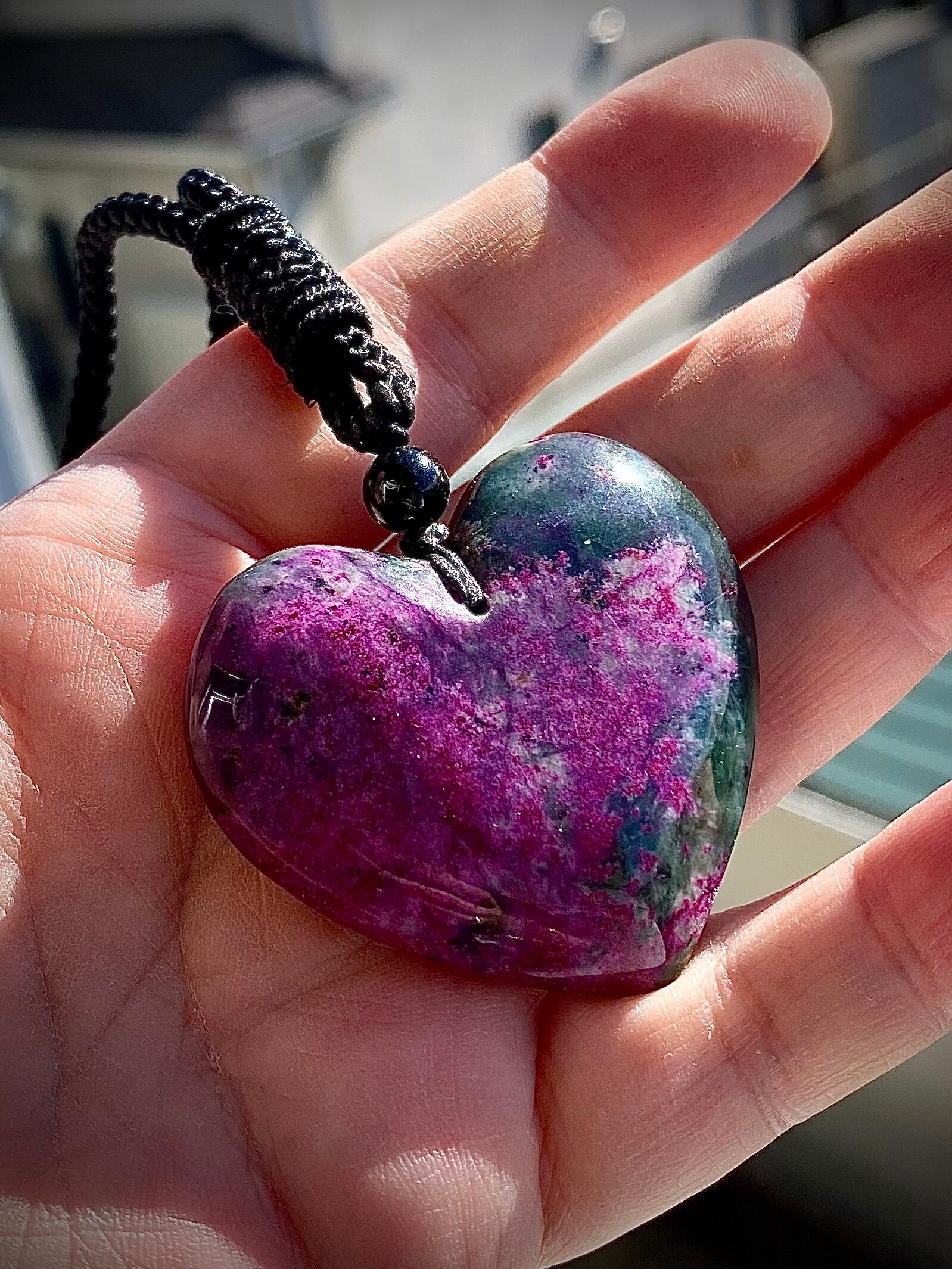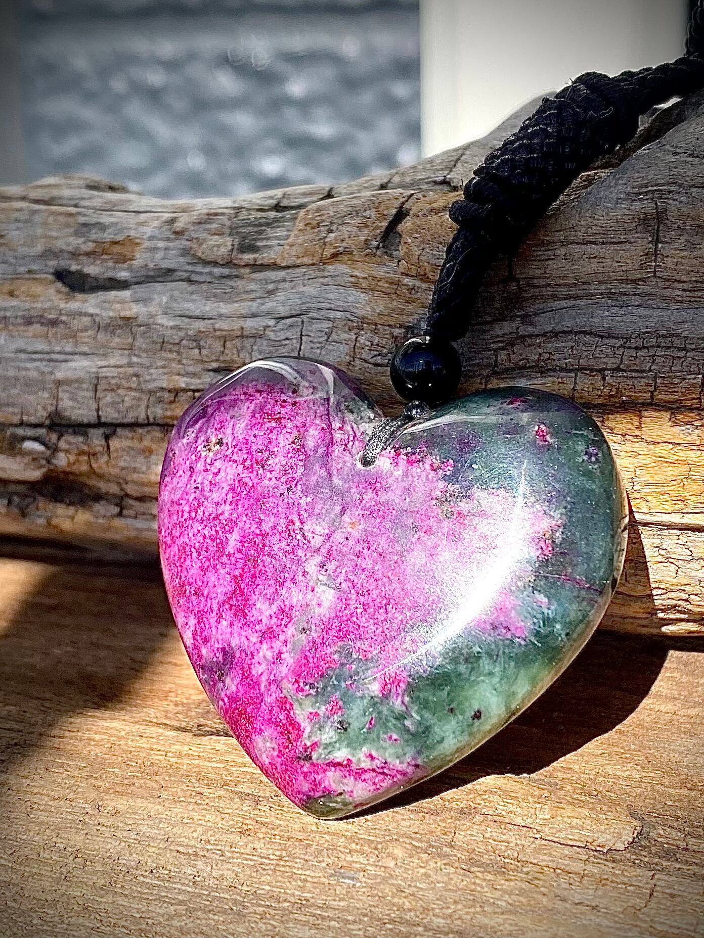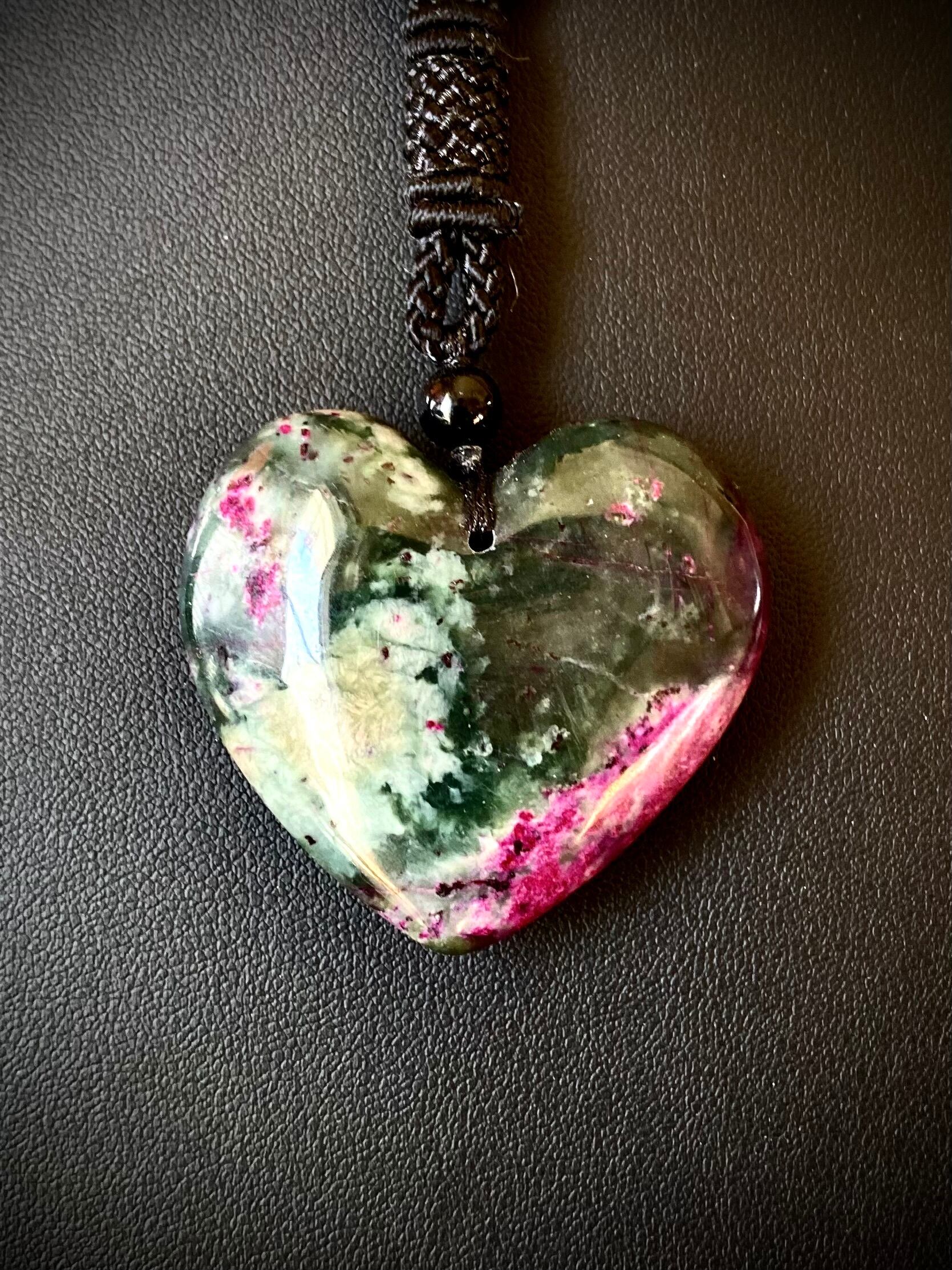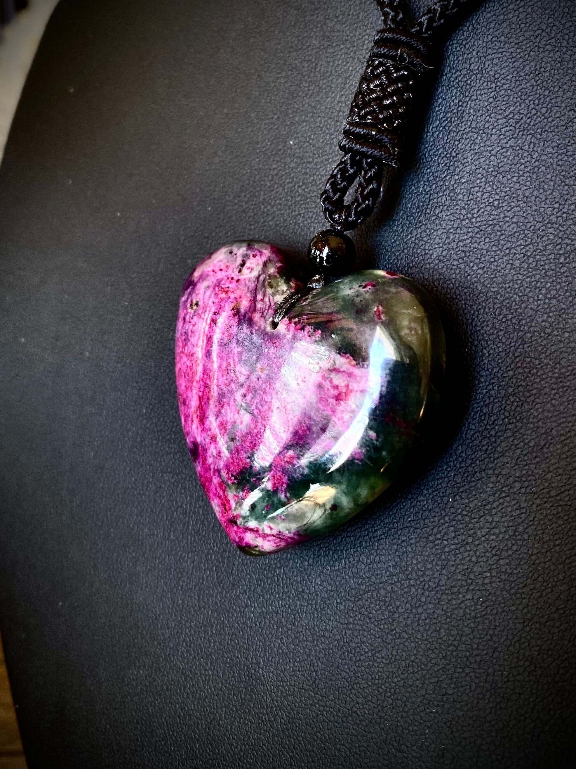 天然石ピンク翡翠ハートペンダント