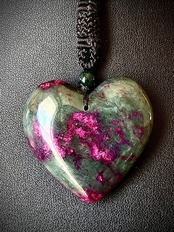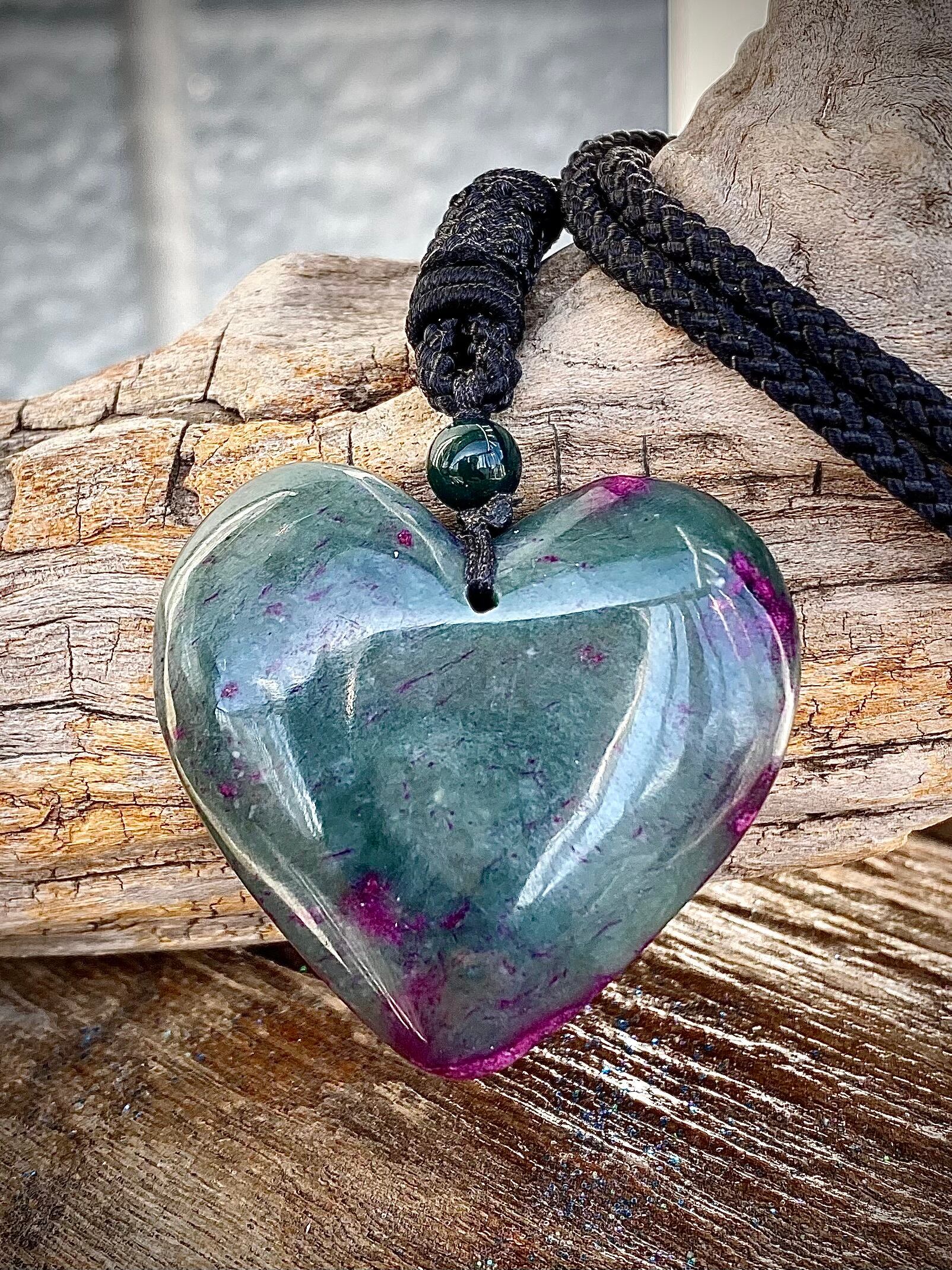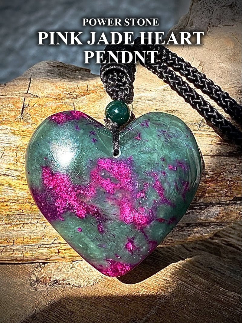 翡翠のハートペンダントです。まるでルビーみたいに細かめに強めなピンクが