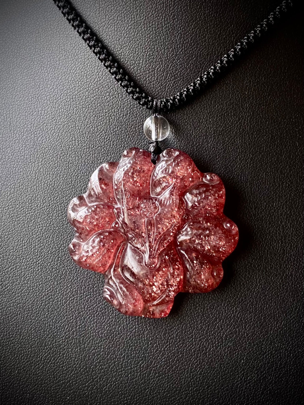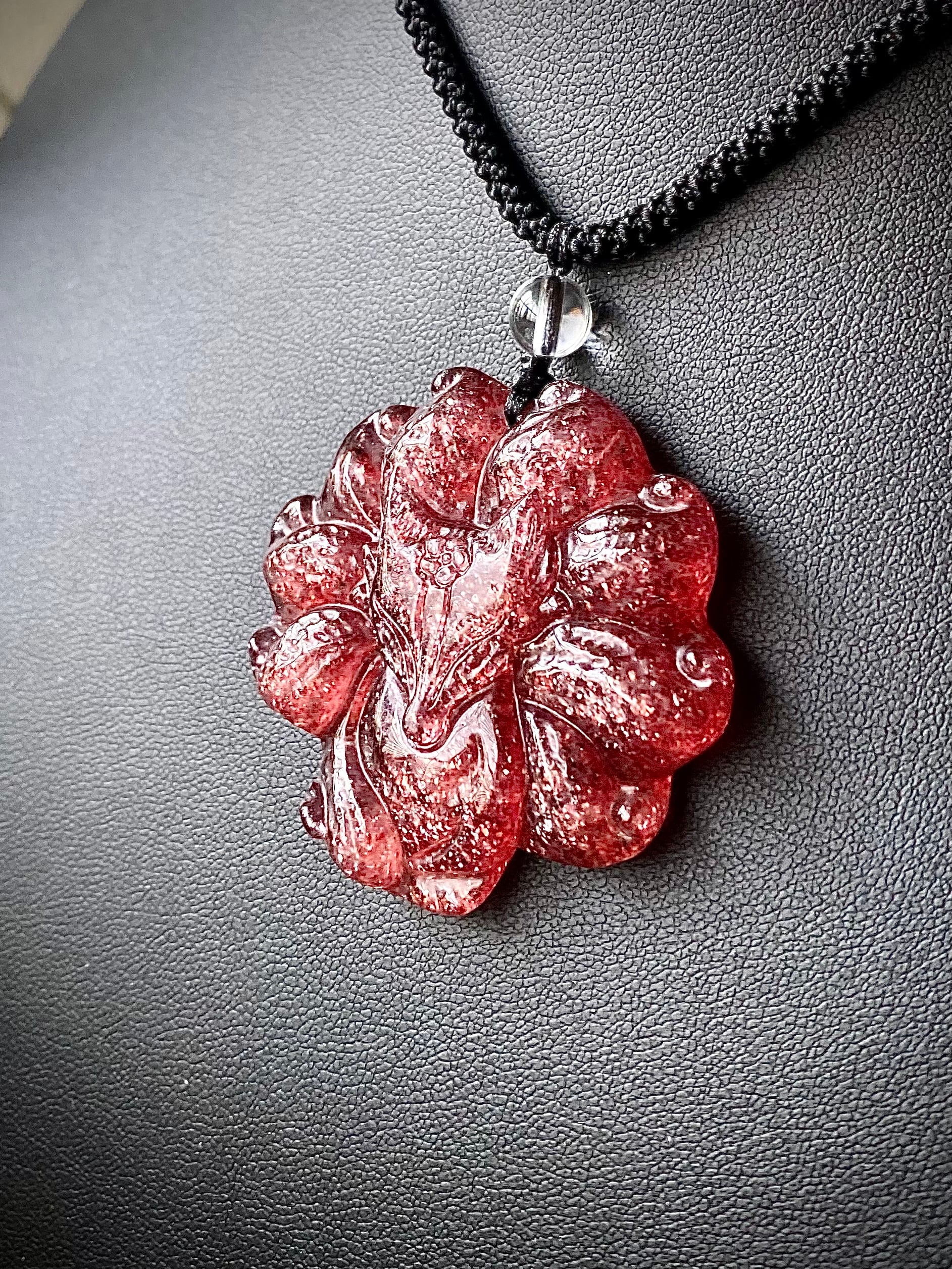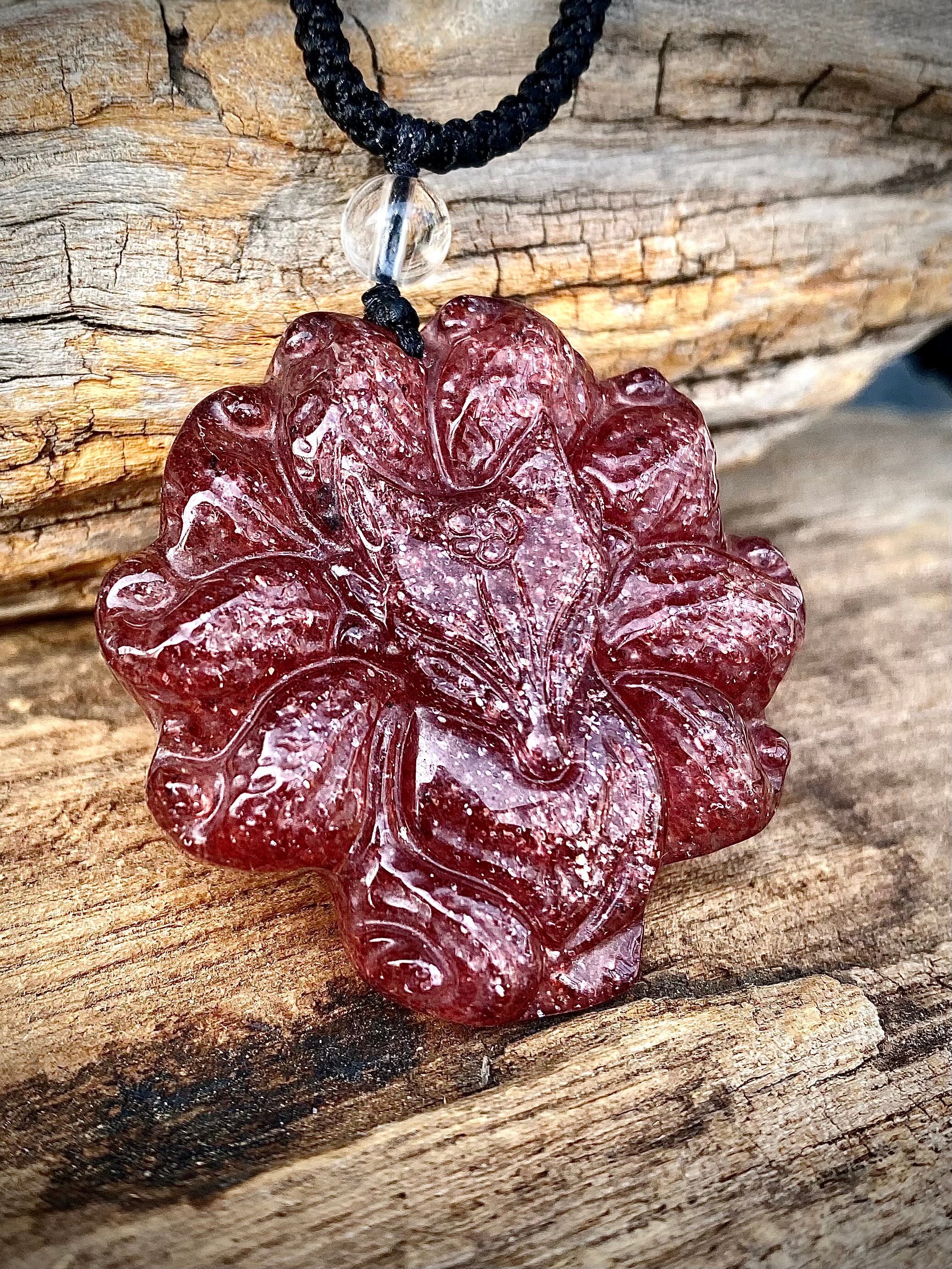 セレクトインポートしました天然石ストロベリークォーツ九尾ペンダントです。