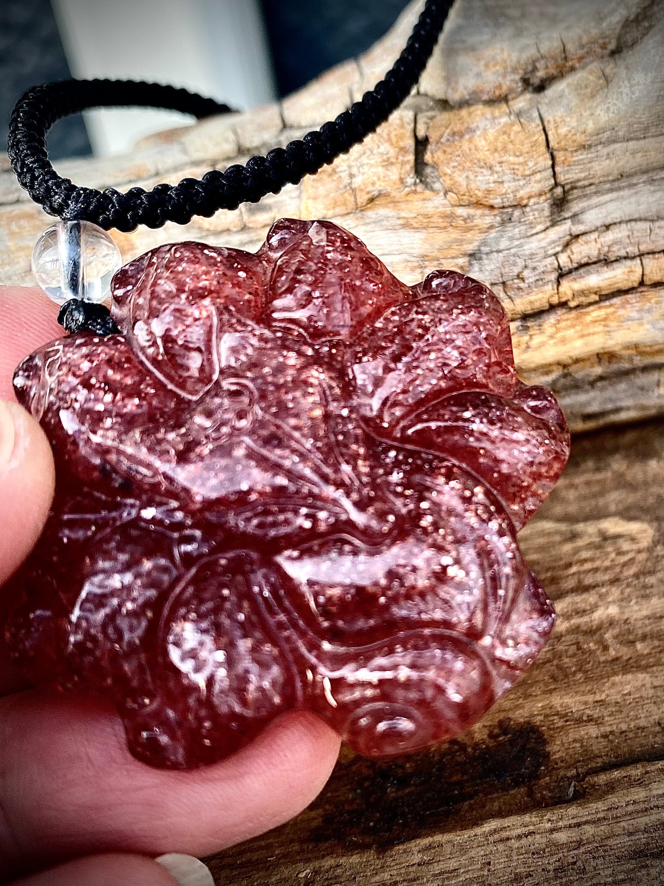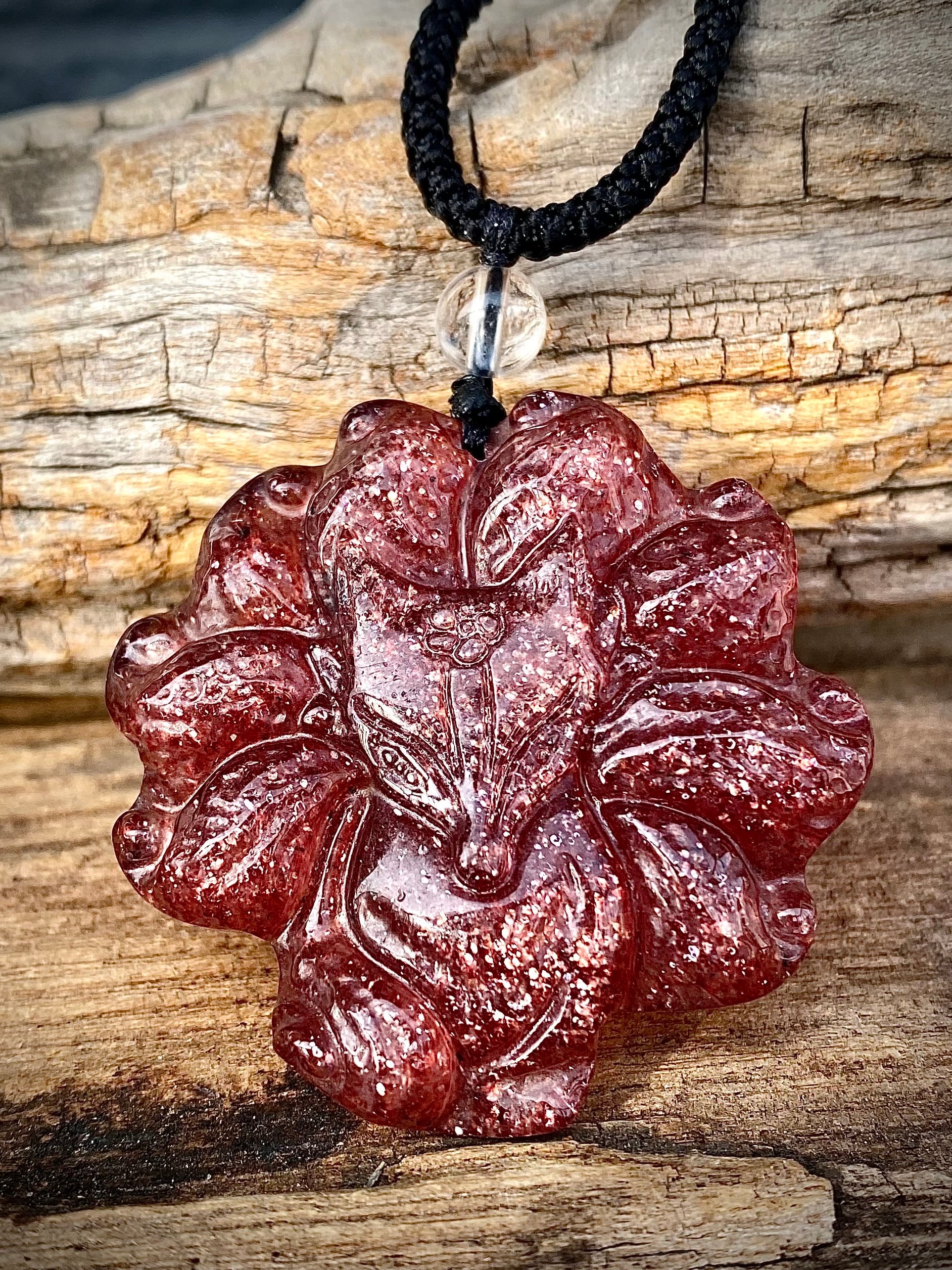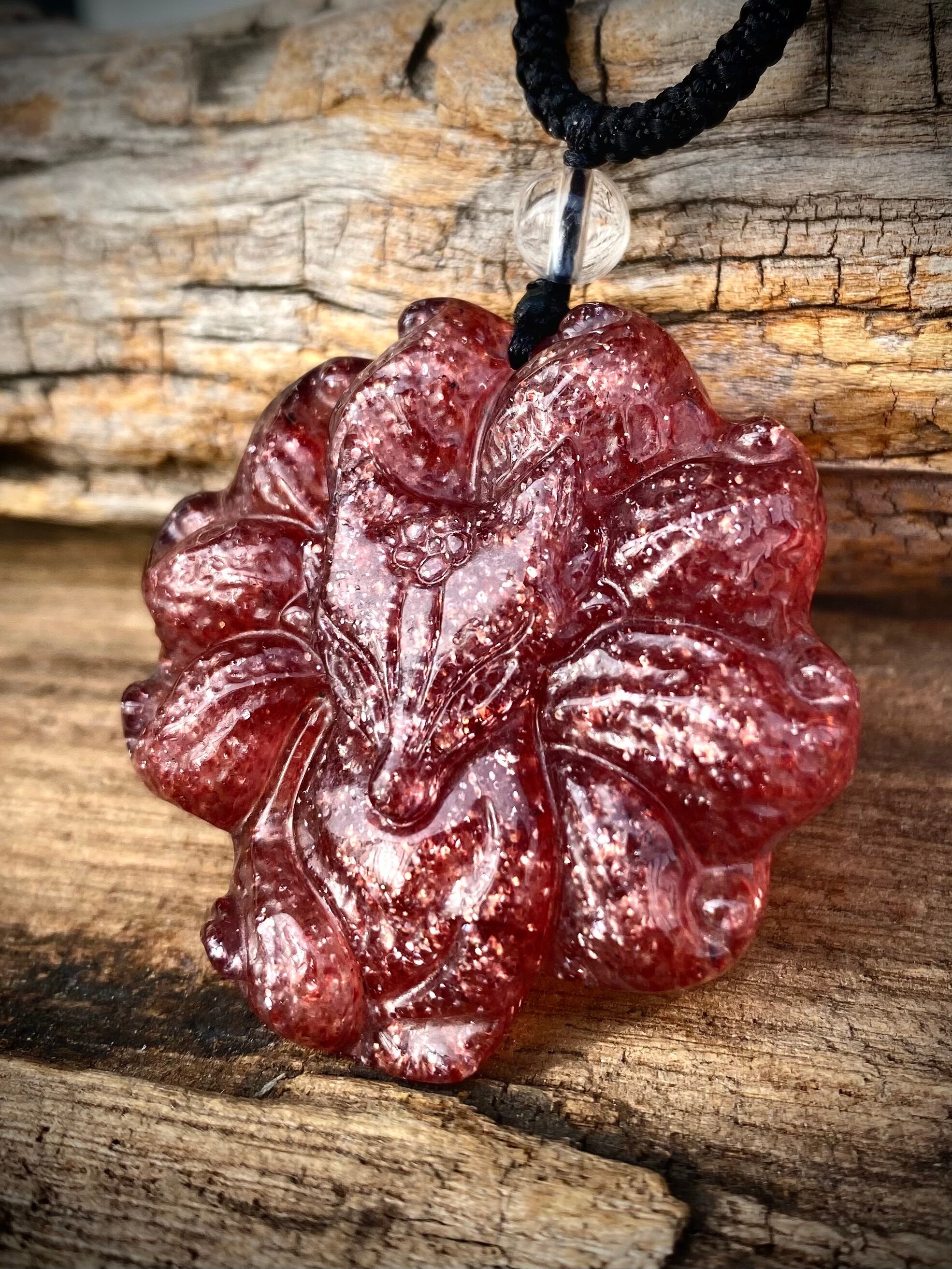 セレクトインポートしました天然石ストロベリークォーツ九尾ペンダントです。