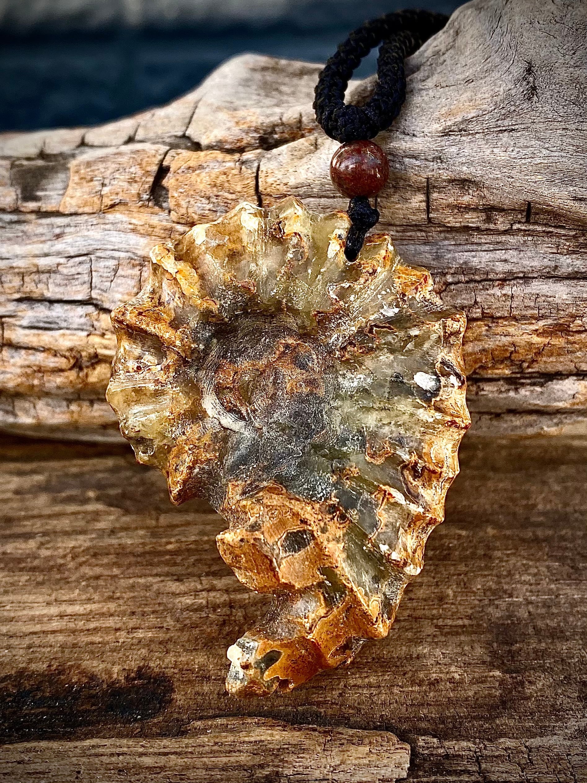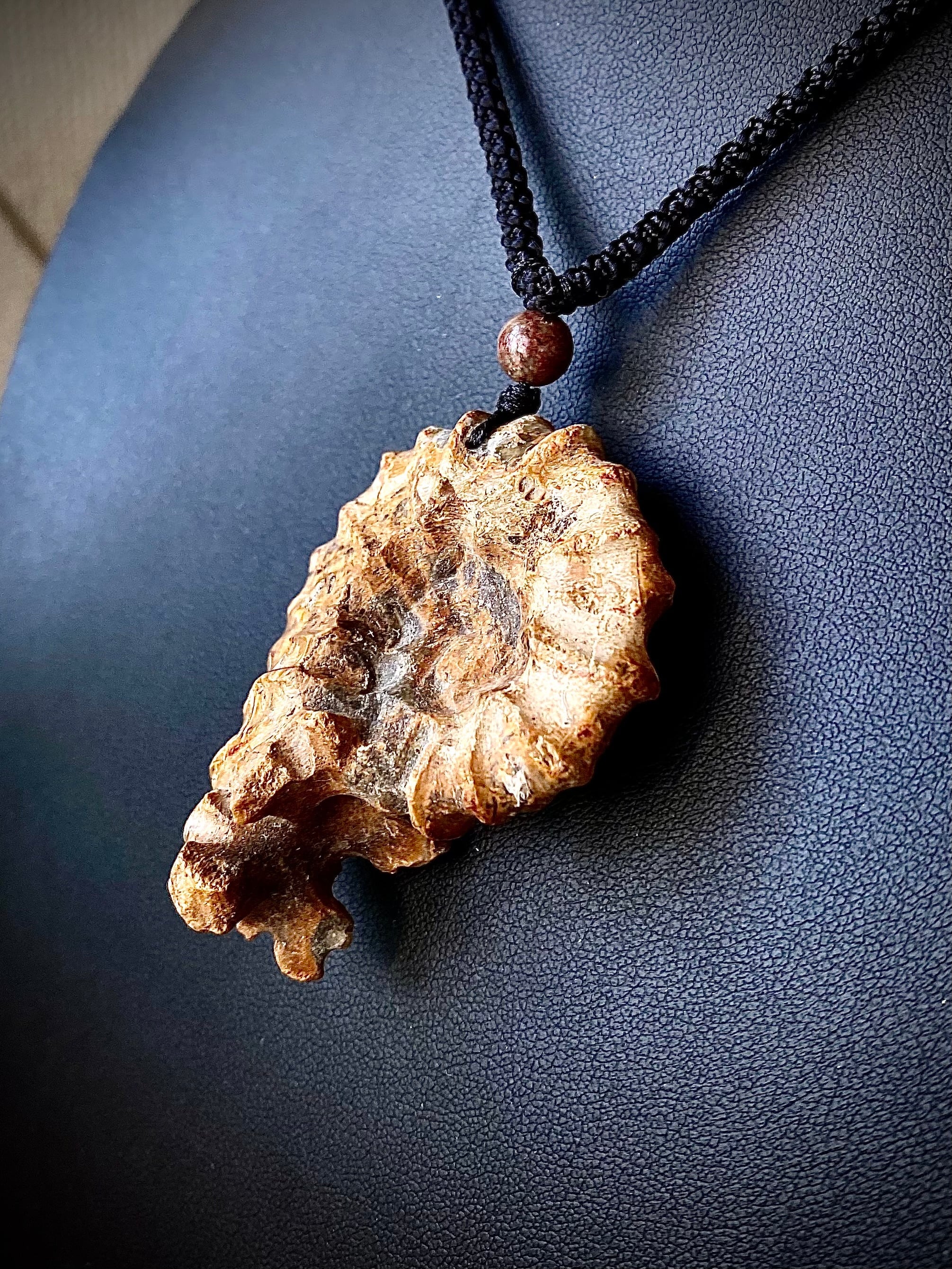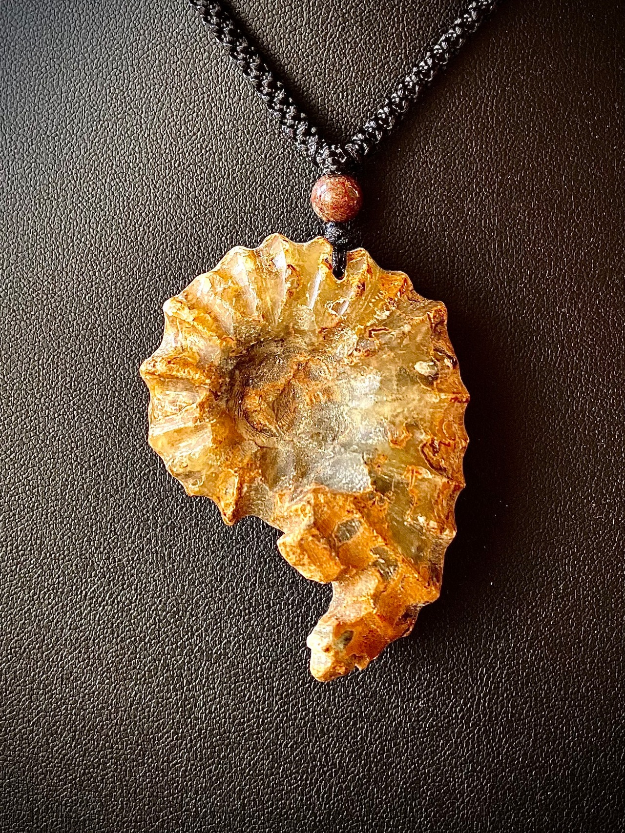 アンモナイトのペンダントです。もともとは化石として売られていたものに