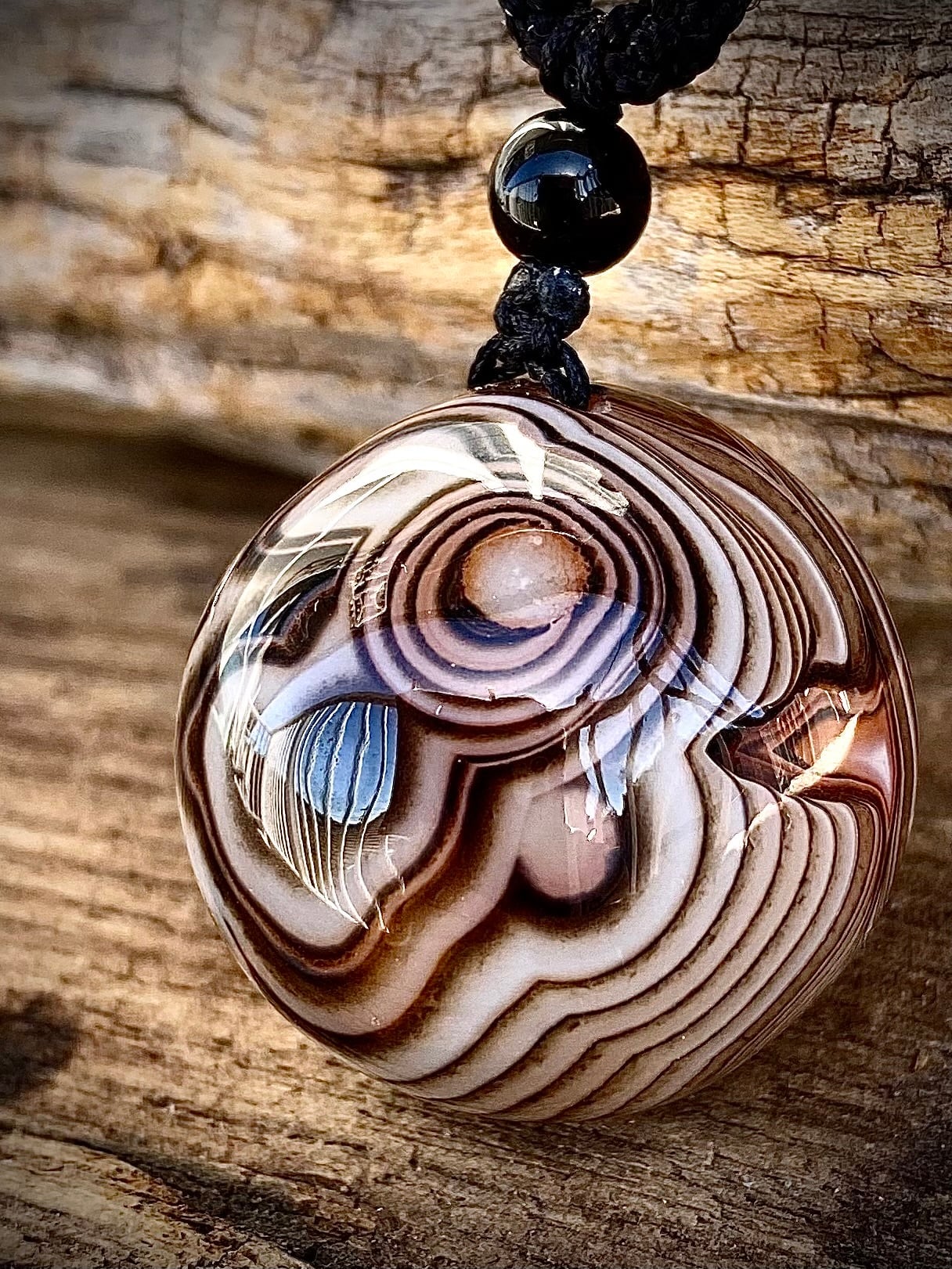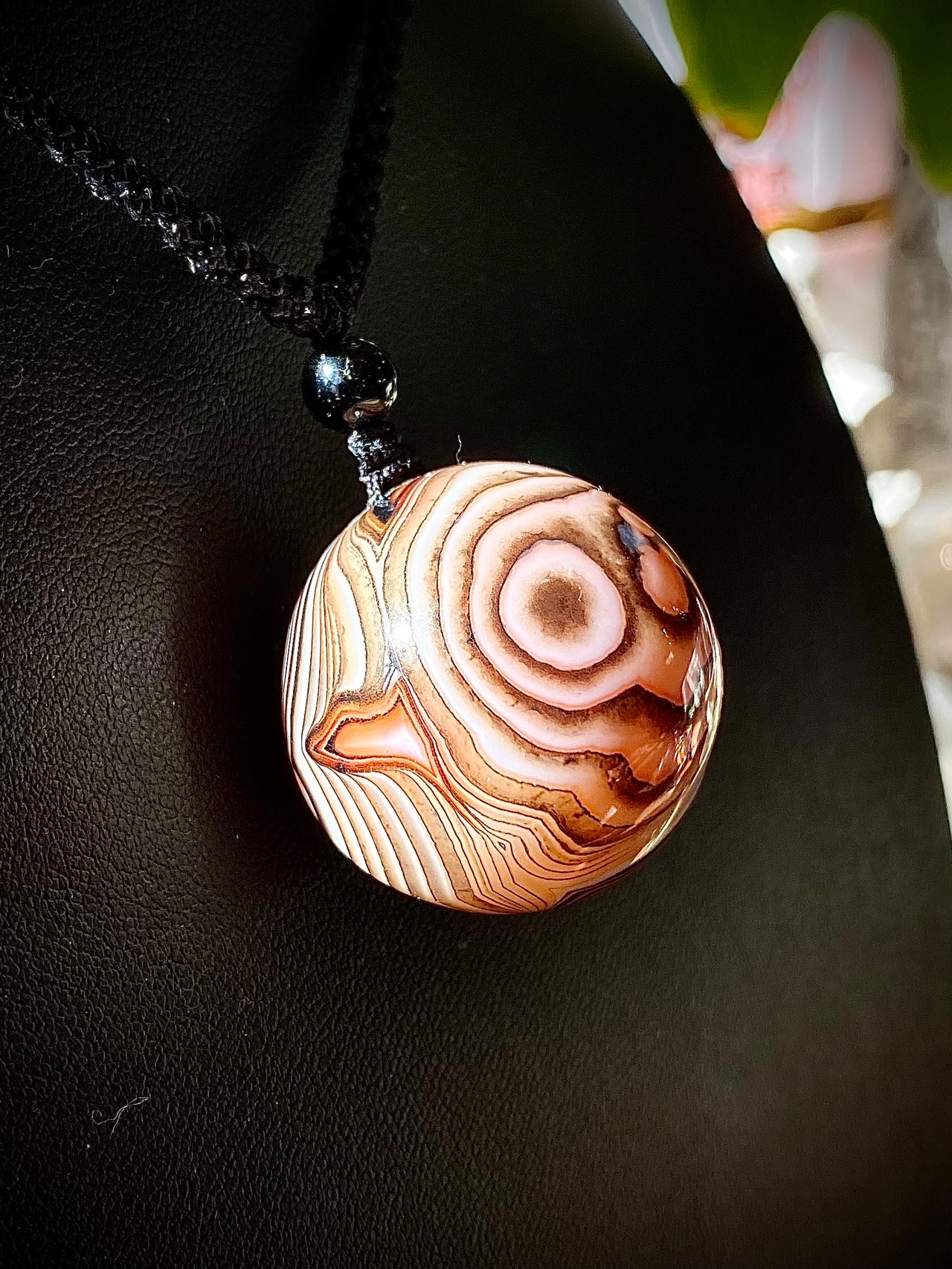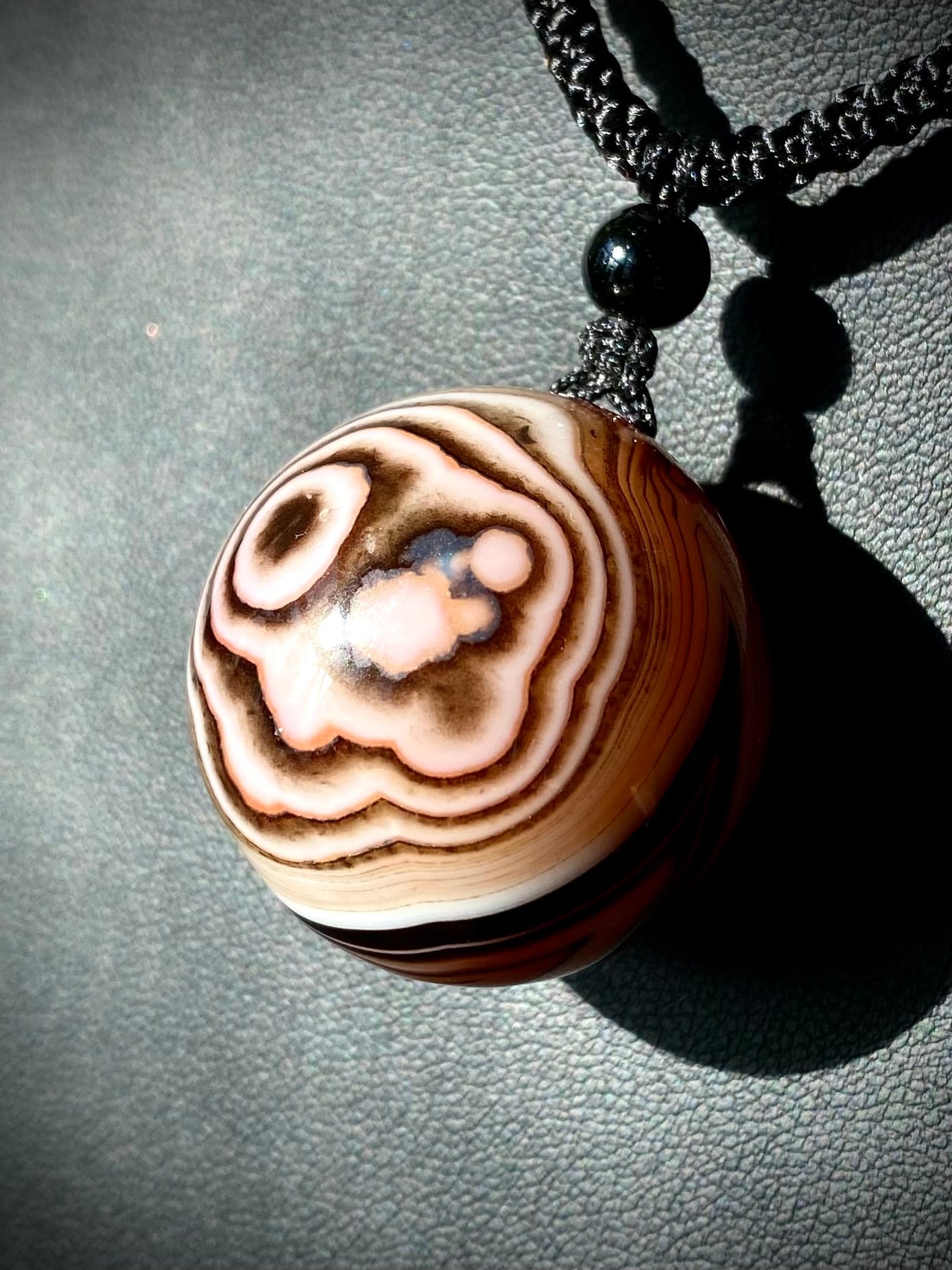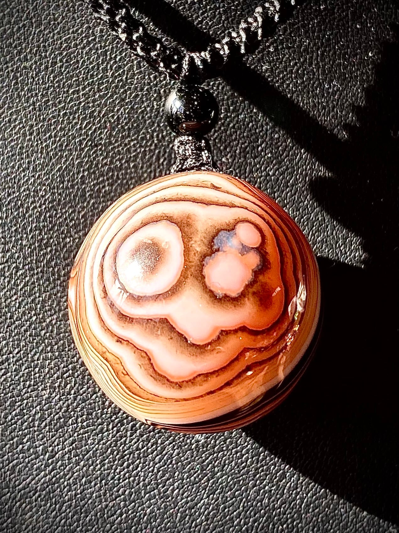 ペンダントにしました。ガラスペンダント感覚で天眼マーブルを