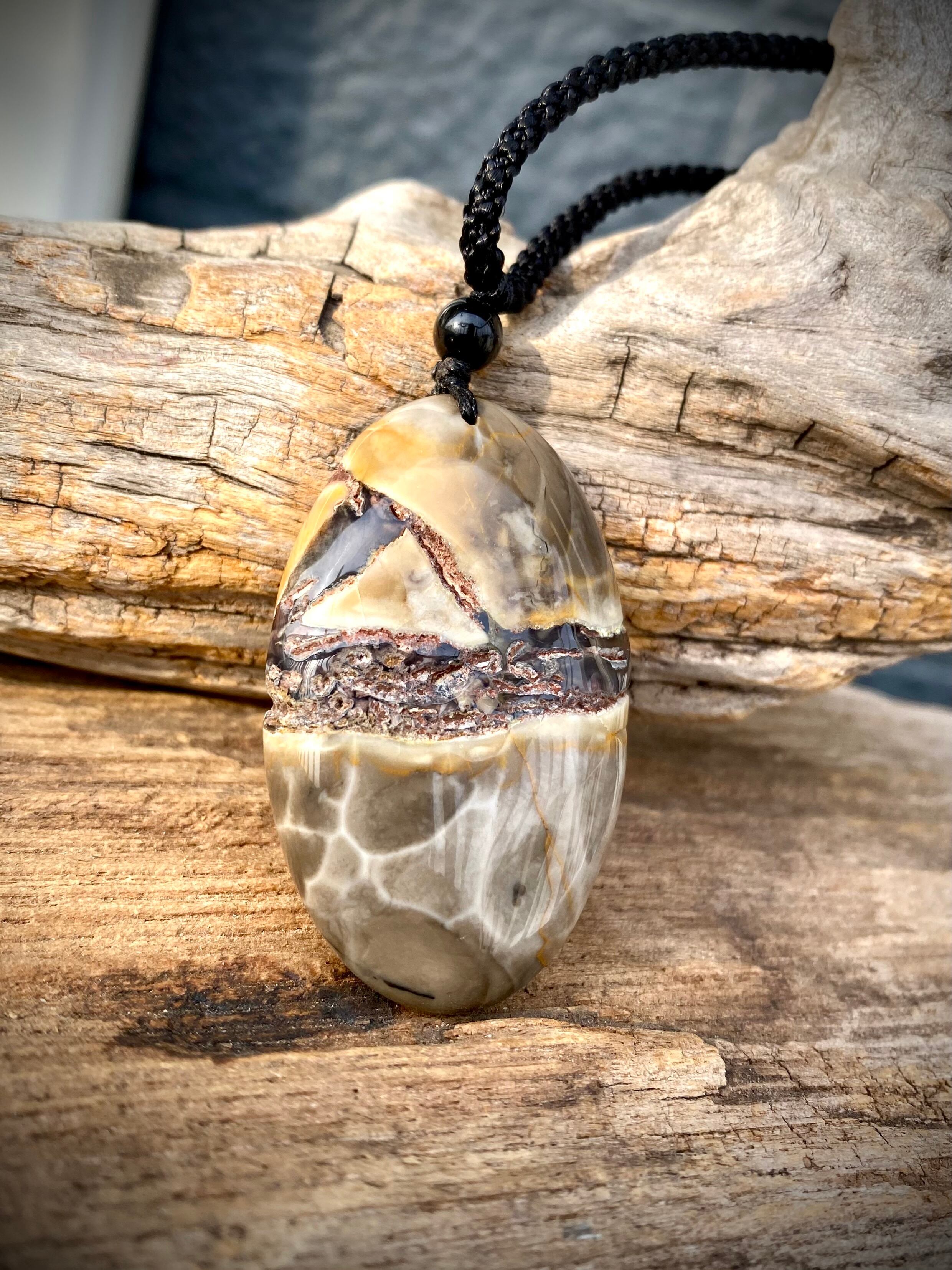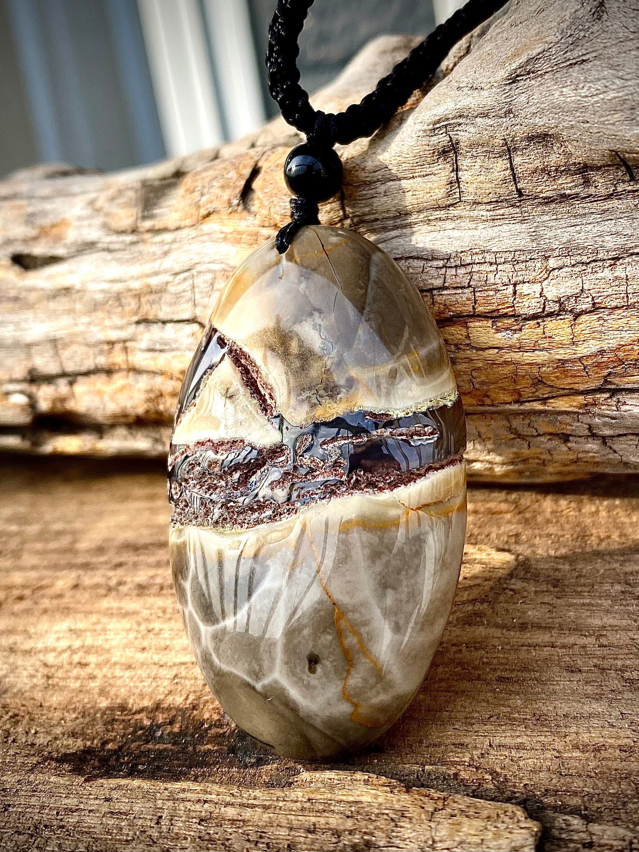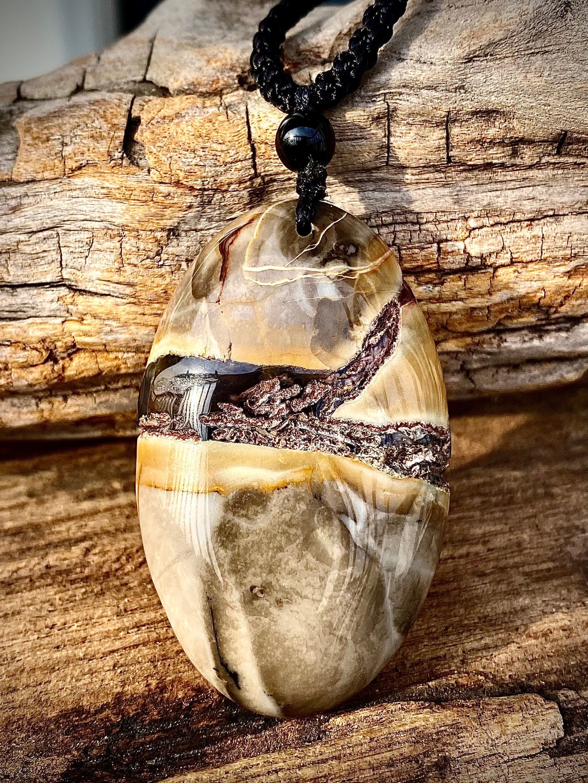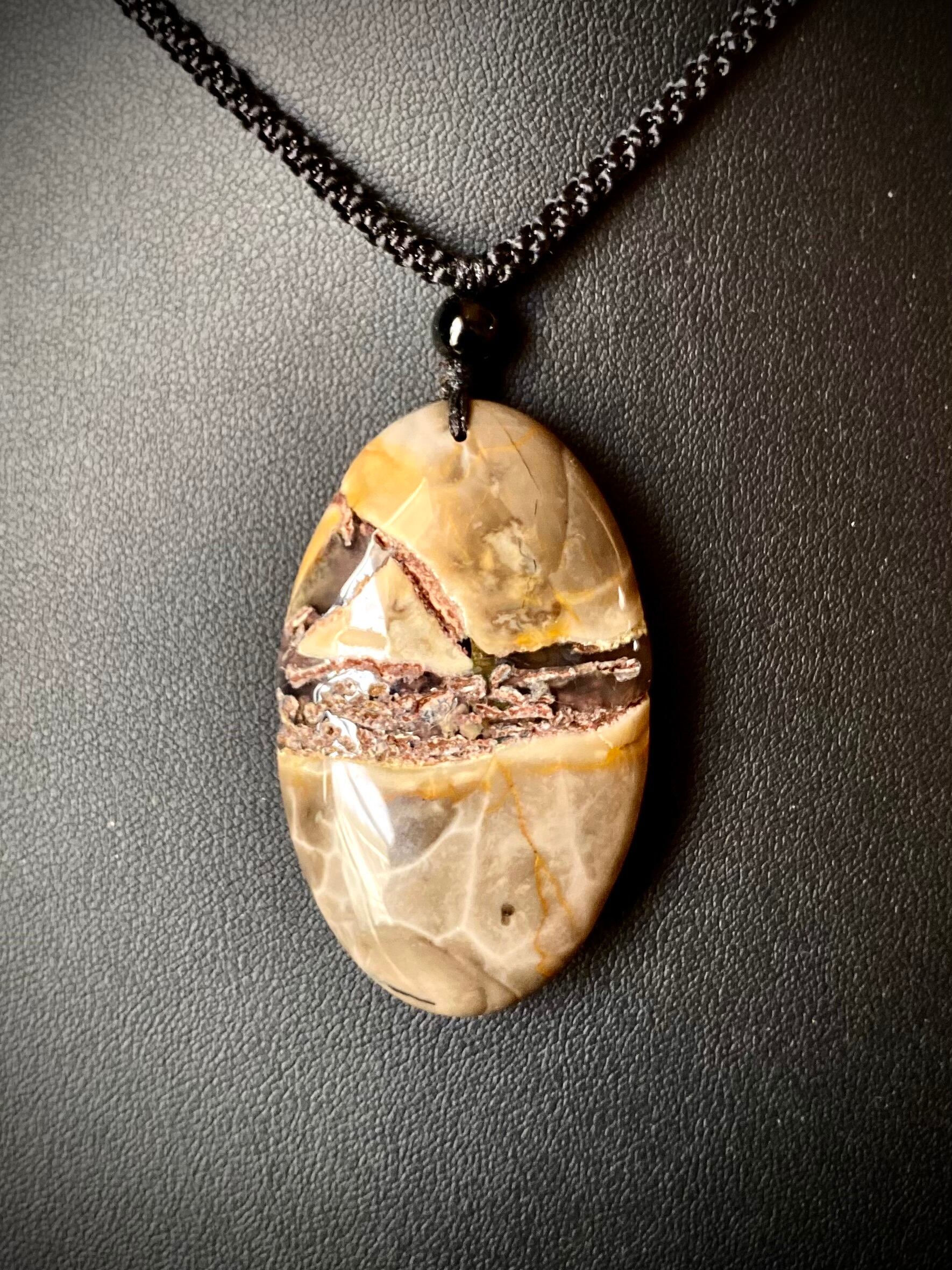 セレクトインポートしました天然石ボルケーノアゲートペンダントです。