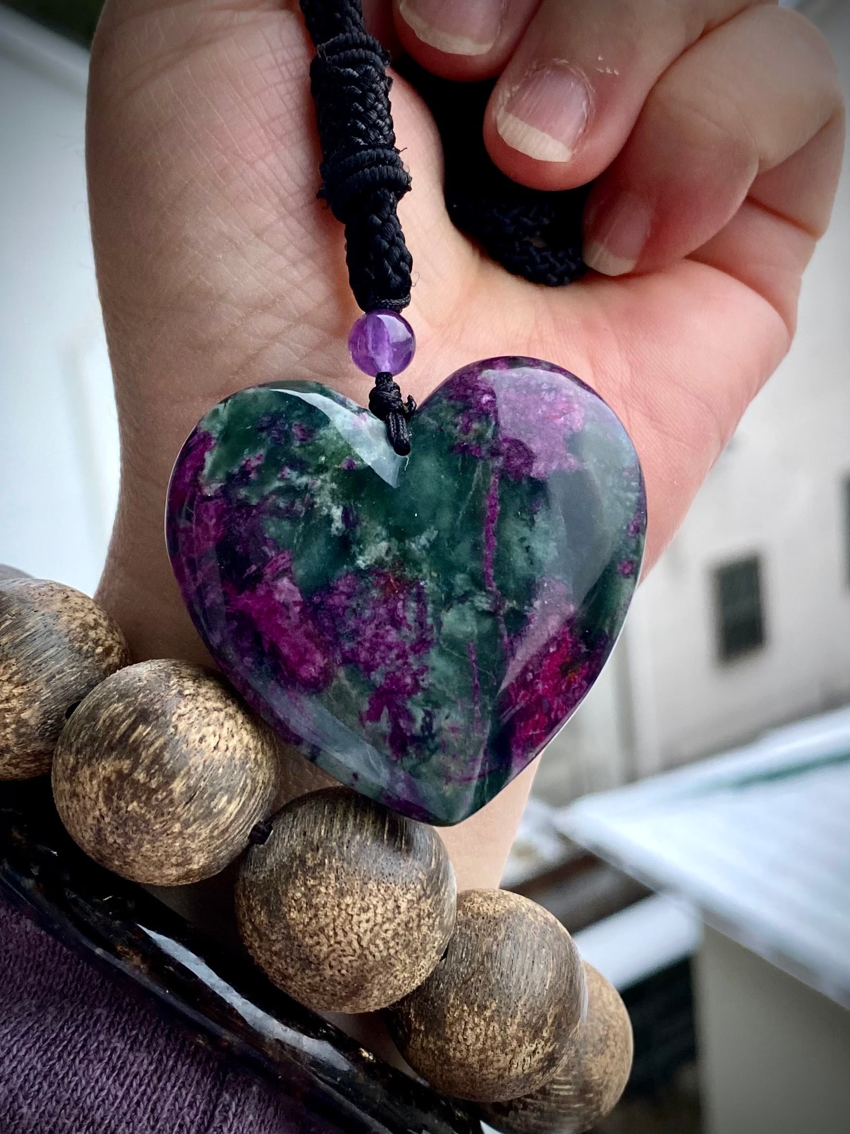 翡翠のハートペンダントです。曇天でもこれだけファインダー越しにはピンクが