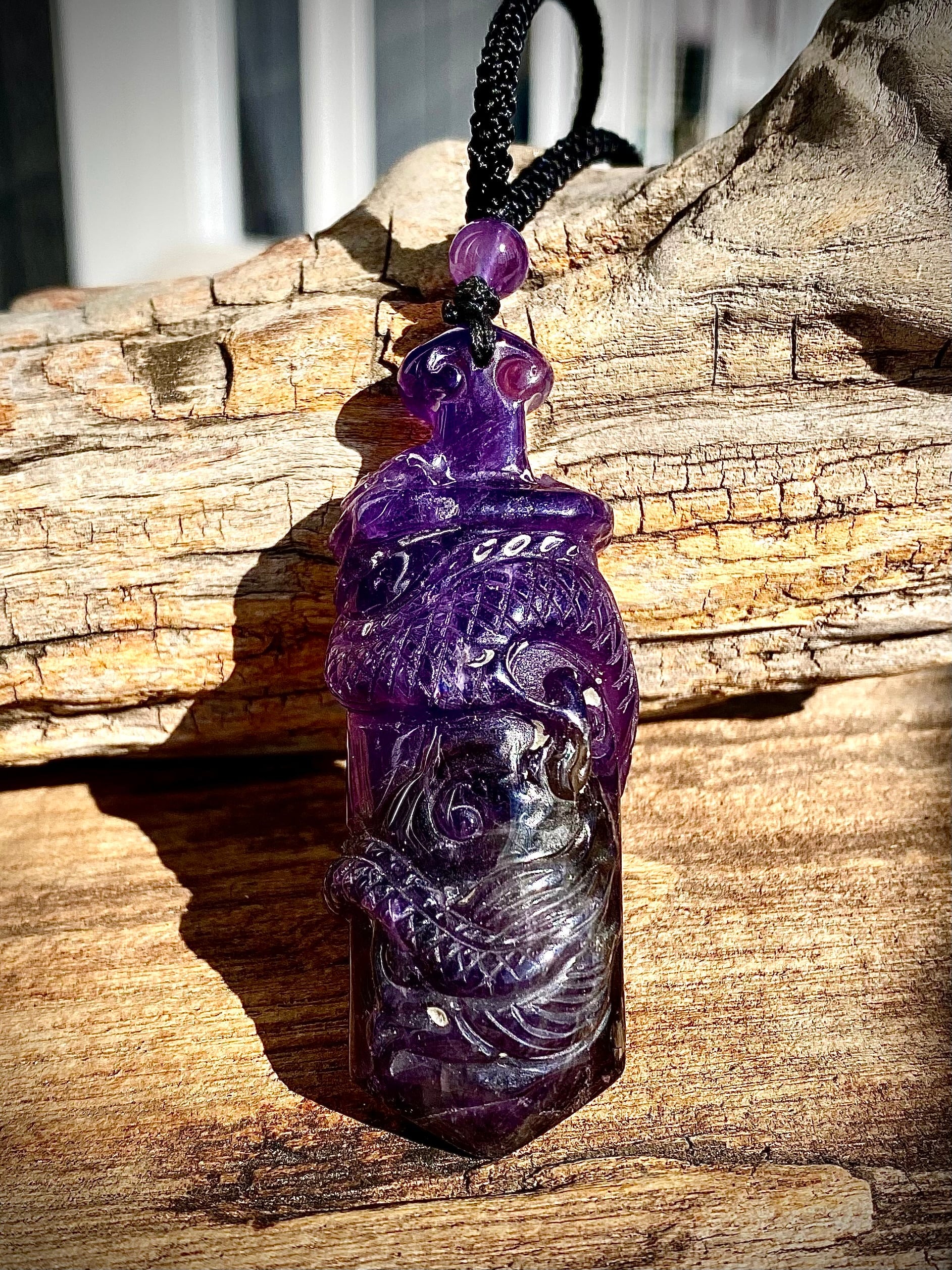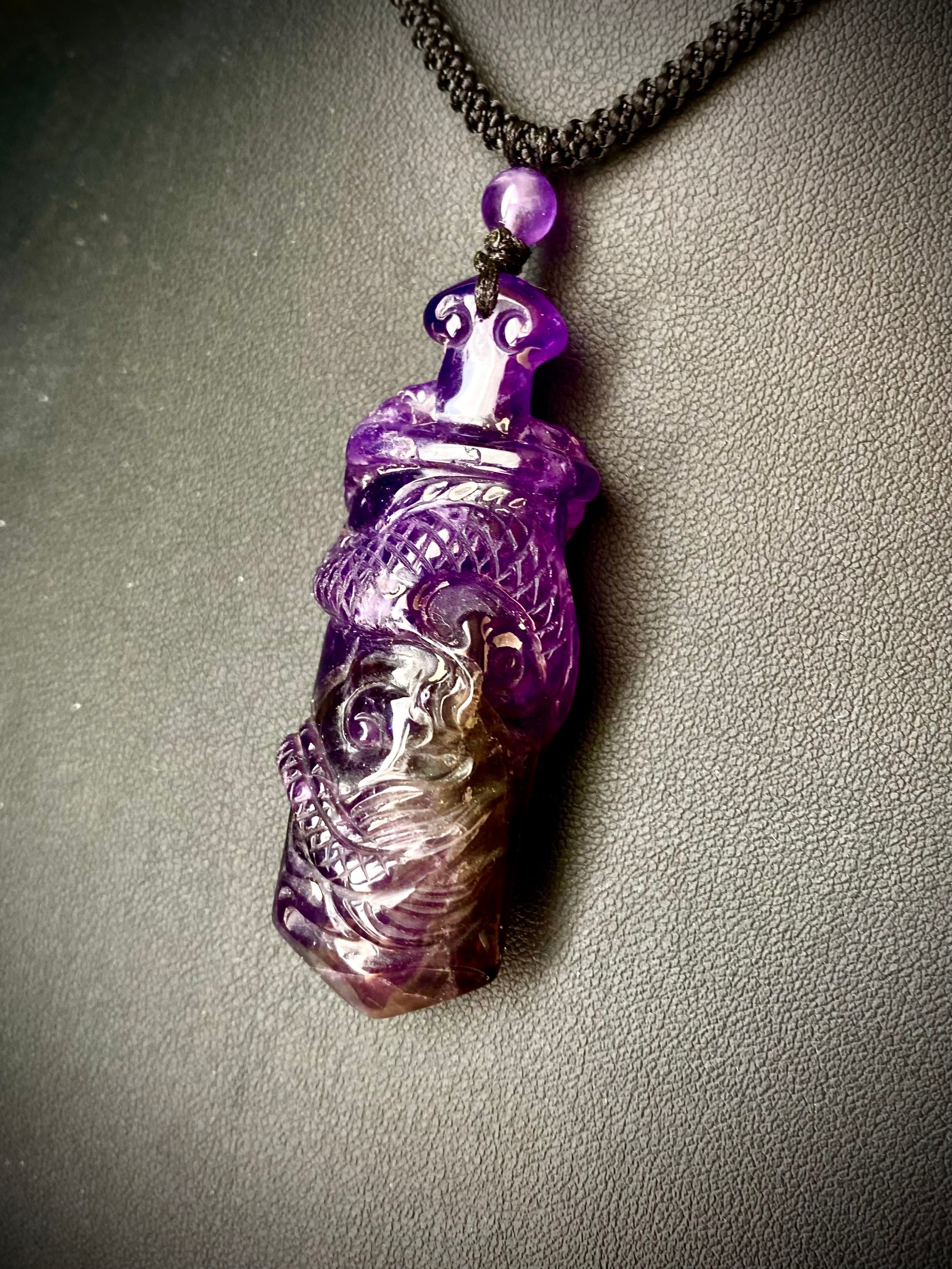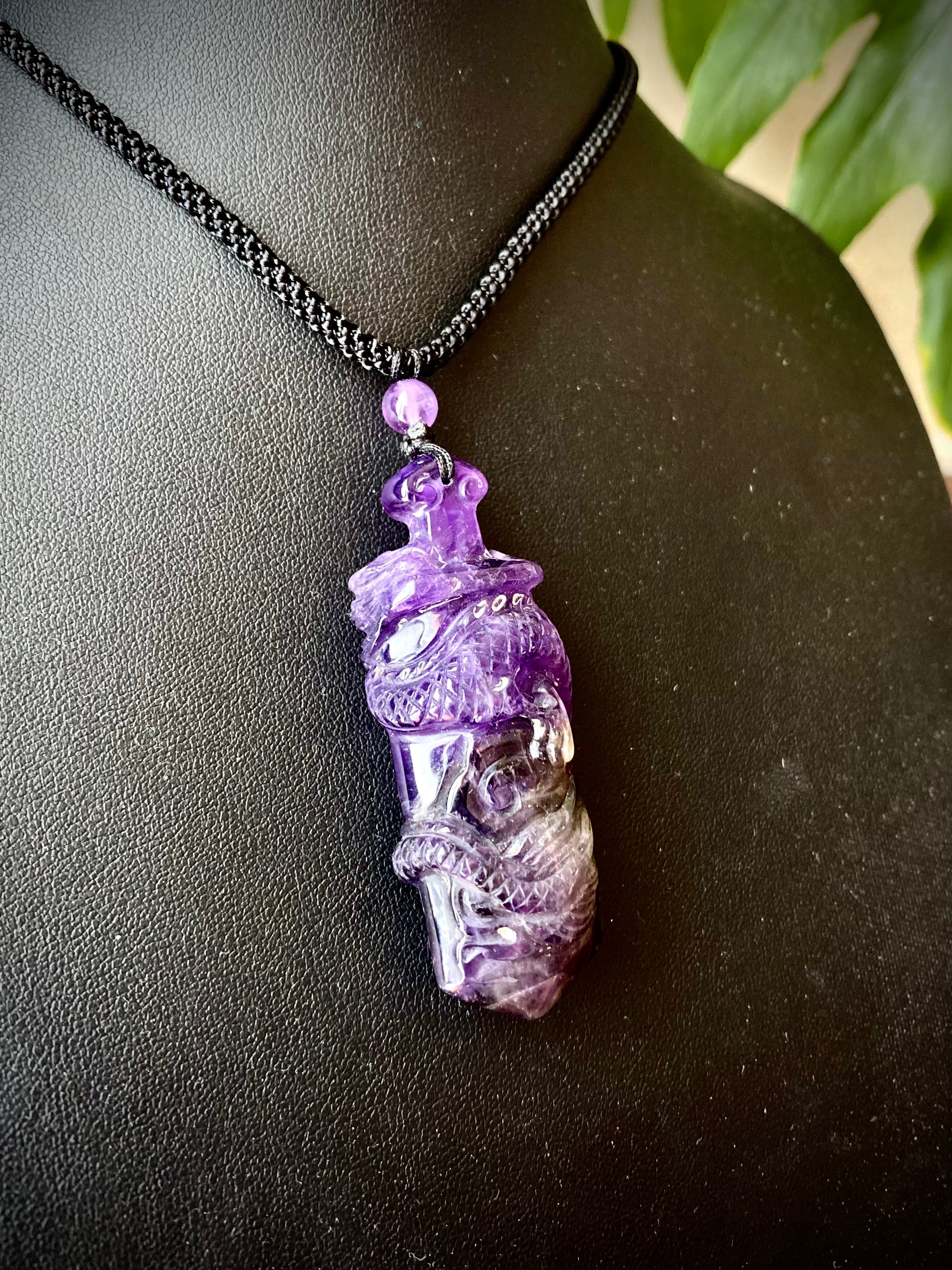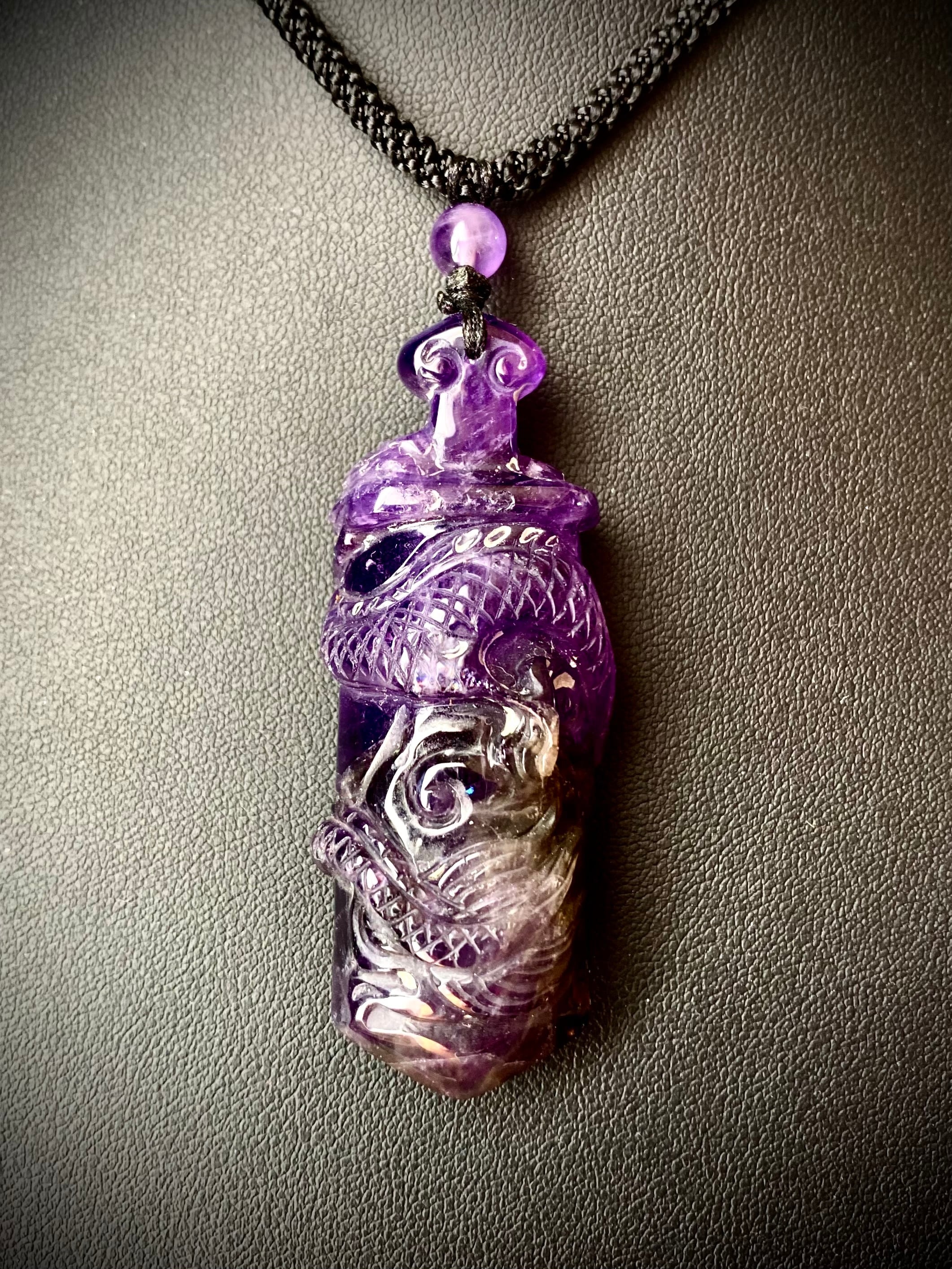 セレクトインポートしました、天然石アメジストドラゴンソードペンダントです。