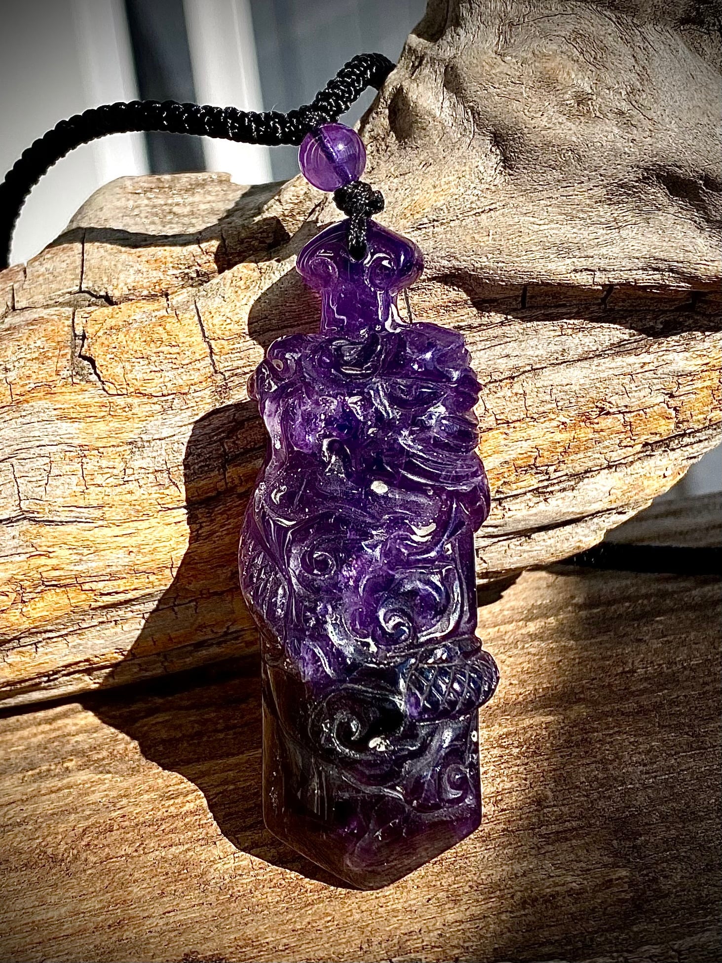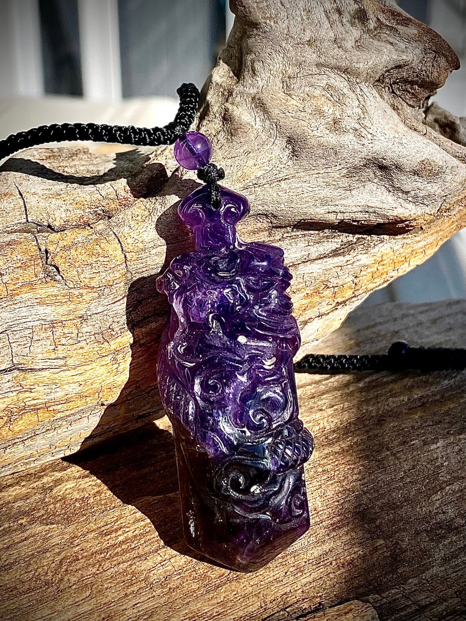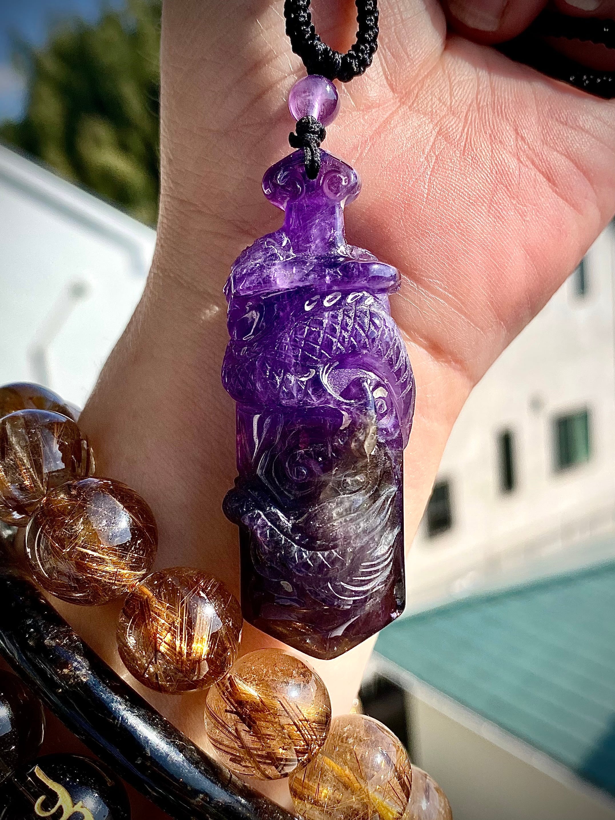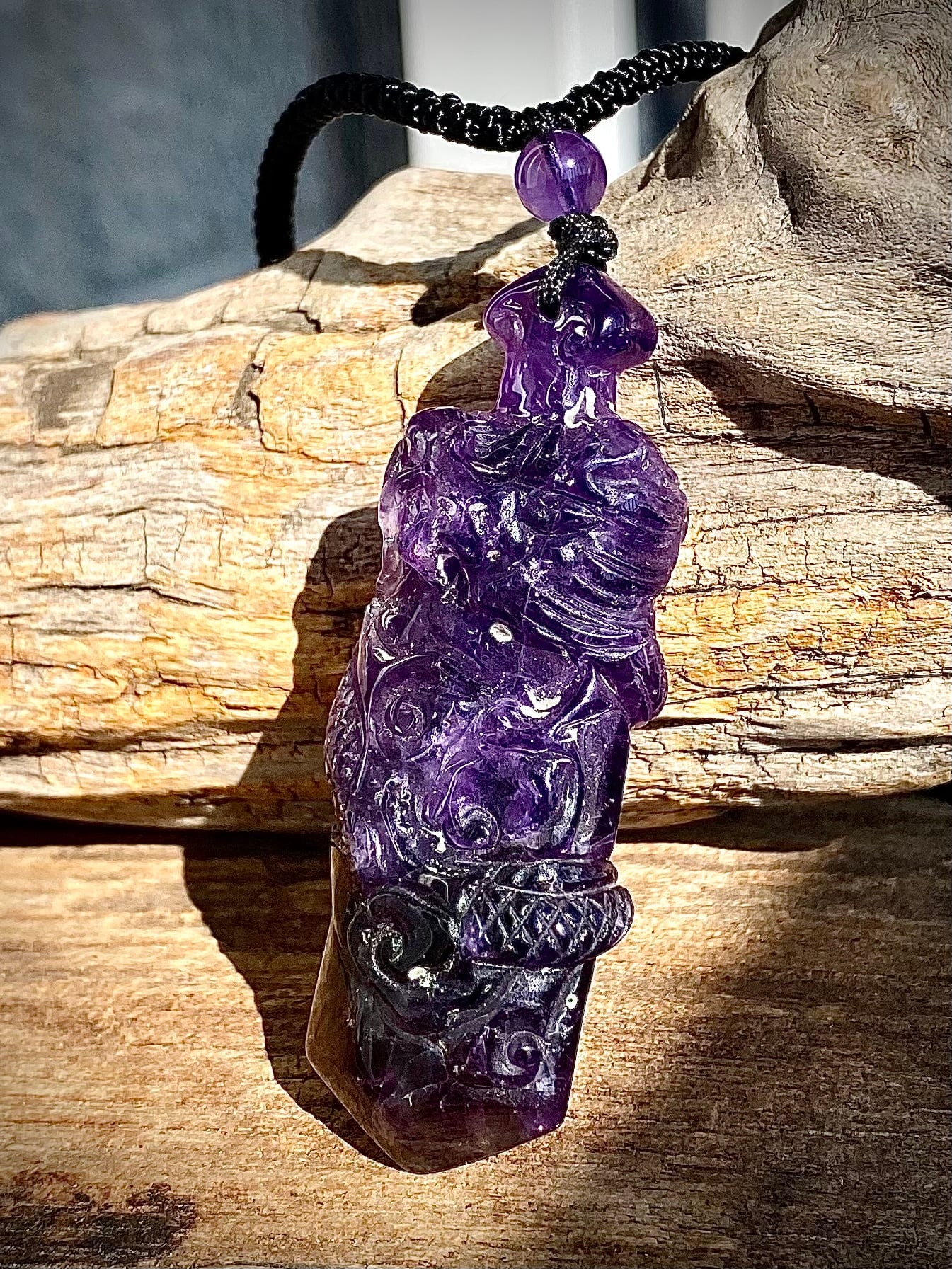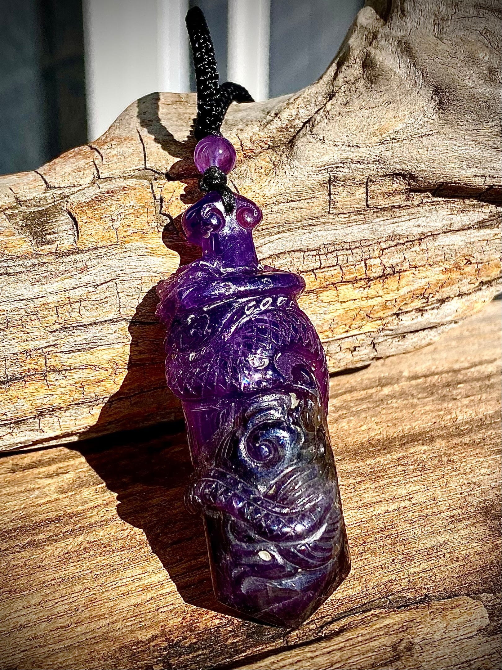 セレクトインポートしました、天然石アメジストドラゴンソードペンダントです。