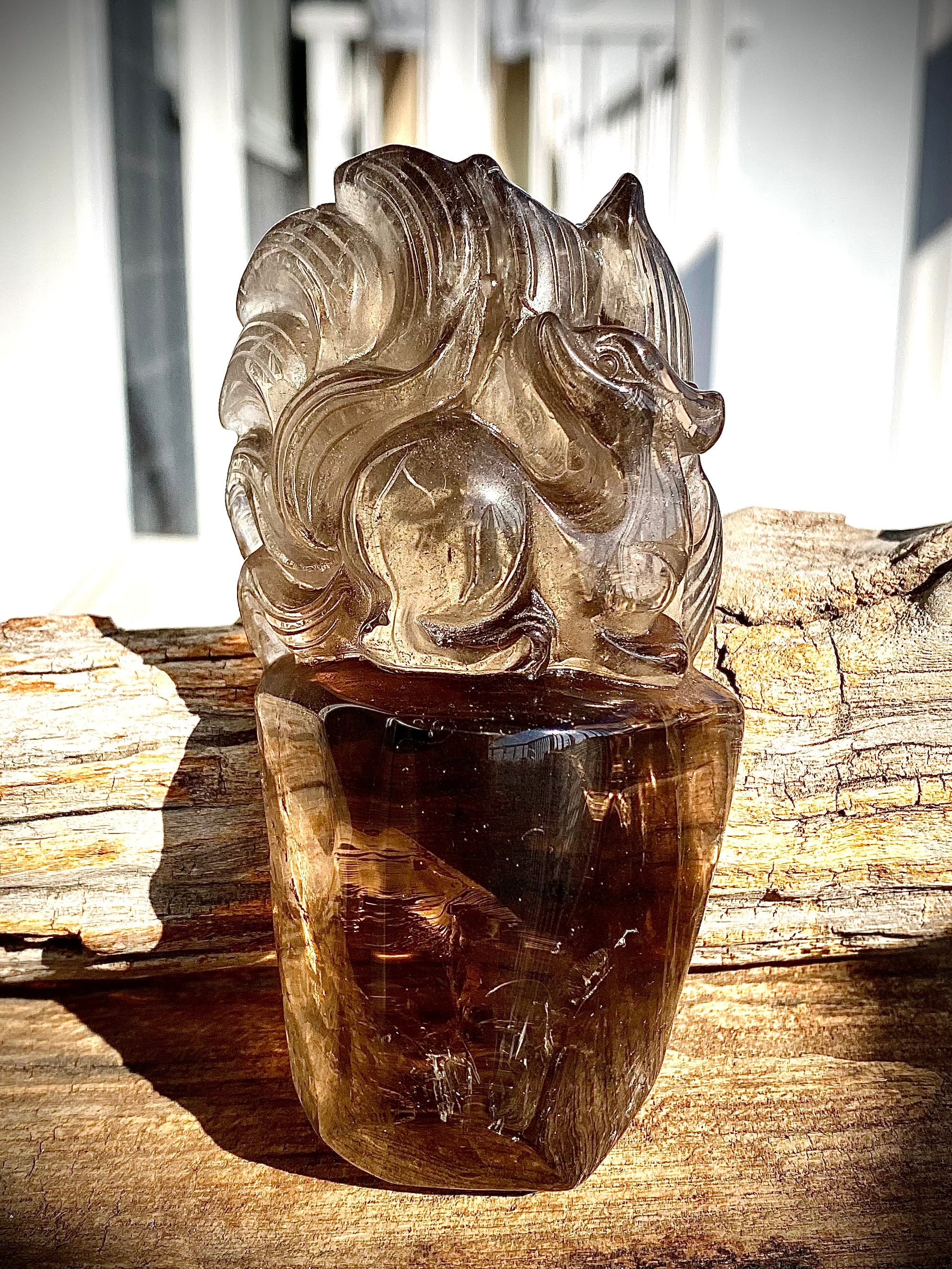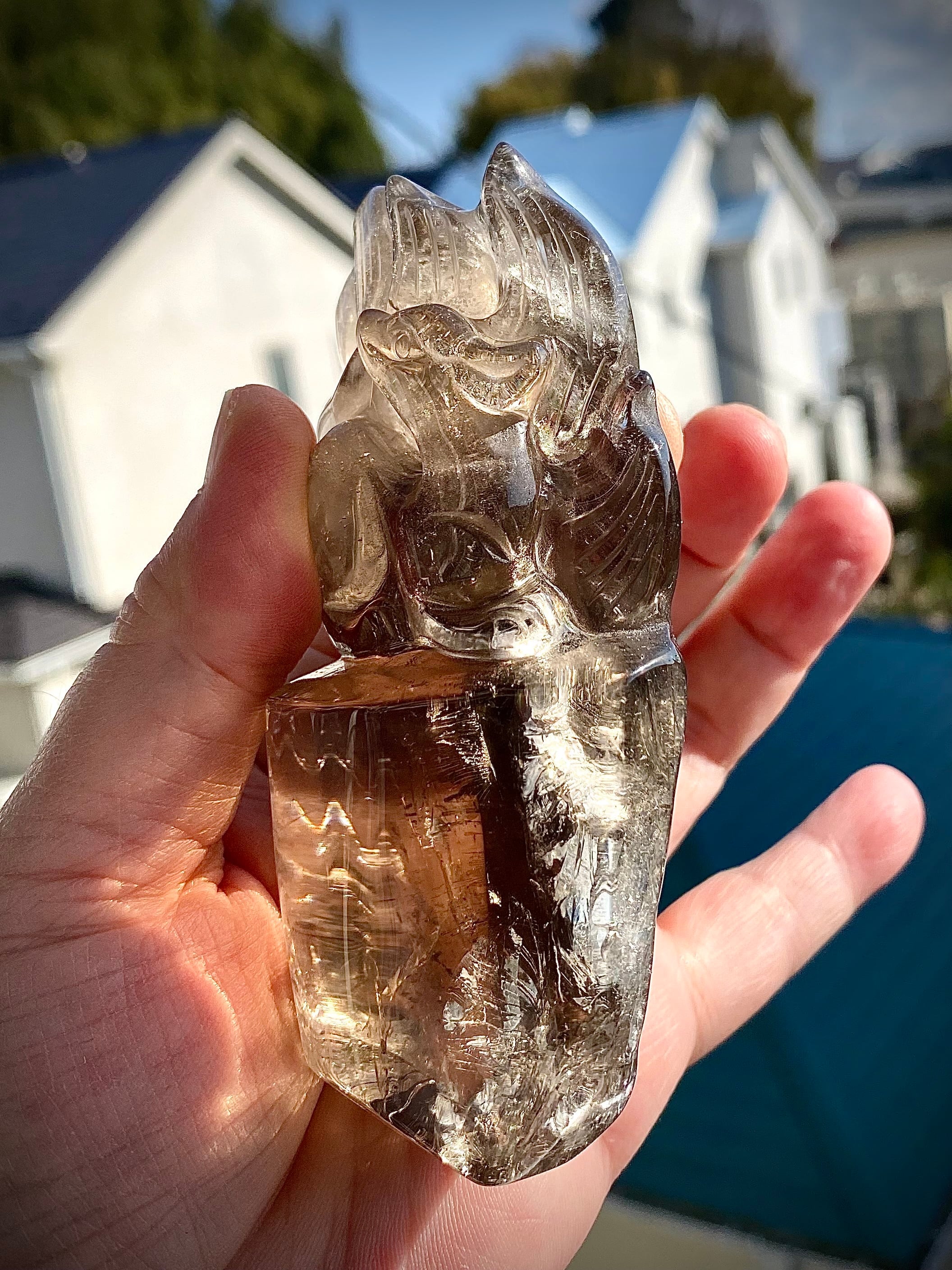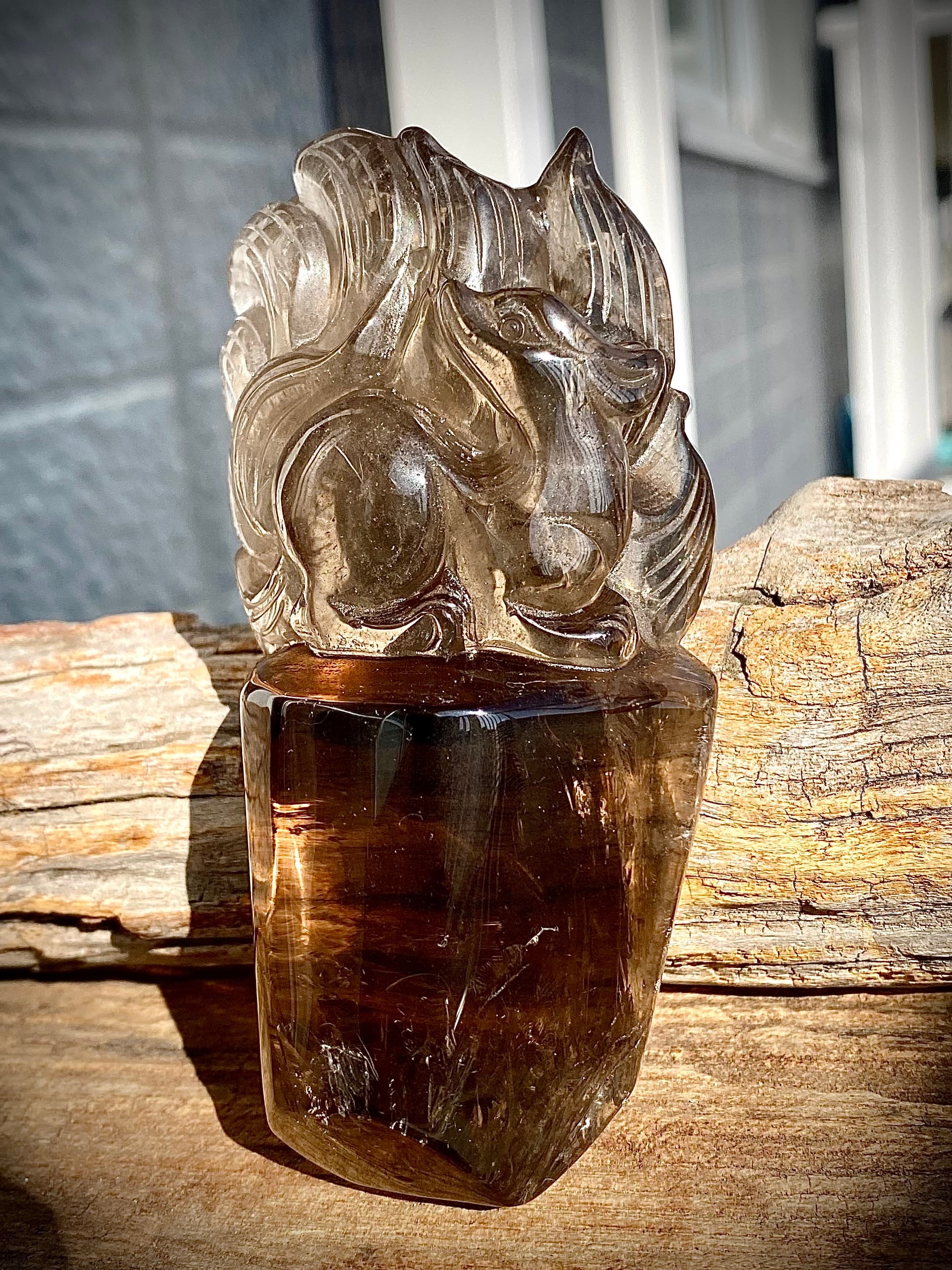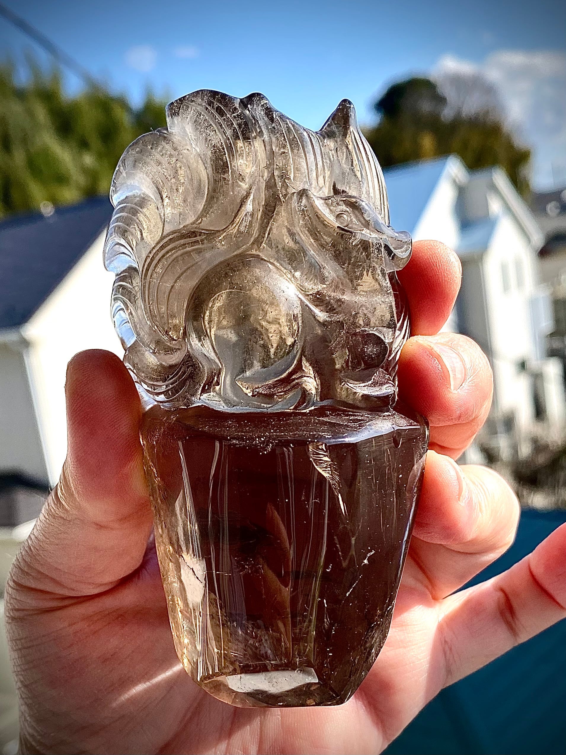セレクトインポートしました天然石スモーキークォーツ九尾カービングです。