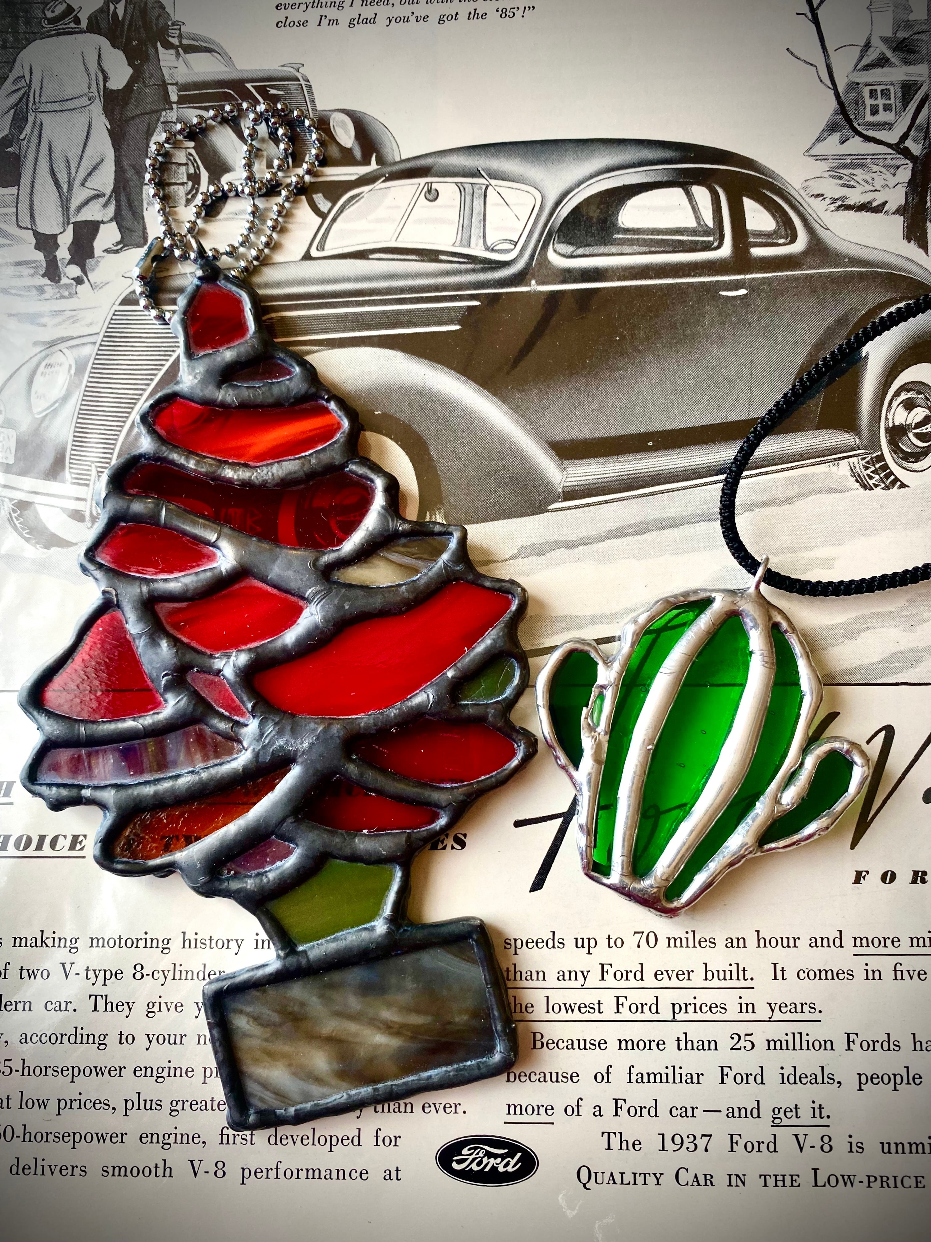 【Kustom orders】ステンドグラスリトルツリー Lサイズ&サボテンペンダント