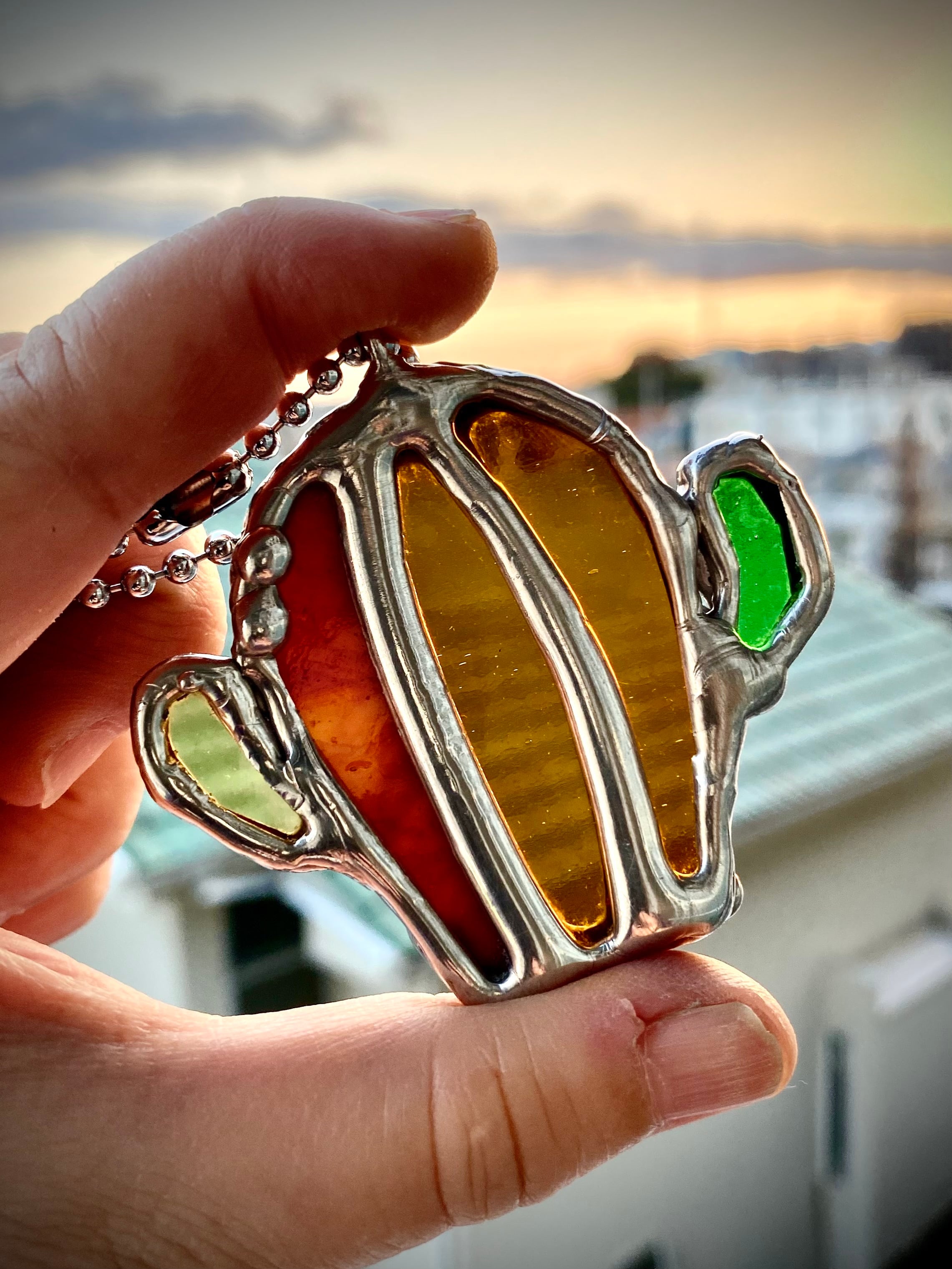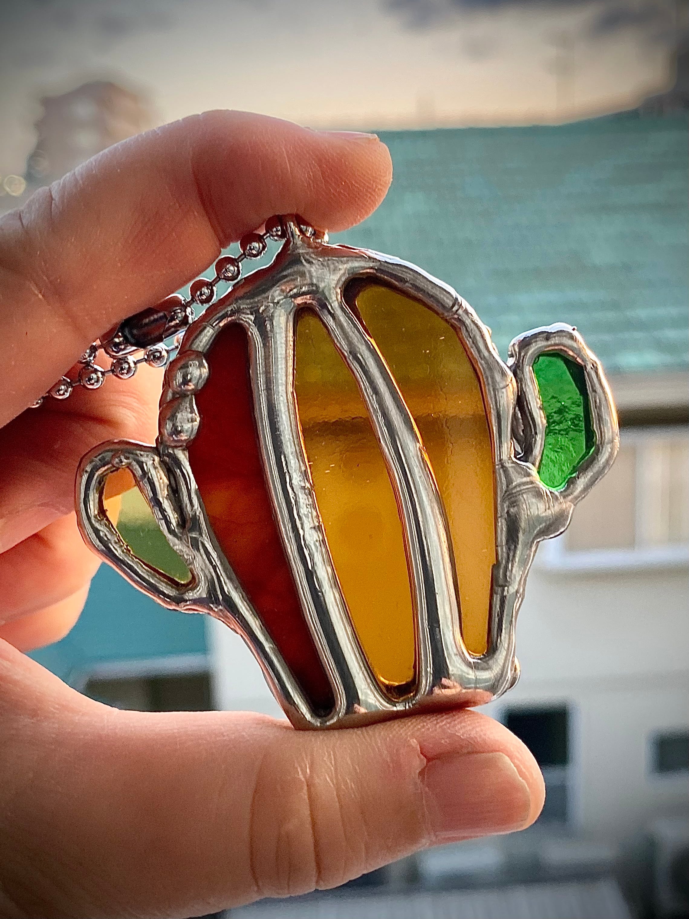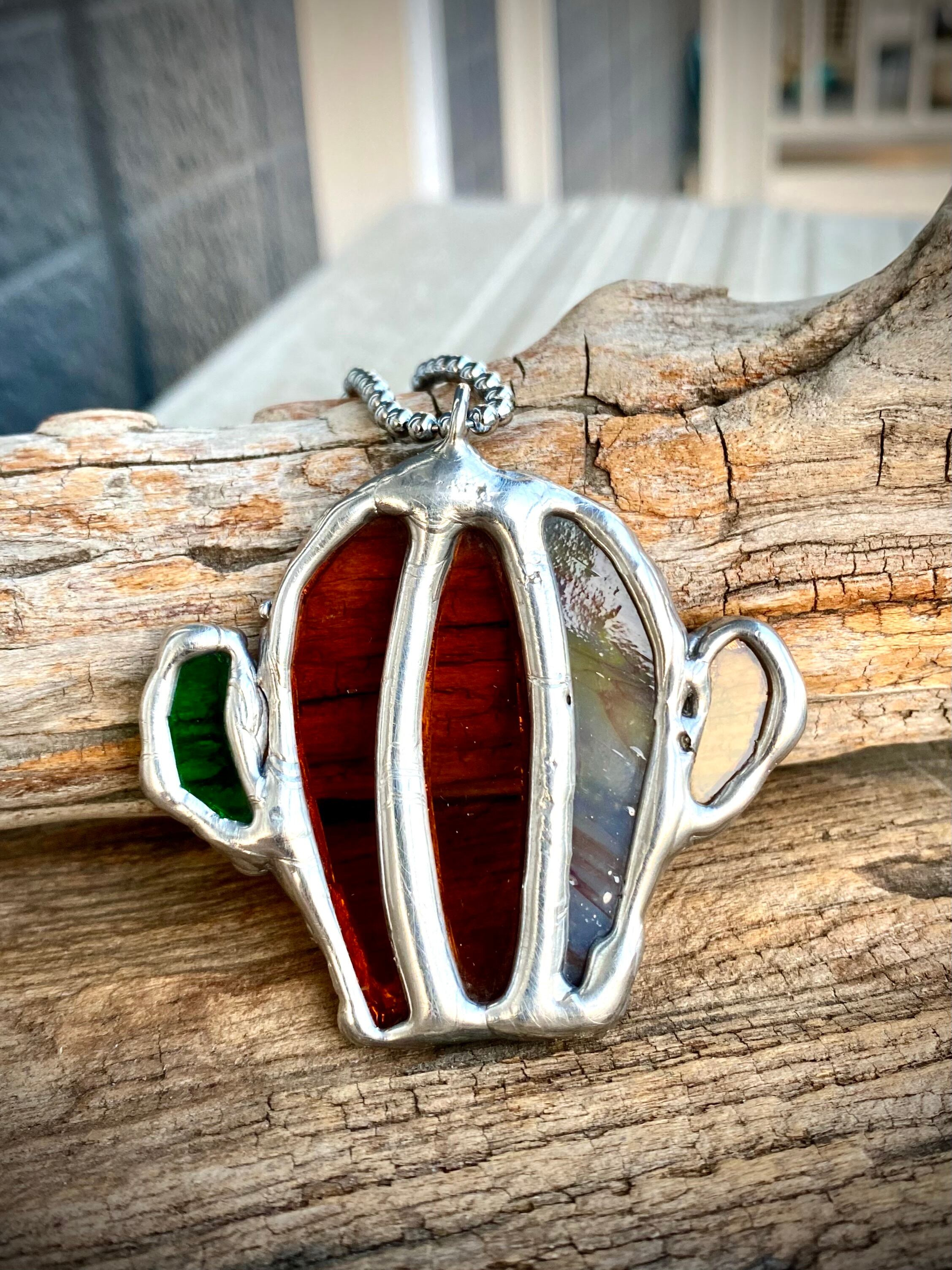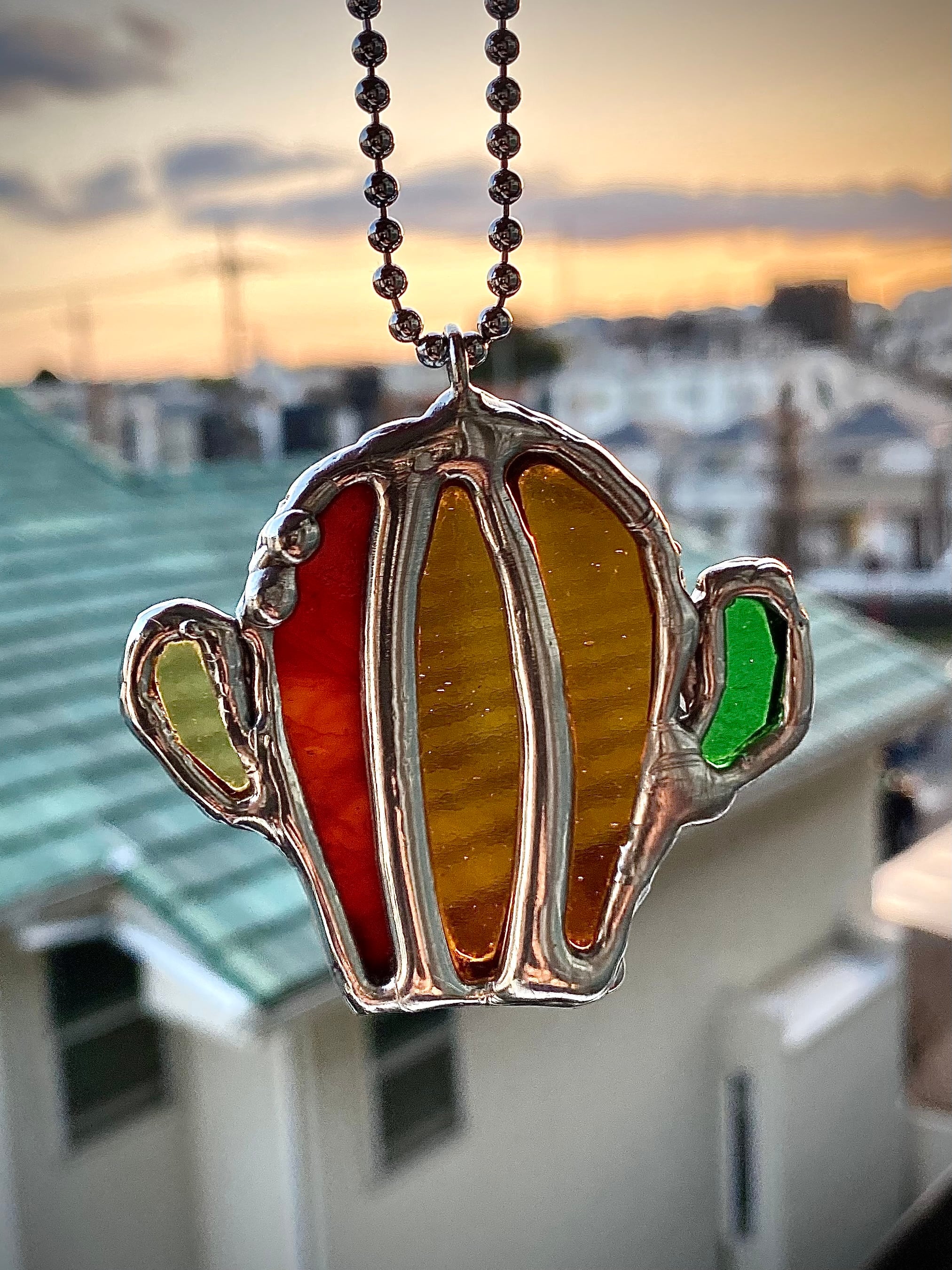 ハンドメイドのステンドグラスミニサボテンサンキャッチャーです。
