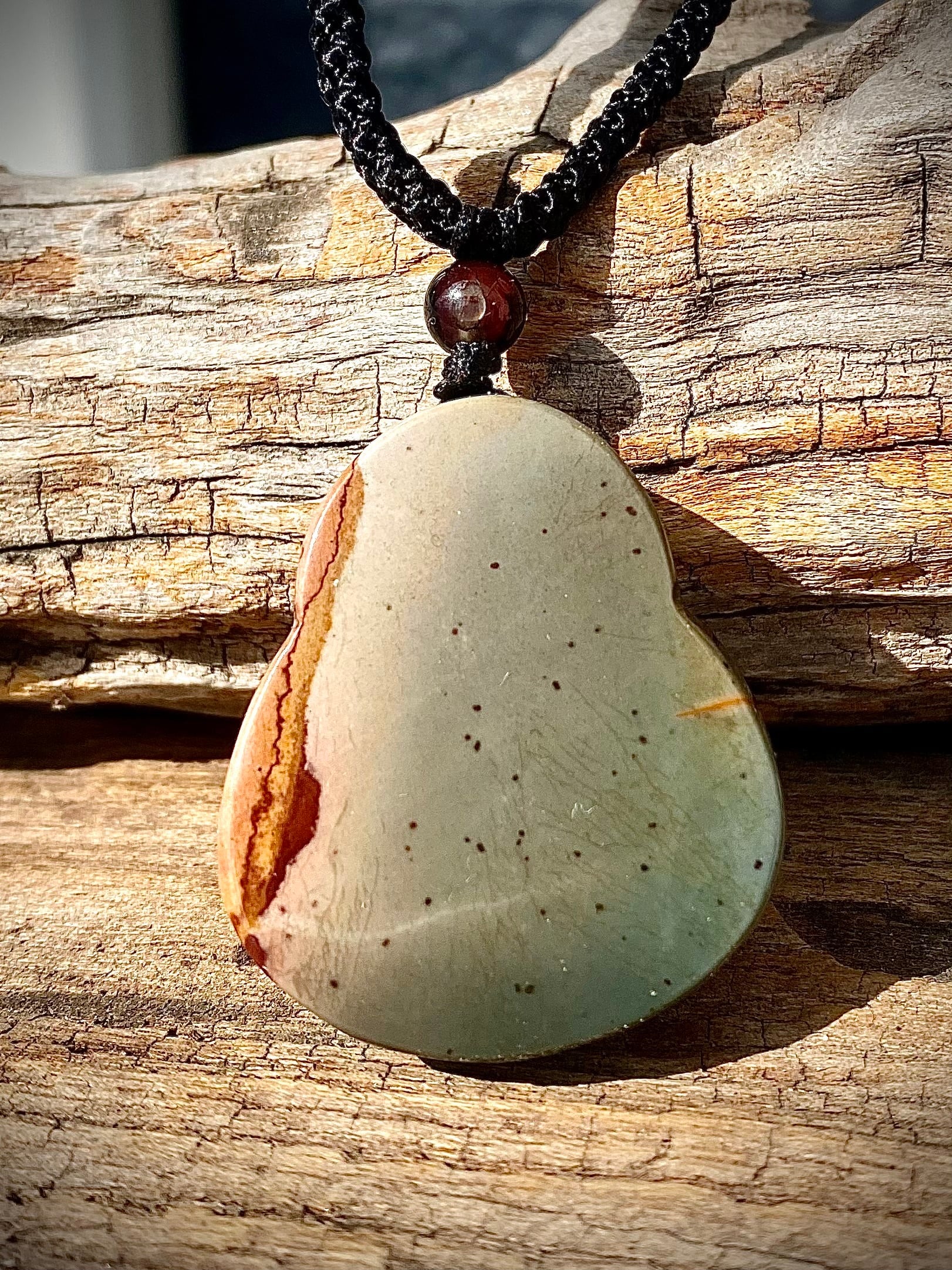 セレクトインポートしました天然石オーシャンジャスパーのハッピーブッダペンダント。