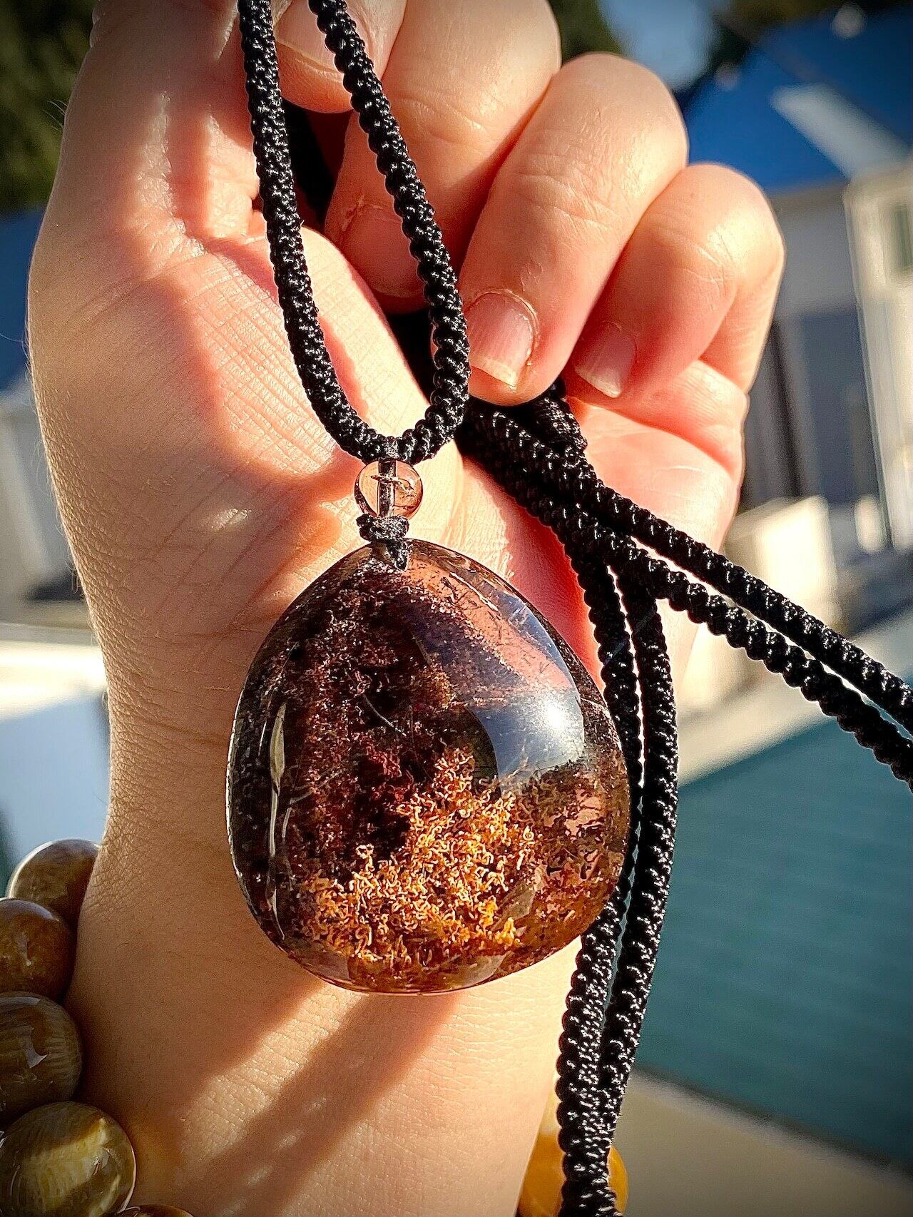【Reserved】天然石 スモーキーガーデンクォーツヌードルペンダント