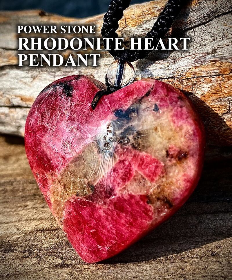 天然石ロードナイト(薔薇輝石)ハートペンダント