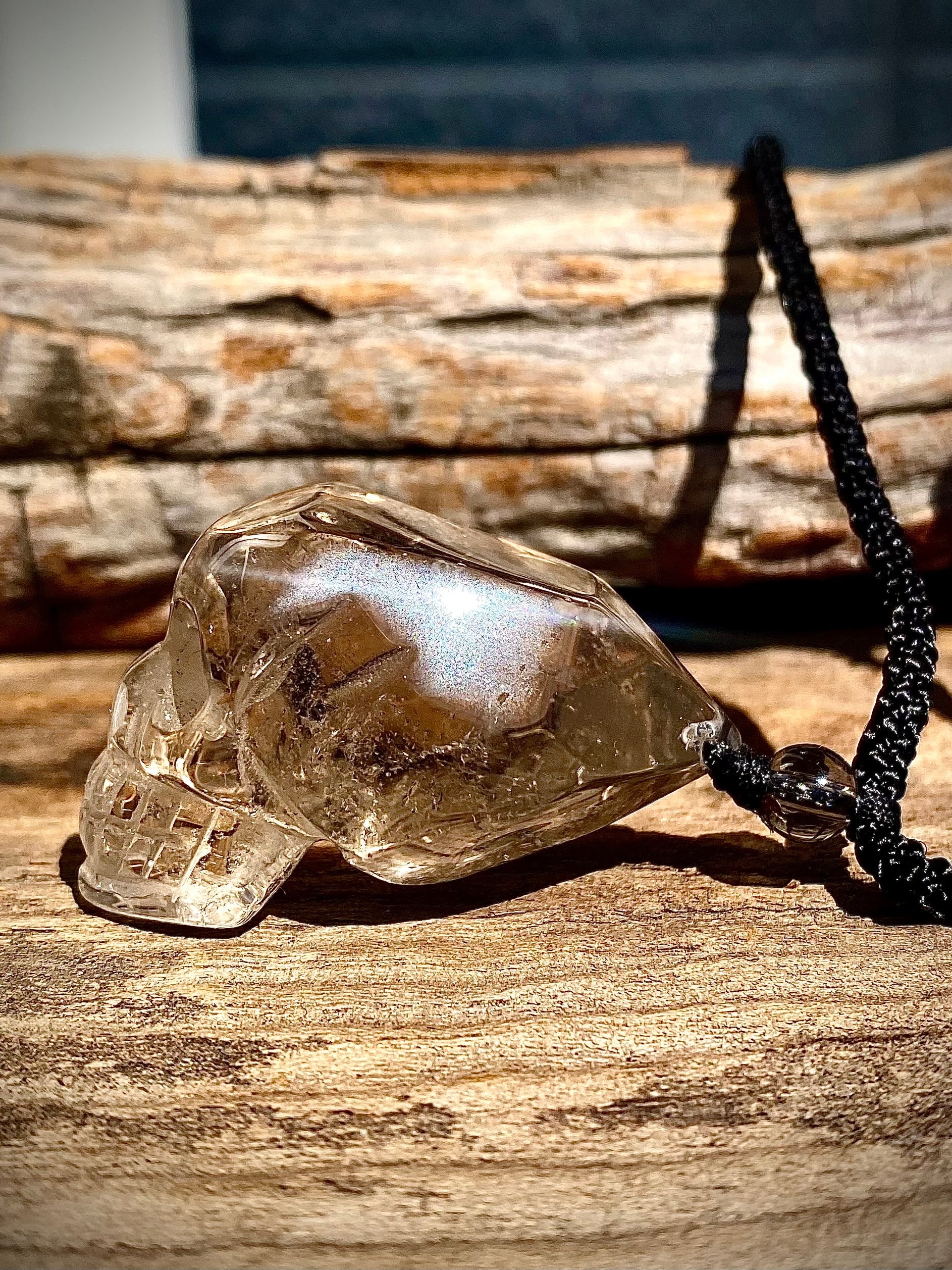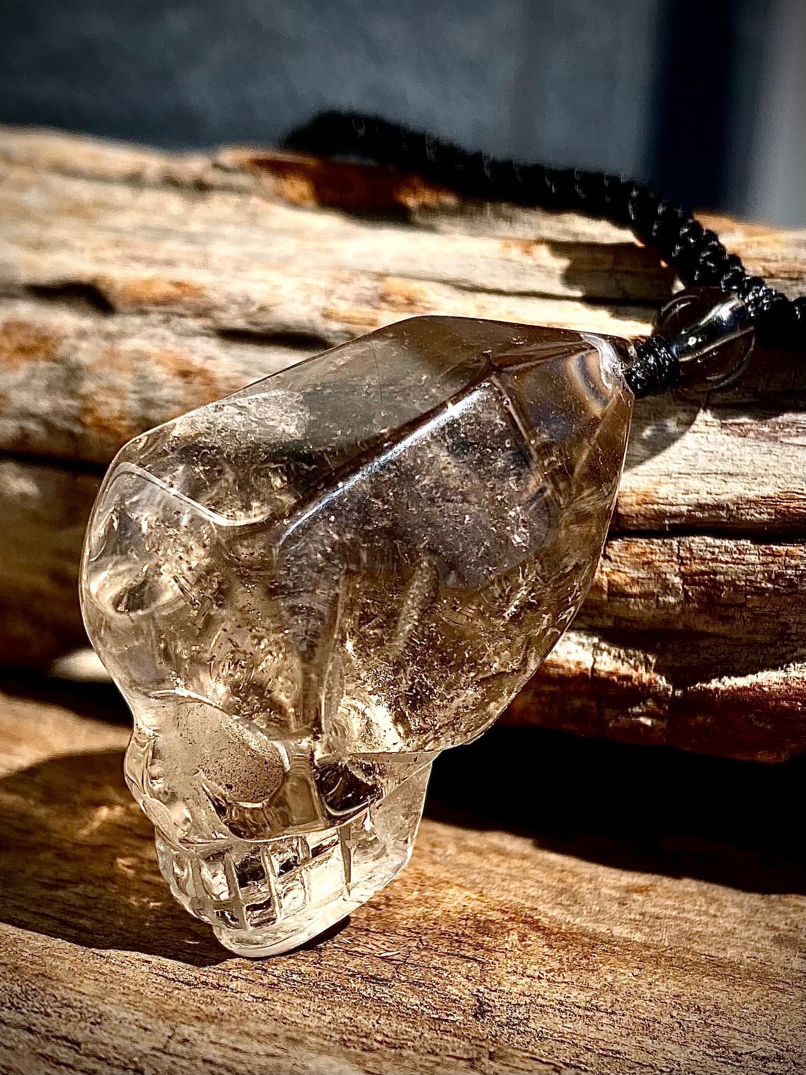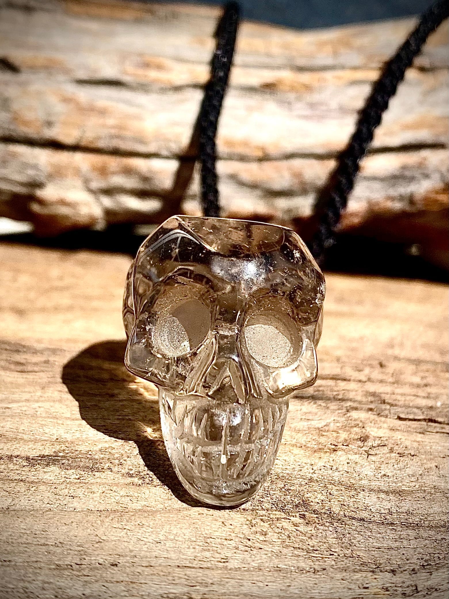 天然石水晶ダイヤモンドカットスカルヘッドペンダント