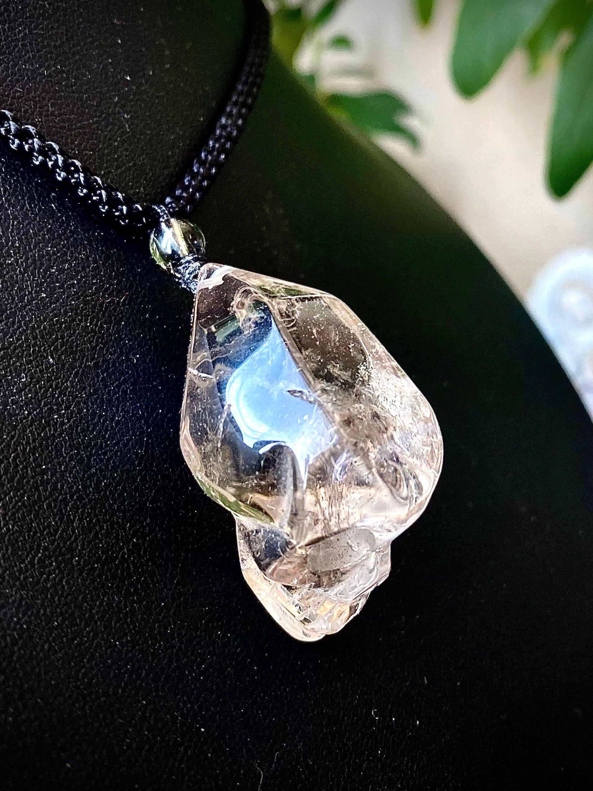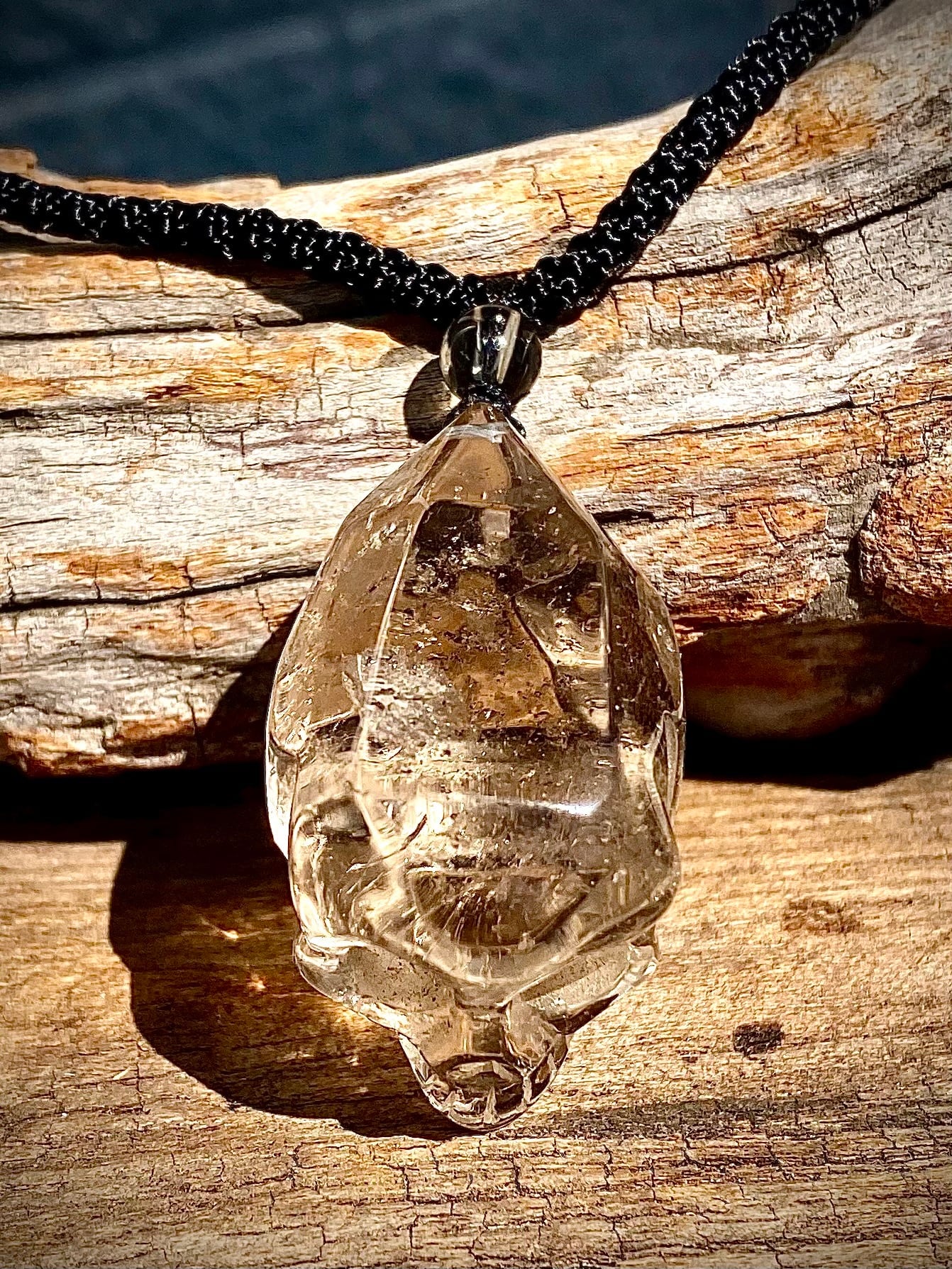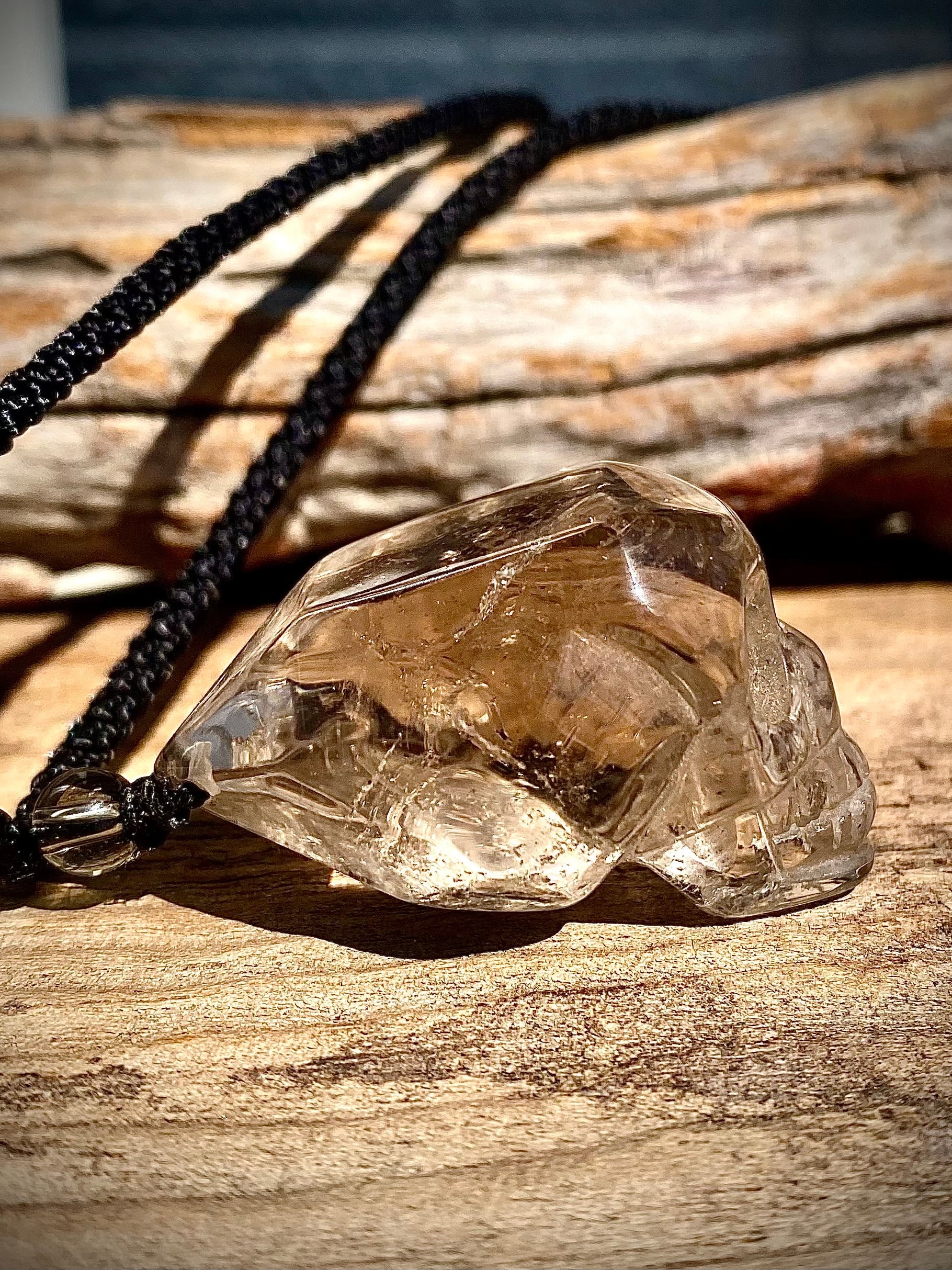 天然石水晶ダイヤモンドカットスカルヘッドペンダント