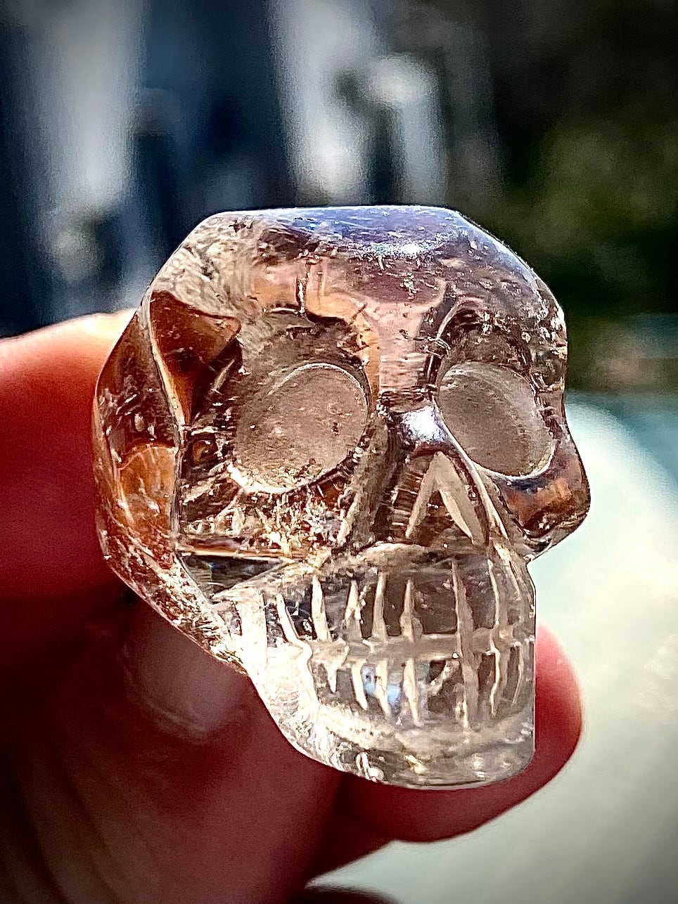 セレクトインポートしました天然石水晶ダイヤモンドカットスカルヘッドペンダントです。