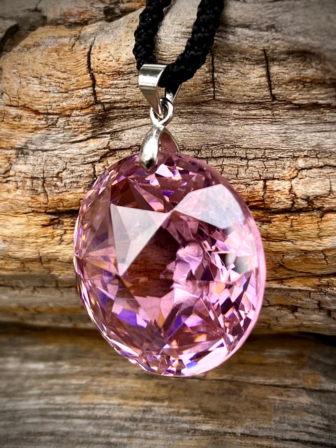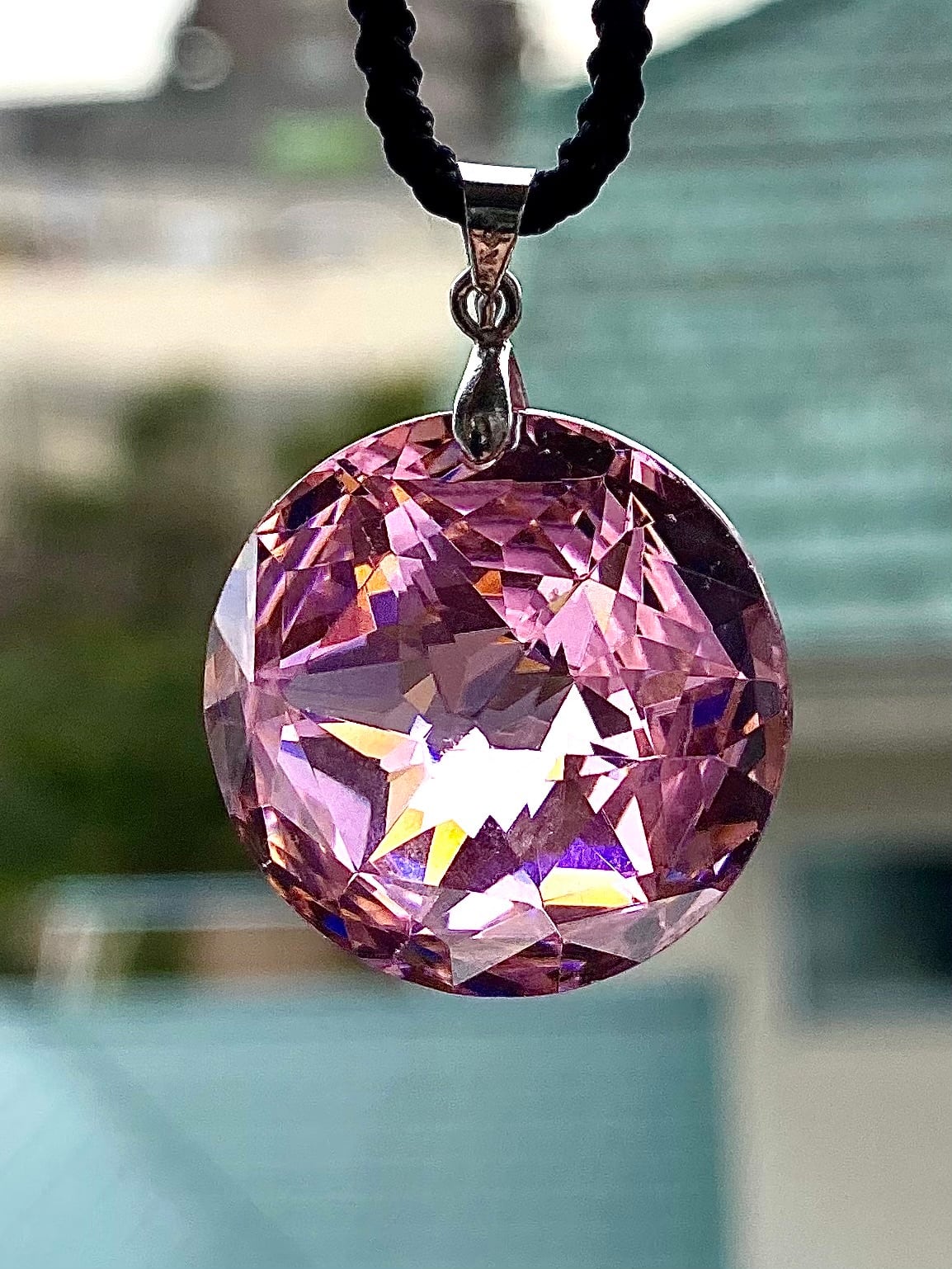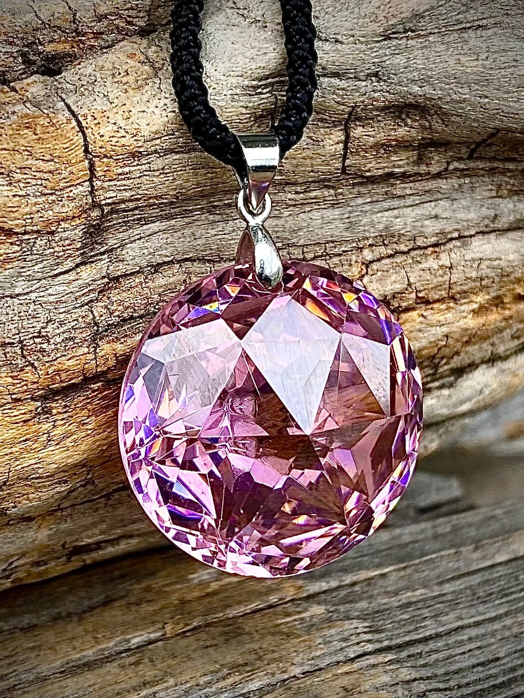 天然石ピンクジルコンラウンドペンダント