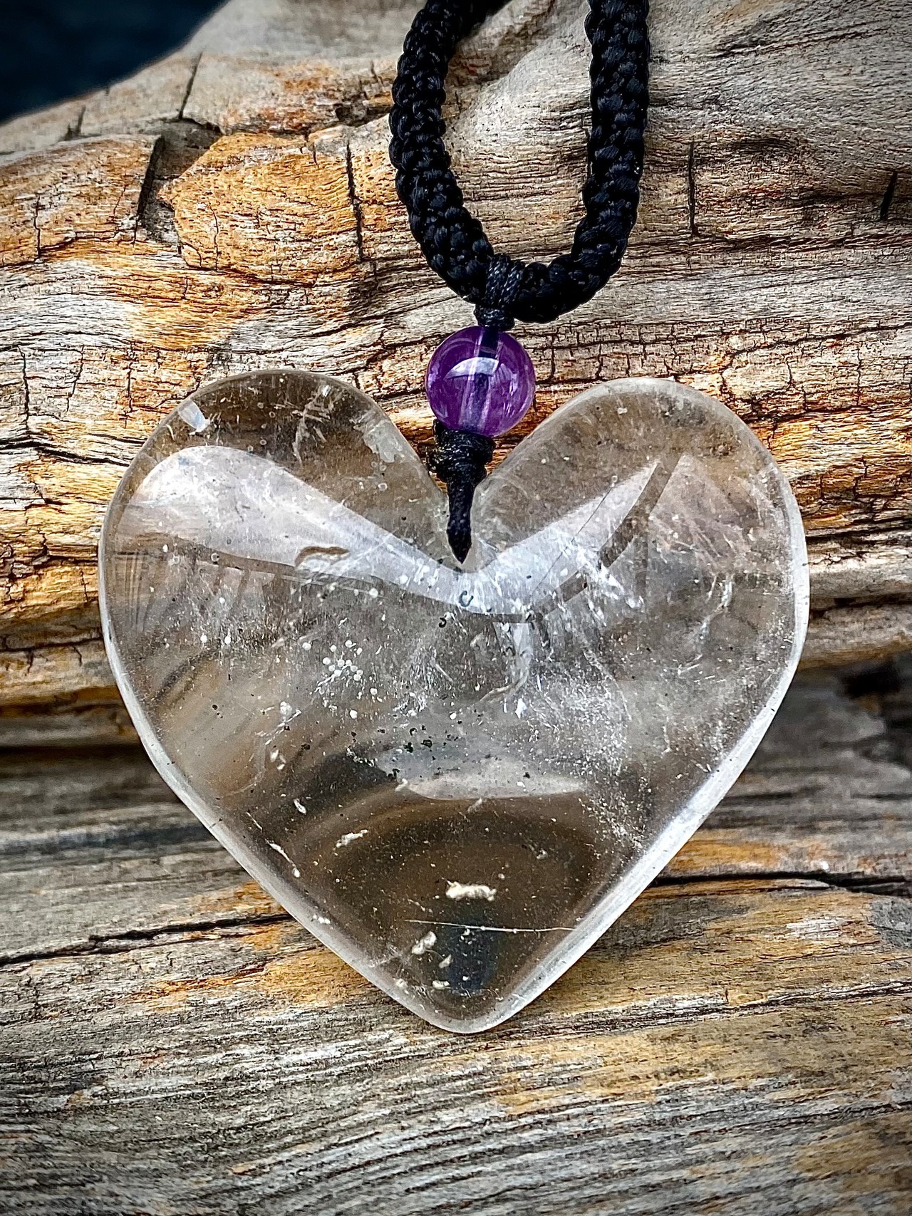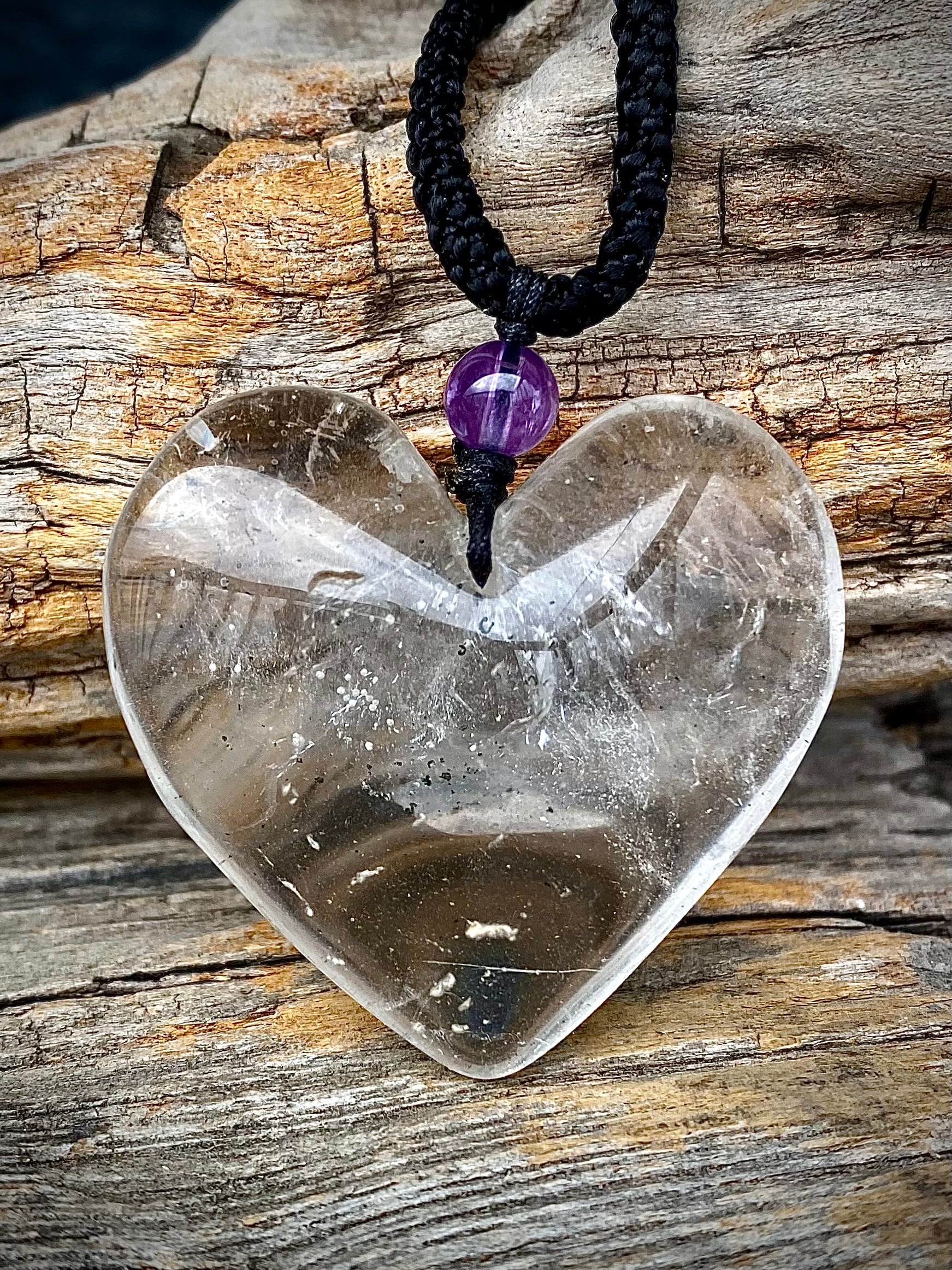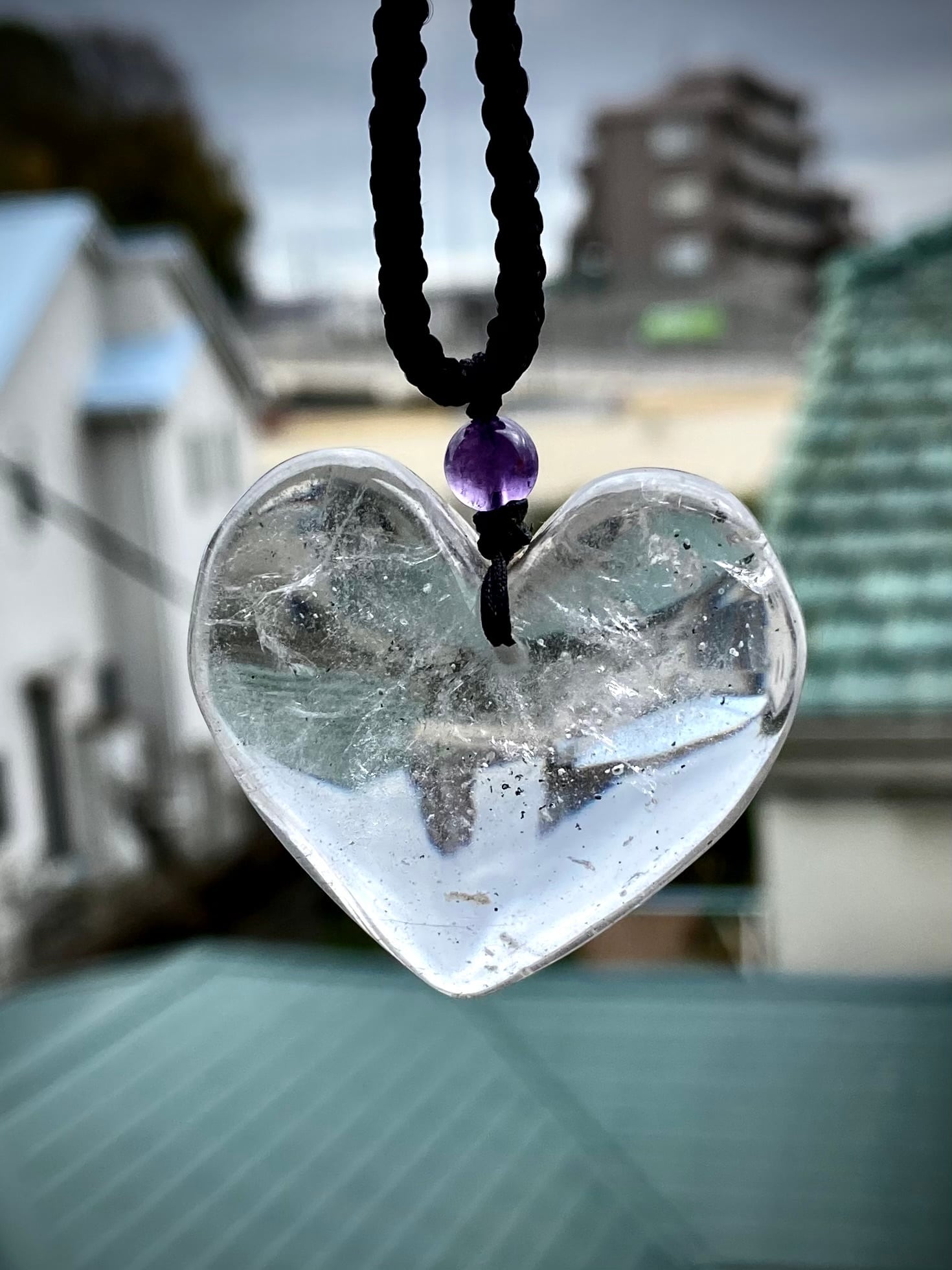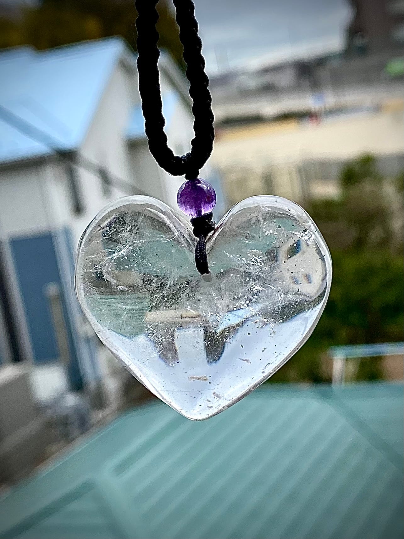 天然石レインボー水晶ハートペンダント