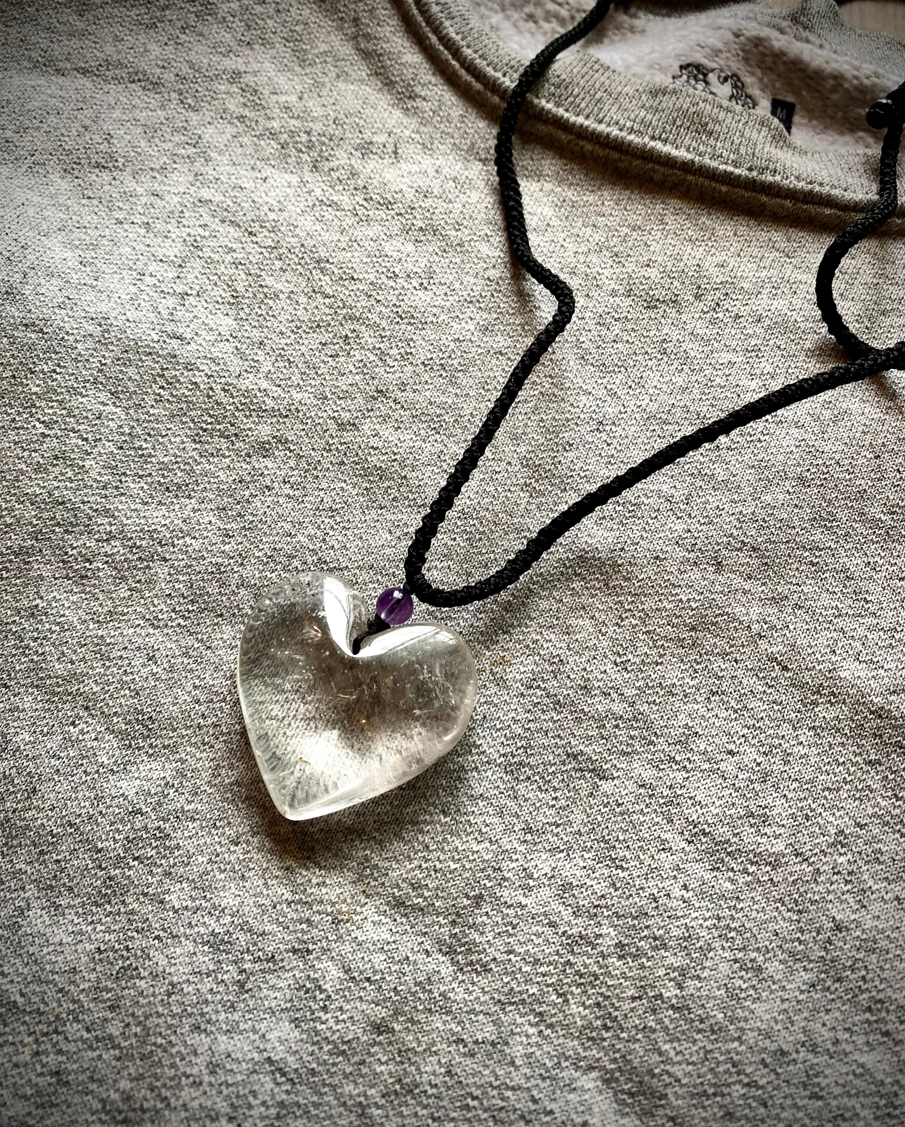 セレクトインポートしました天然石水晶ハートペンダントです。