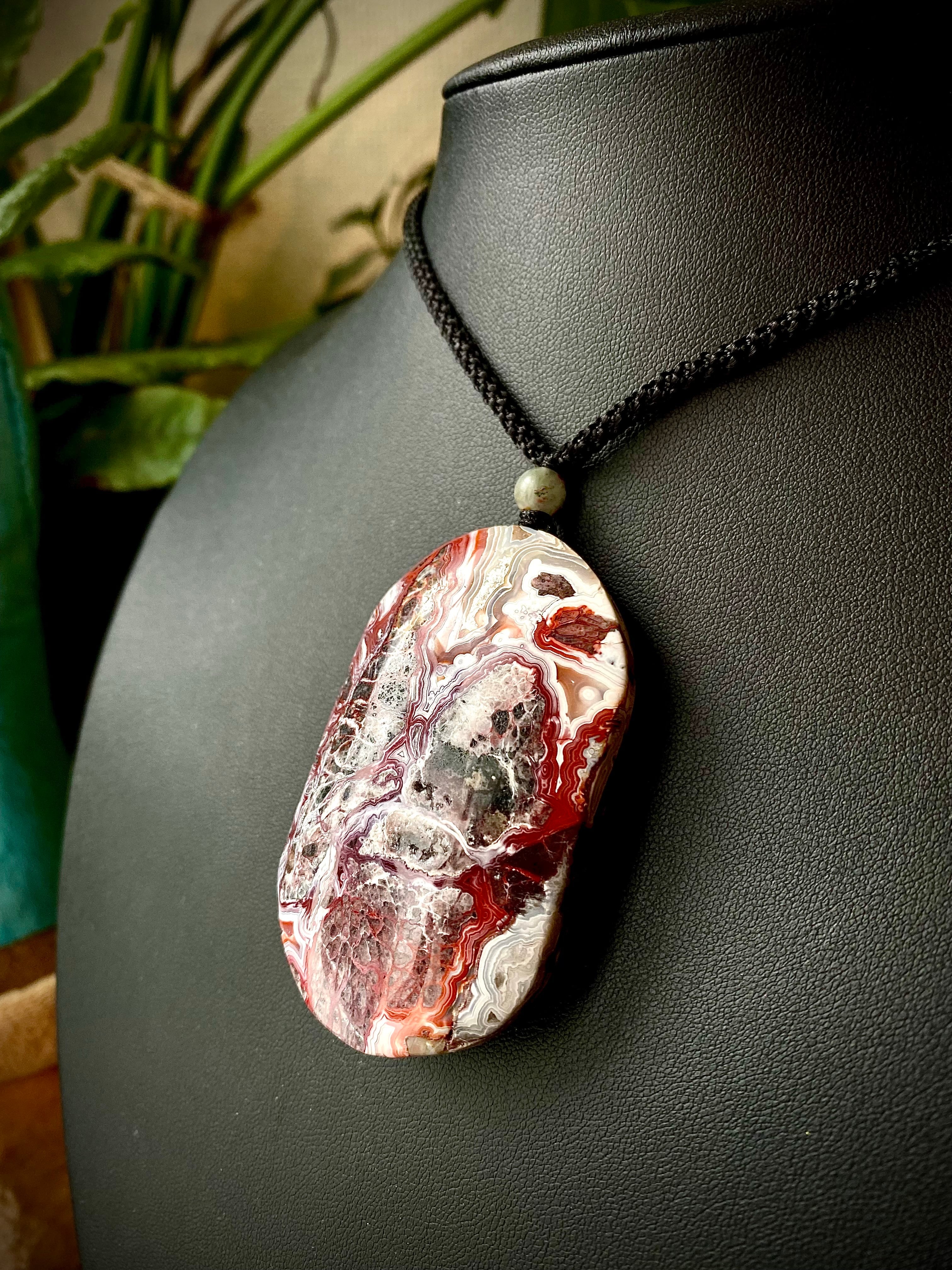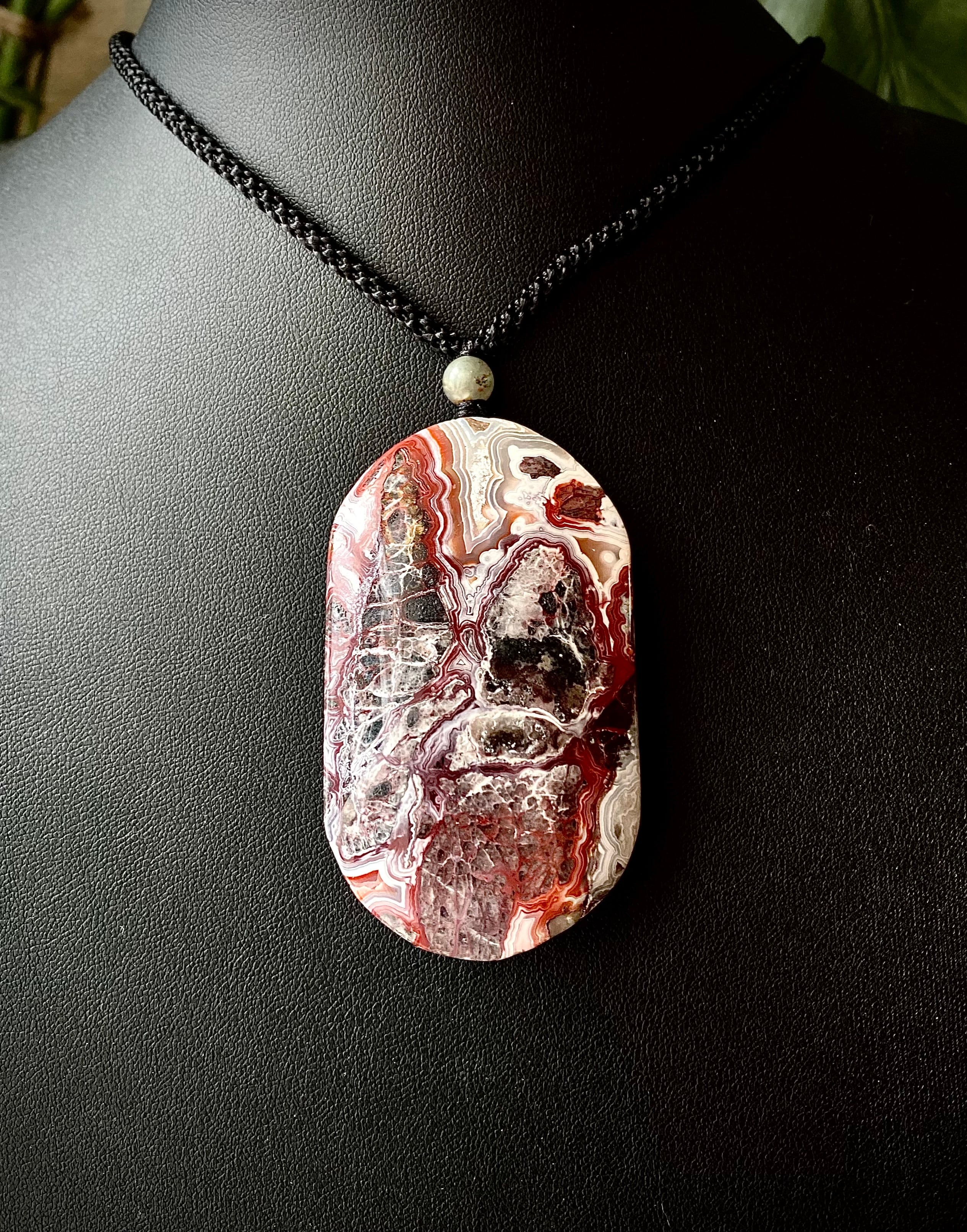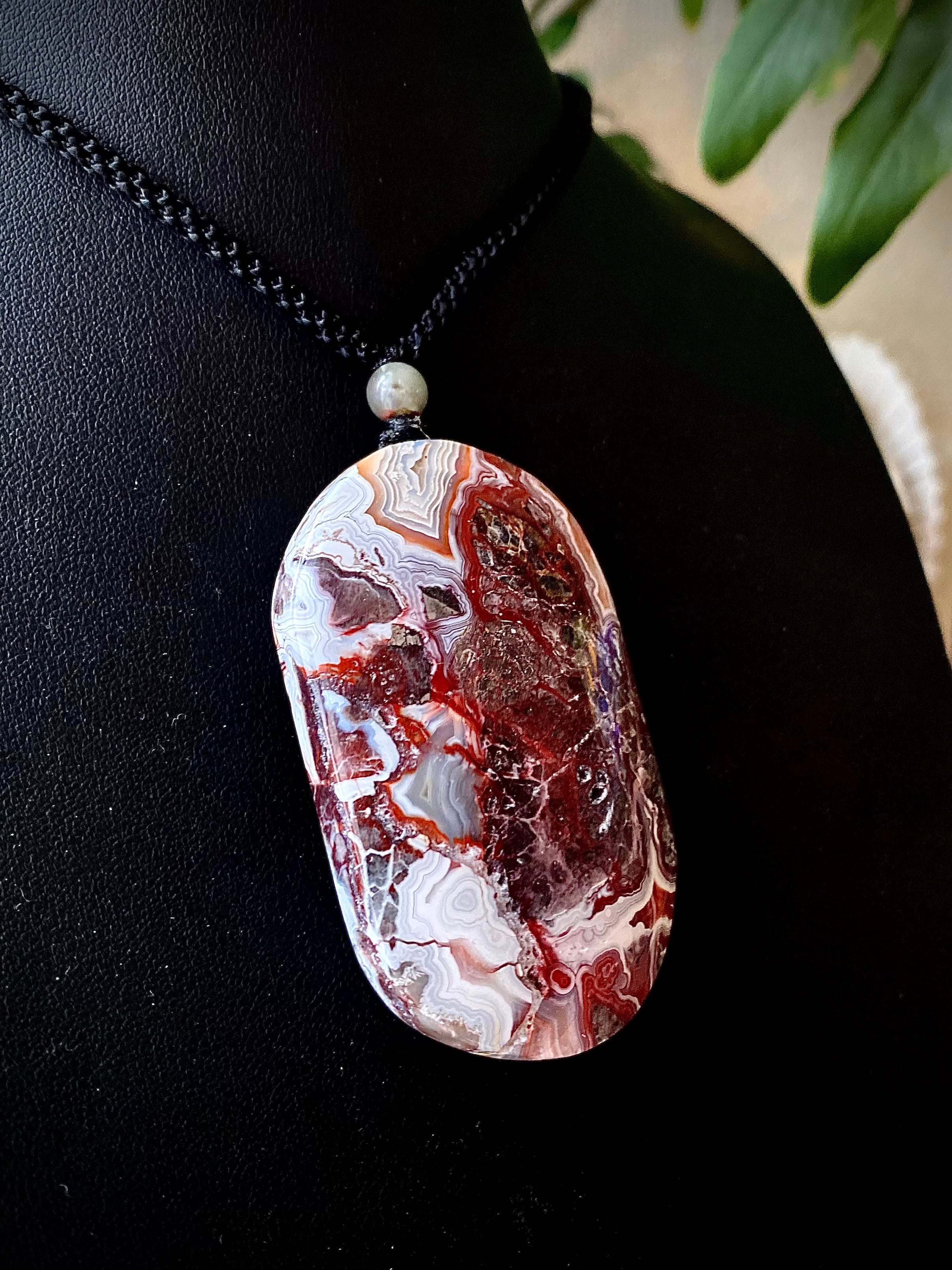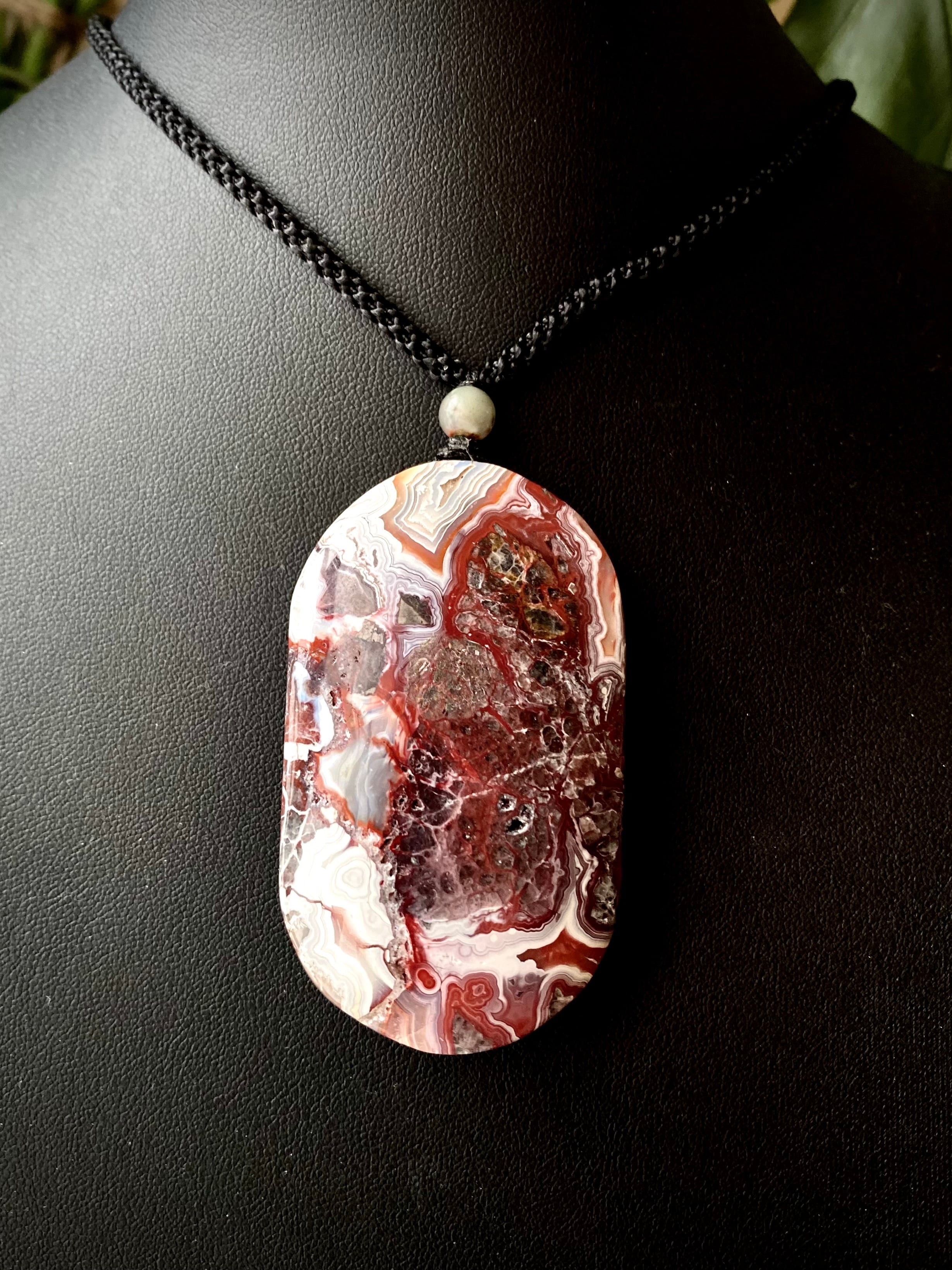 レンガっぽいレッドカラーマーブルで面白い天眼が楽しめる石にアートを感じるペンダント。