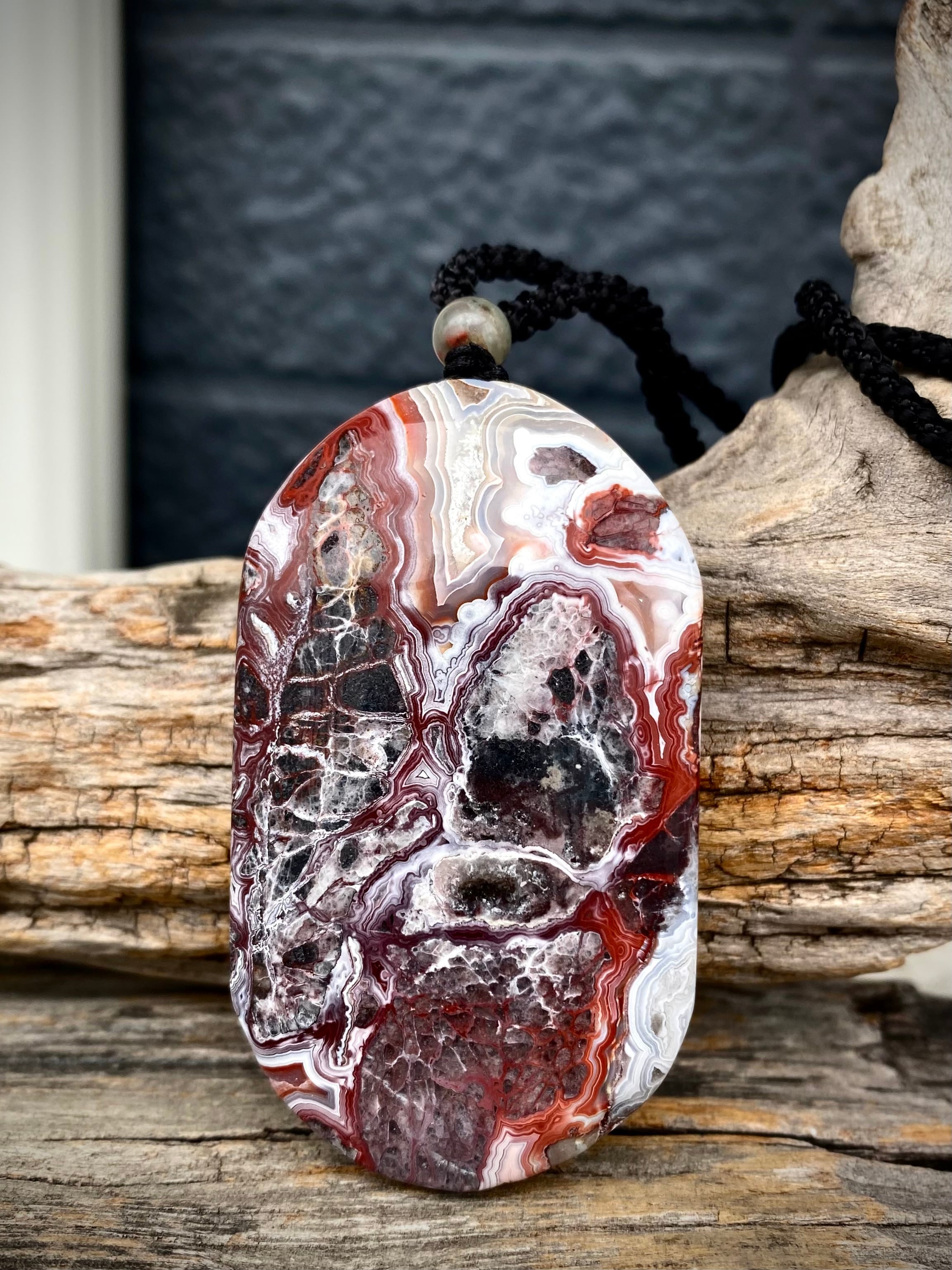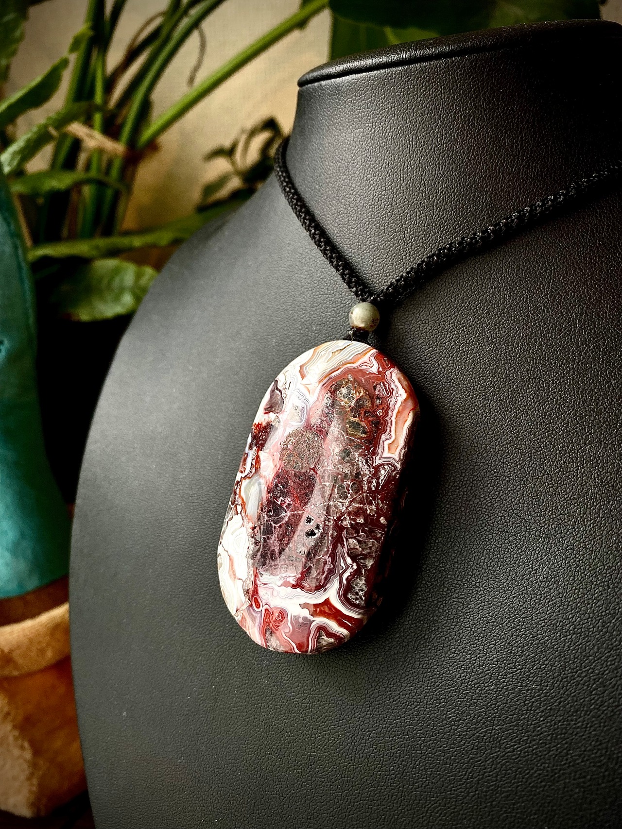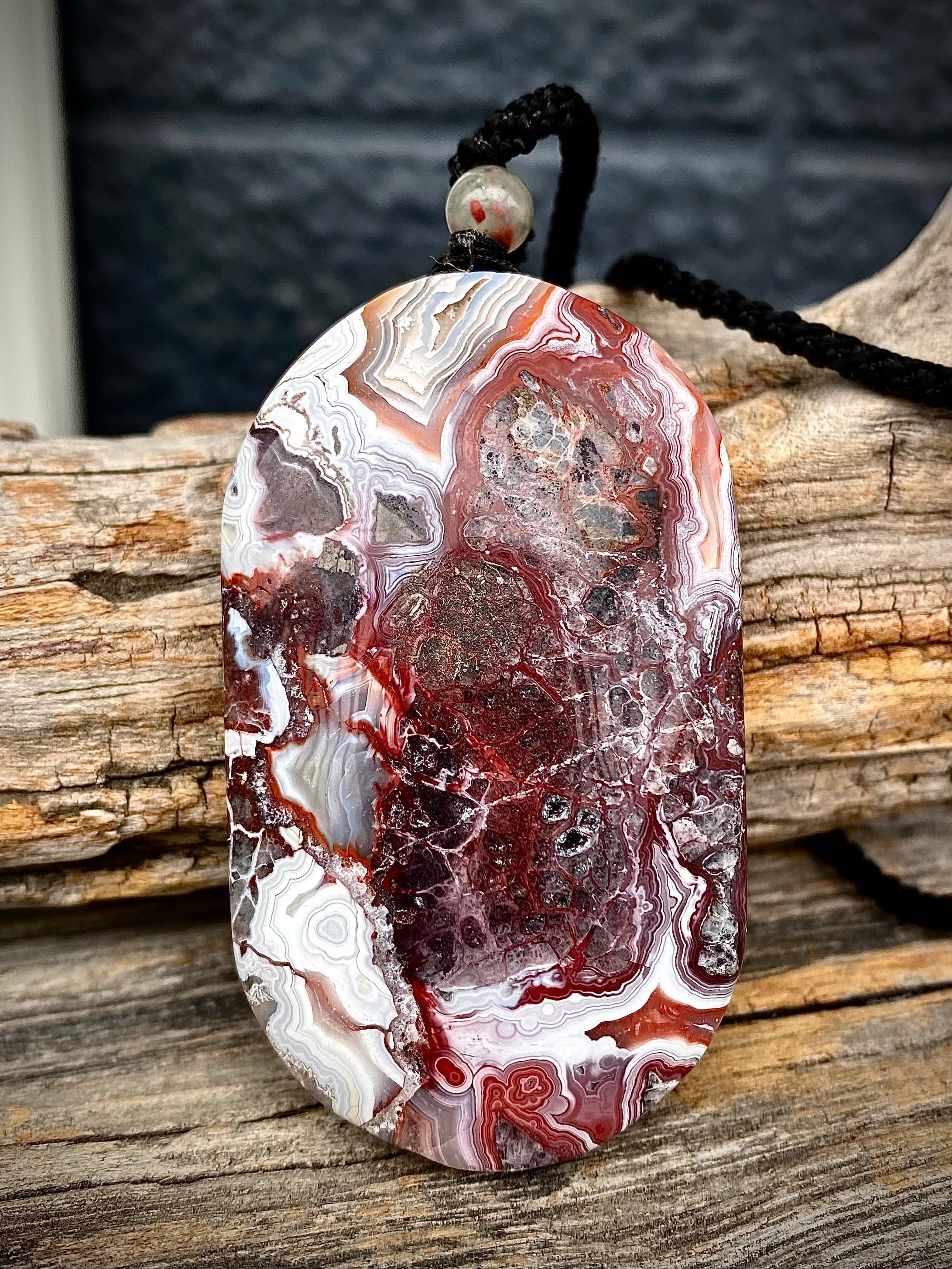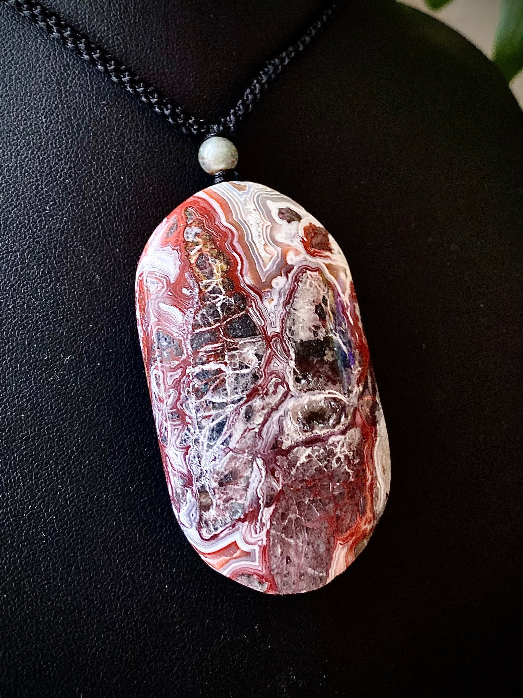 レンガっぽいレッドカラーマーブルで面白い天眼が楽しめる石にアートを感じるペンダント。