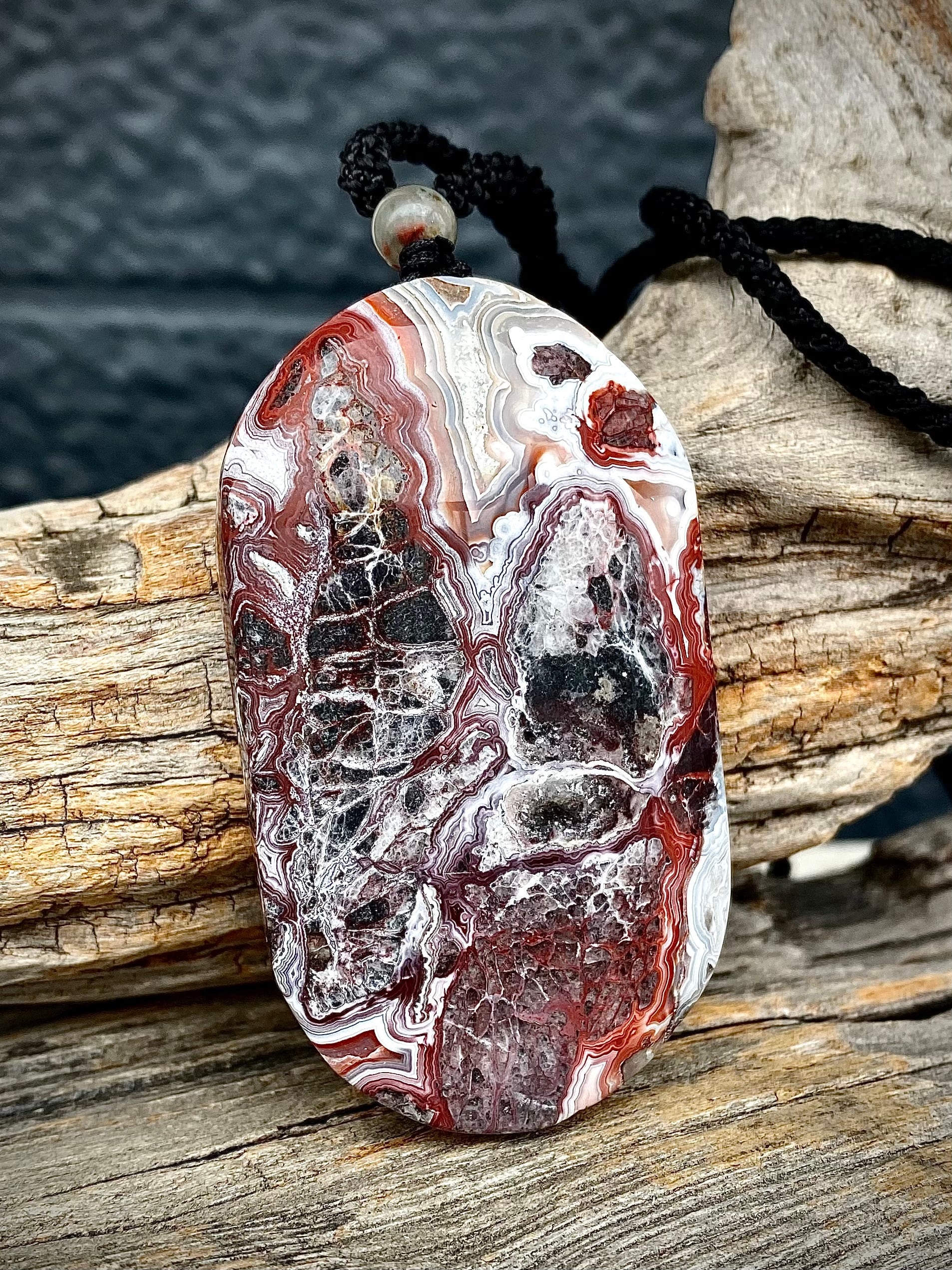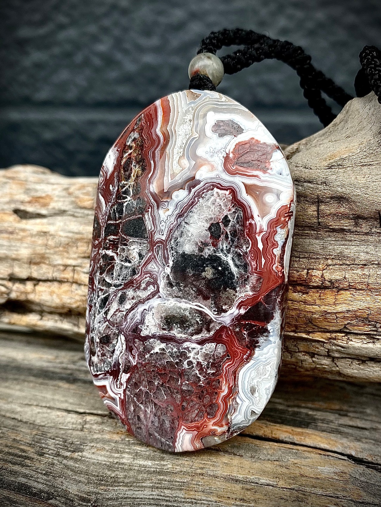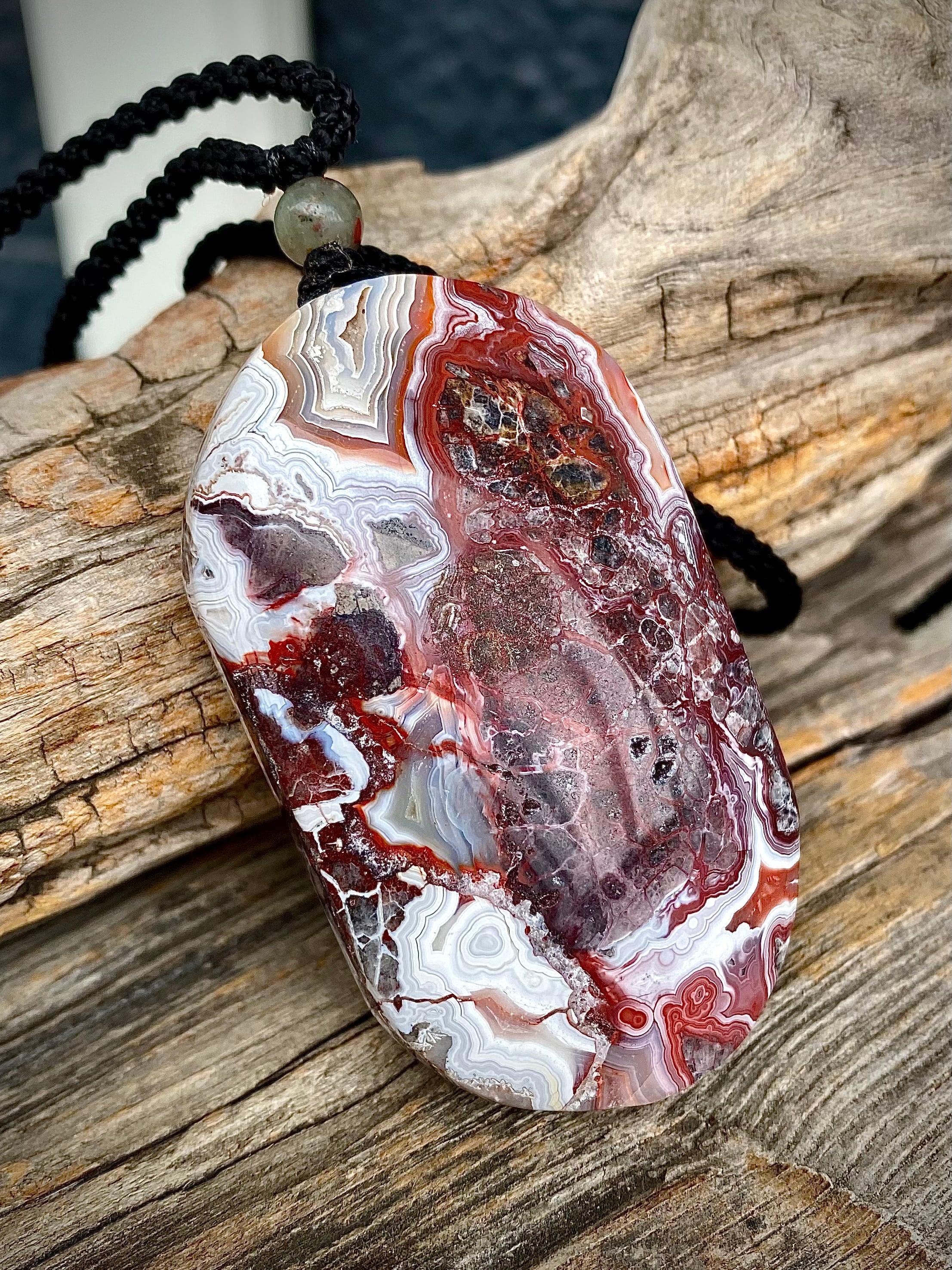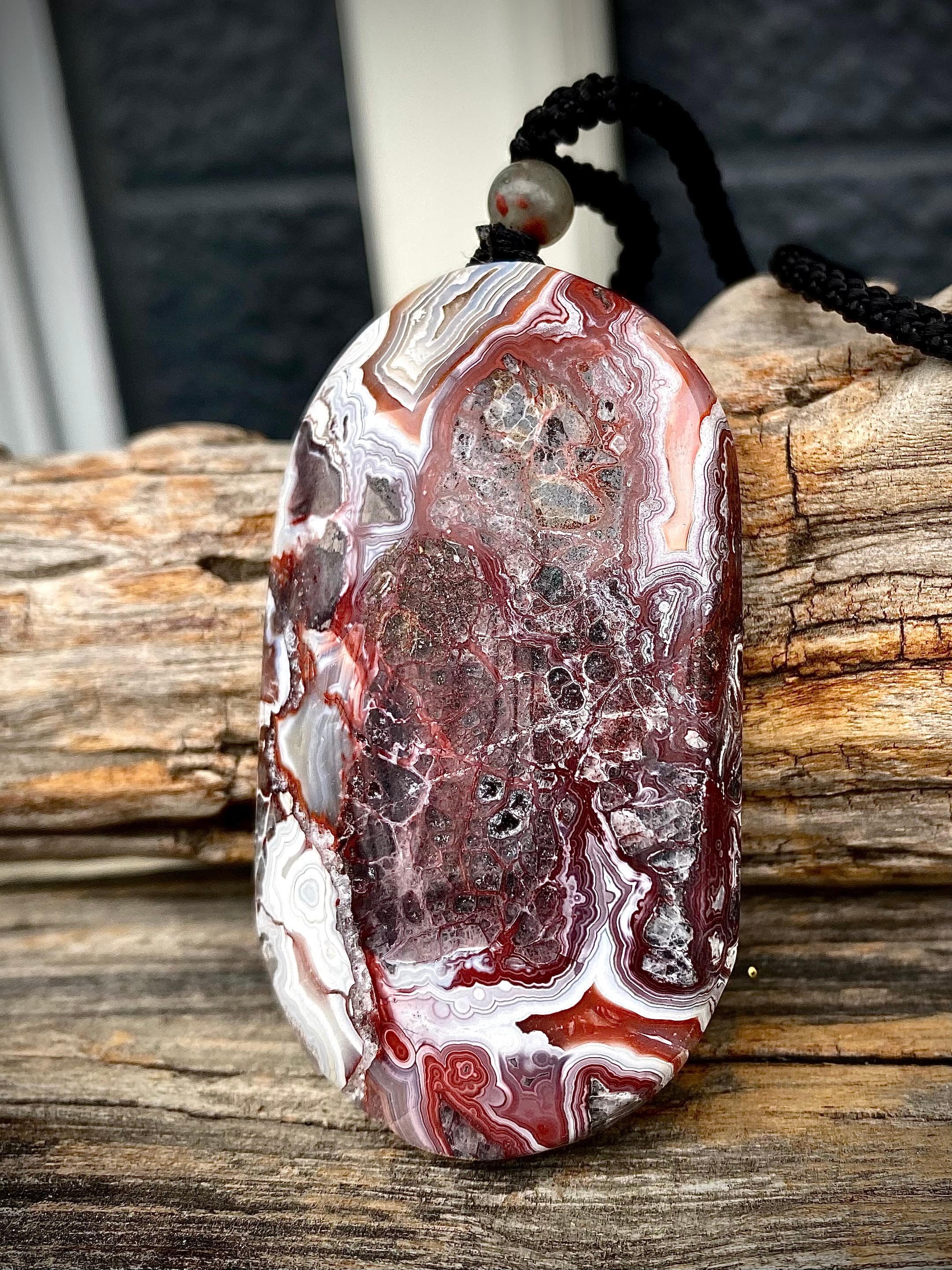 レンガっぽいレッドカラーマーブルで面白い天眼が楽しめる石にアートを感じるペンダント。