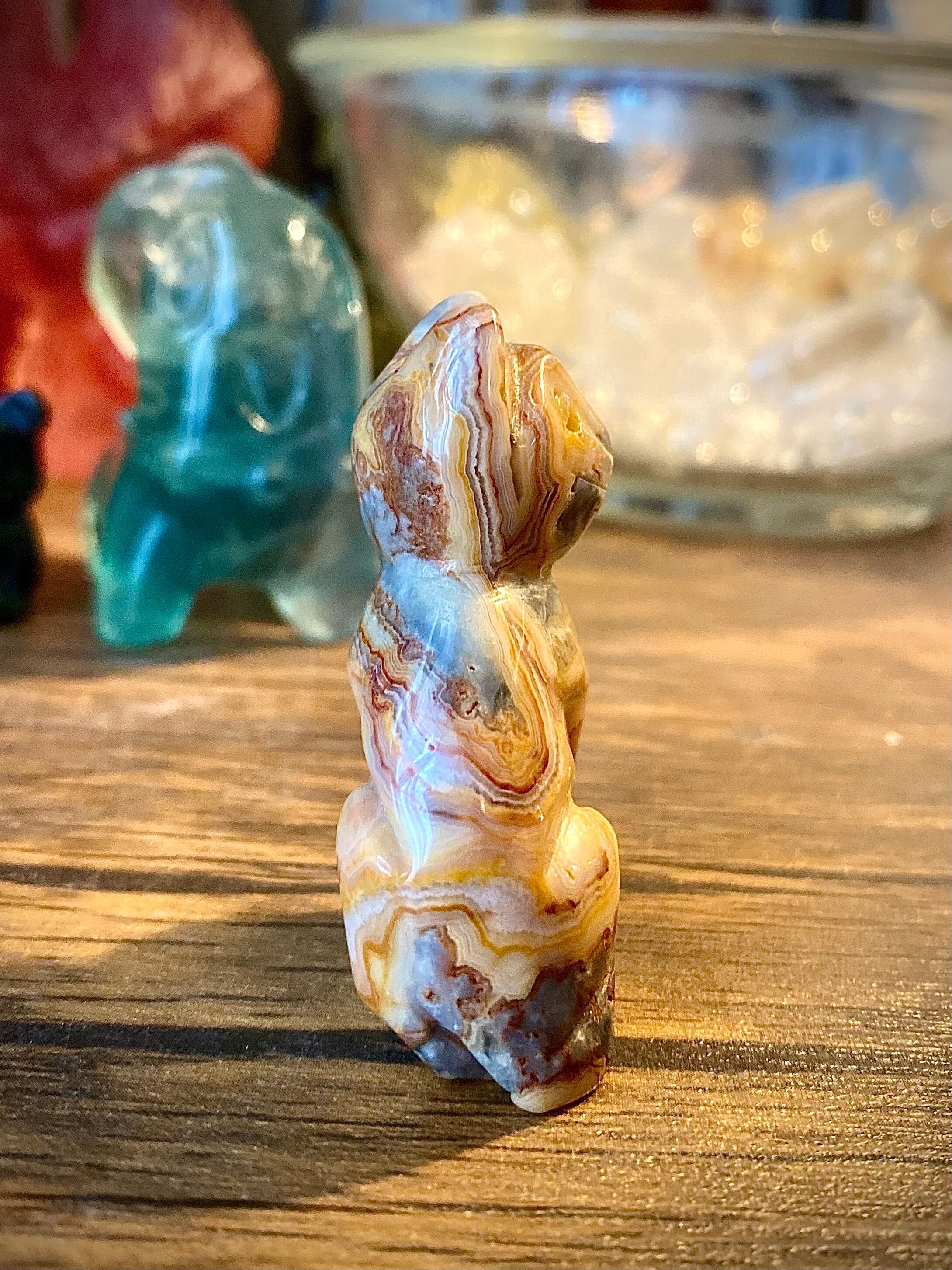 効能:クレイジーレースアゲートは、ヒーリングストーンの一つで、幾層にも重なった模様から発せられる些細な波動が心身にやさしく働きかけ、持ち主の精神的な痛みを和らげ、感情的な負担を解放してくれるといわれています。 クレイジーレースアゲートは、強力な守護力があり、旅の守護石とも呼ばれています。