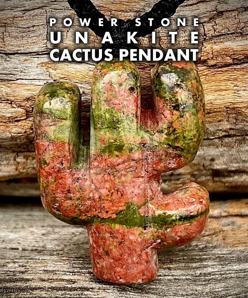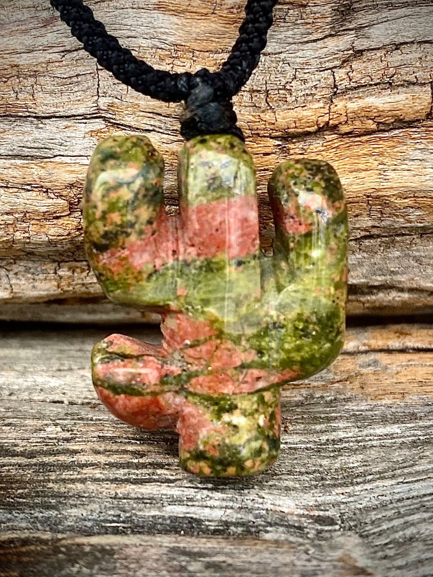 セレクトインポートしました天然石ユナカイトミニサボテンペンダントです。