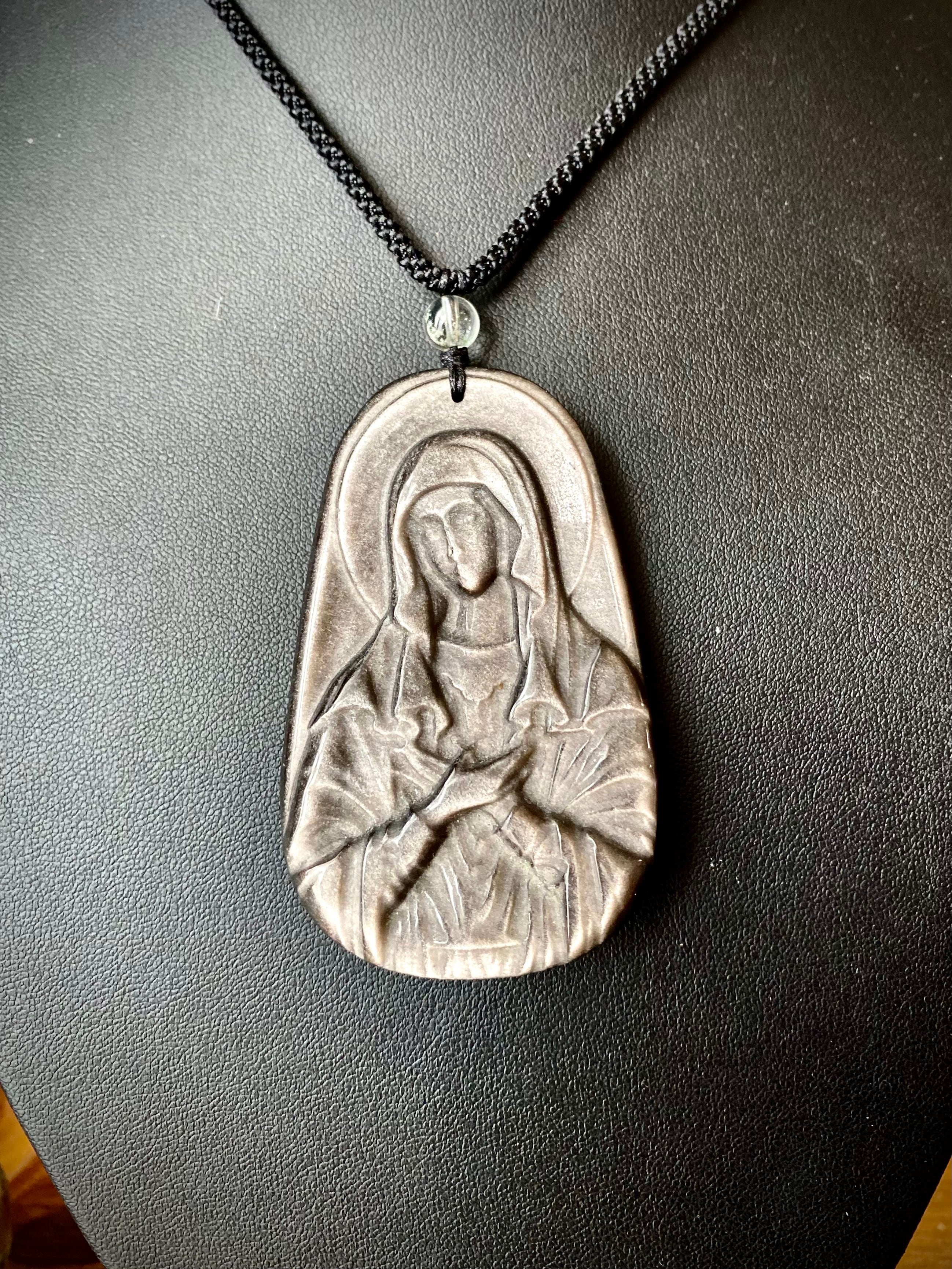 天然石シルバーオブシディアンマリアペンダント