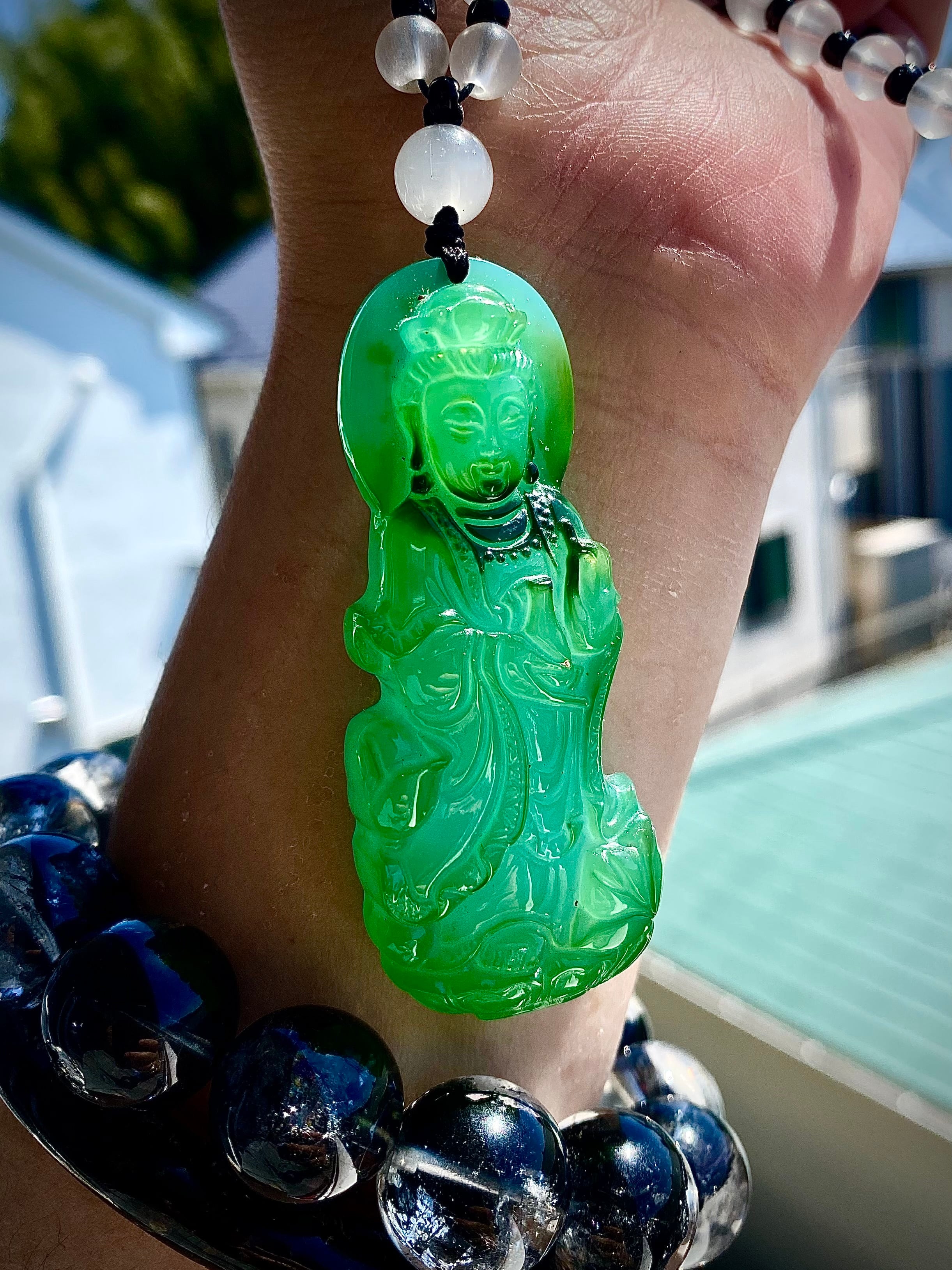 天然石アゲート観音様ペンダント