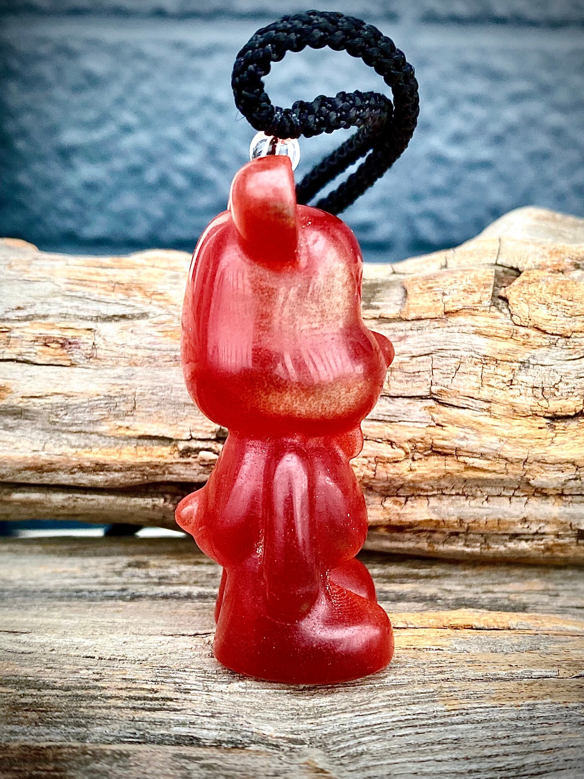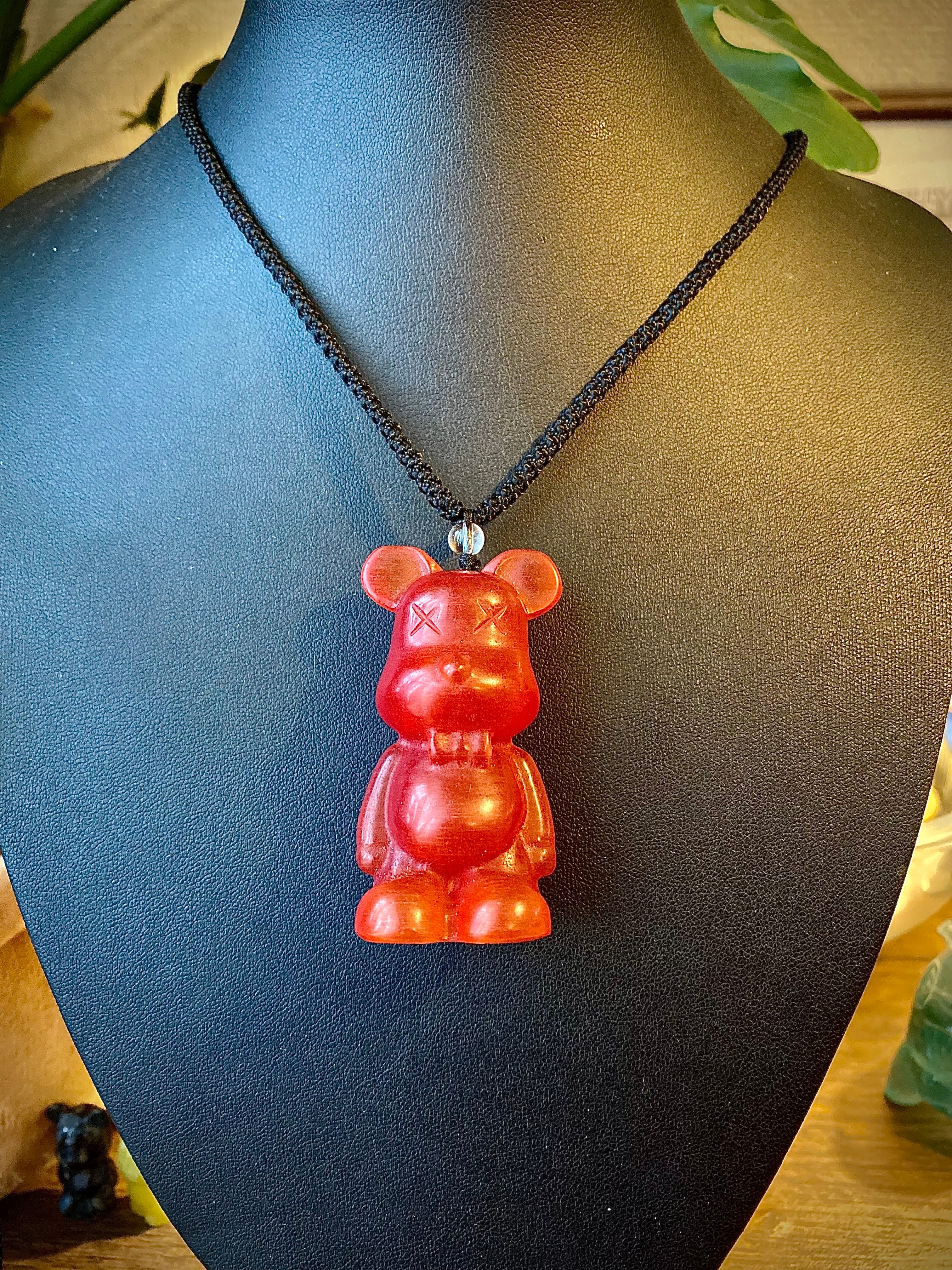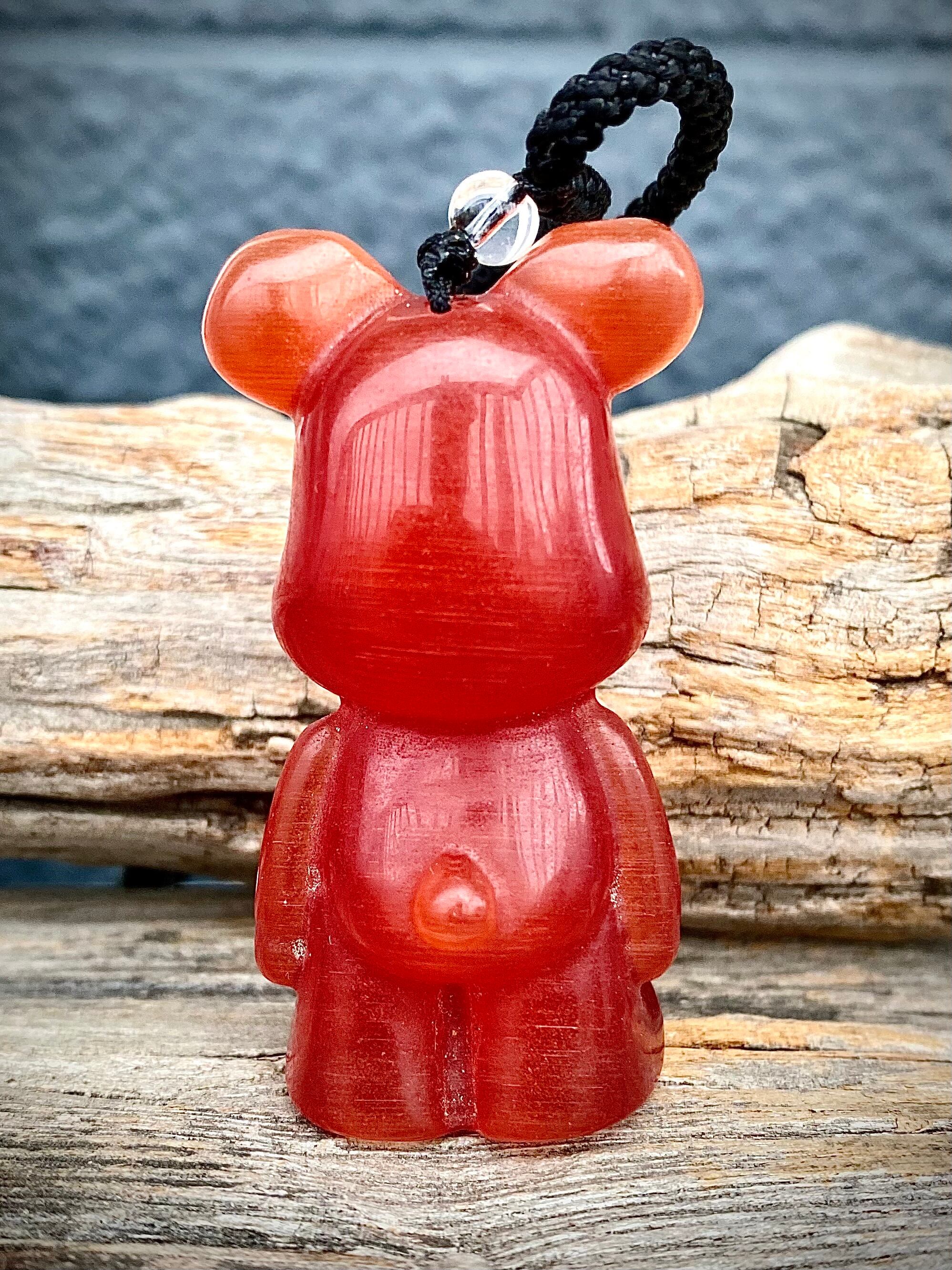天然石レッドセレナイトベアブリックペンダント【5.8cm】