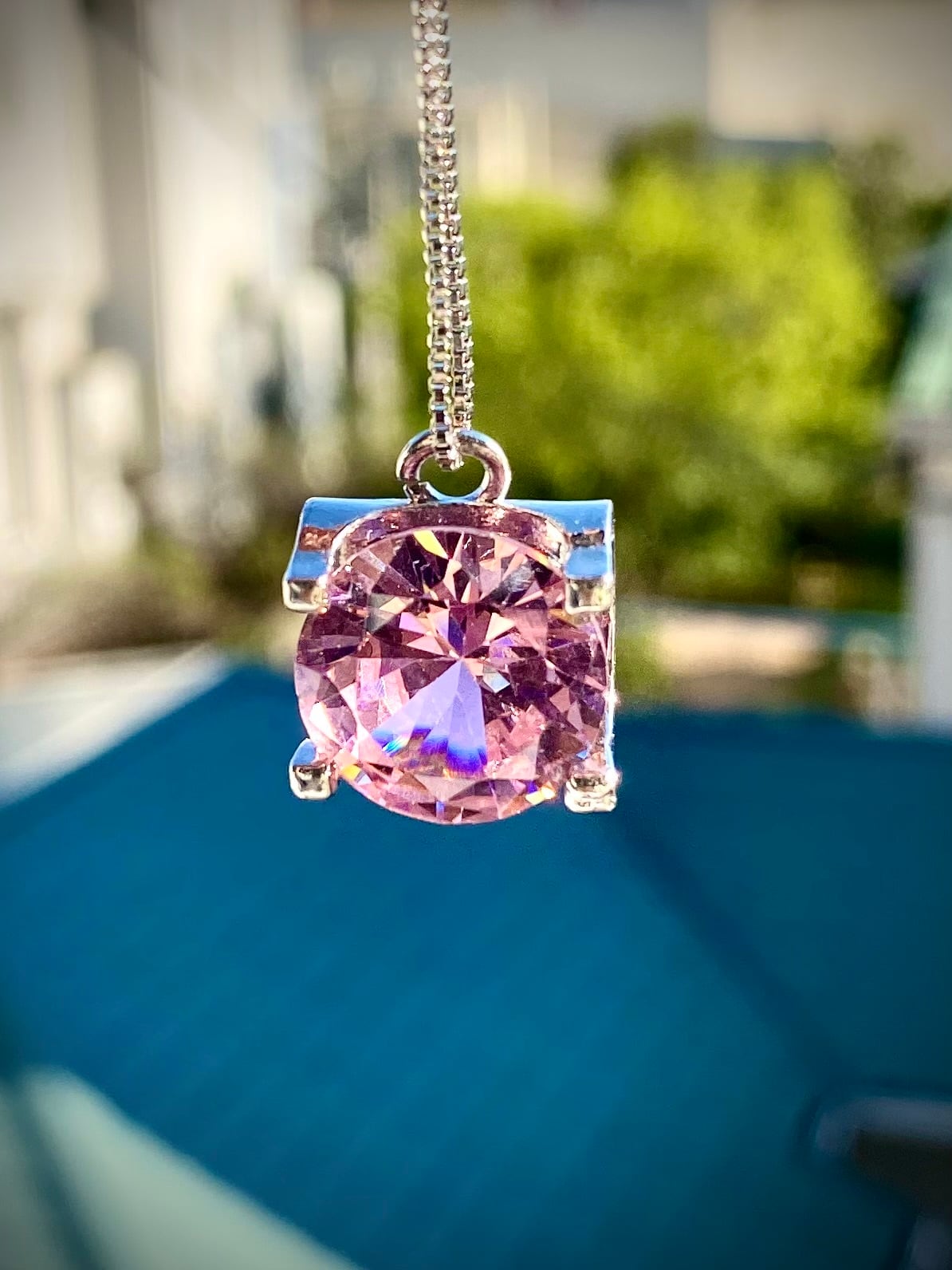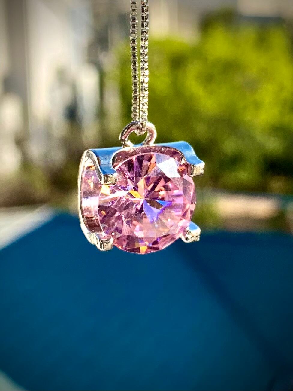 セレクトインポートしました天然石ピンクジルコンラウンドペンダントです。