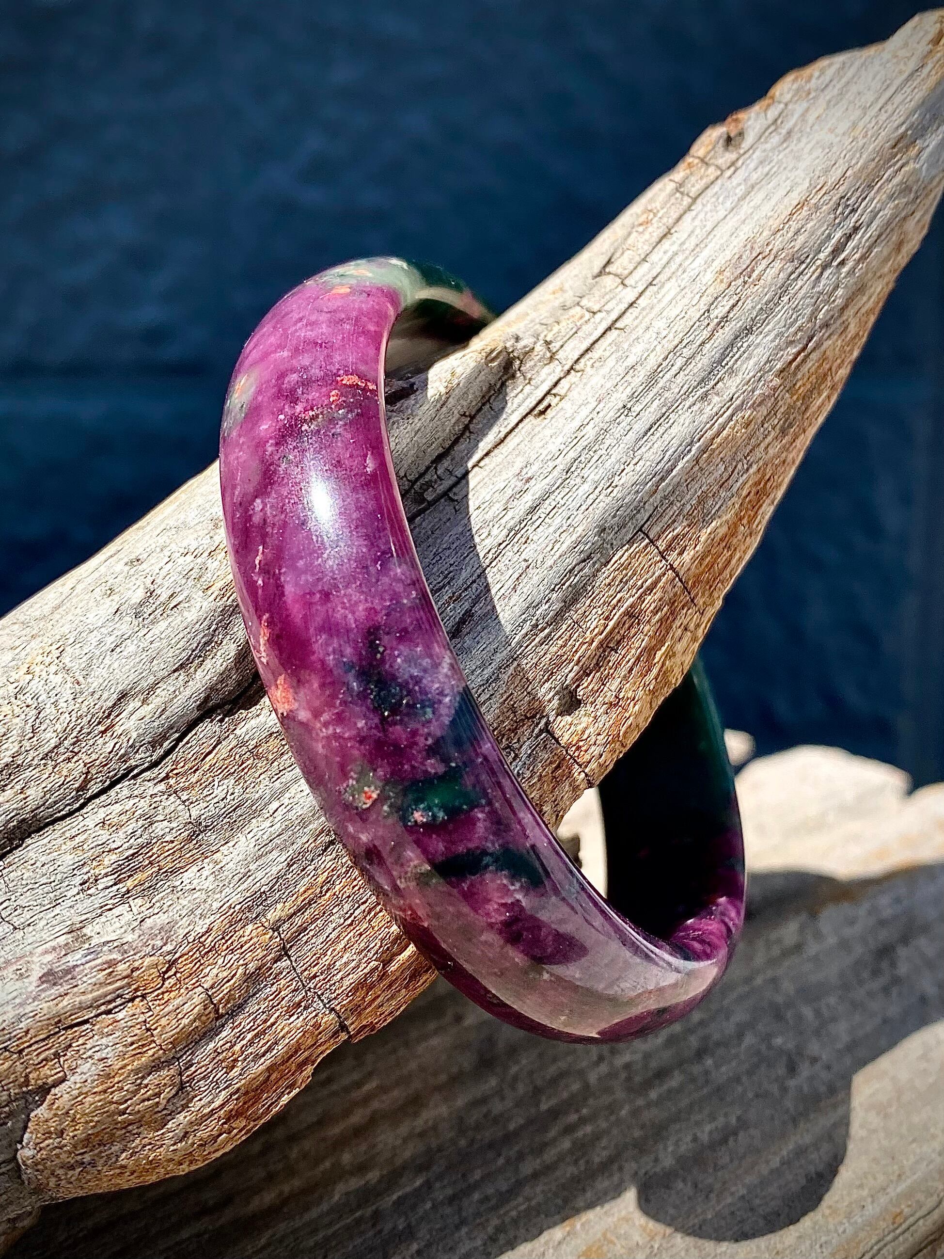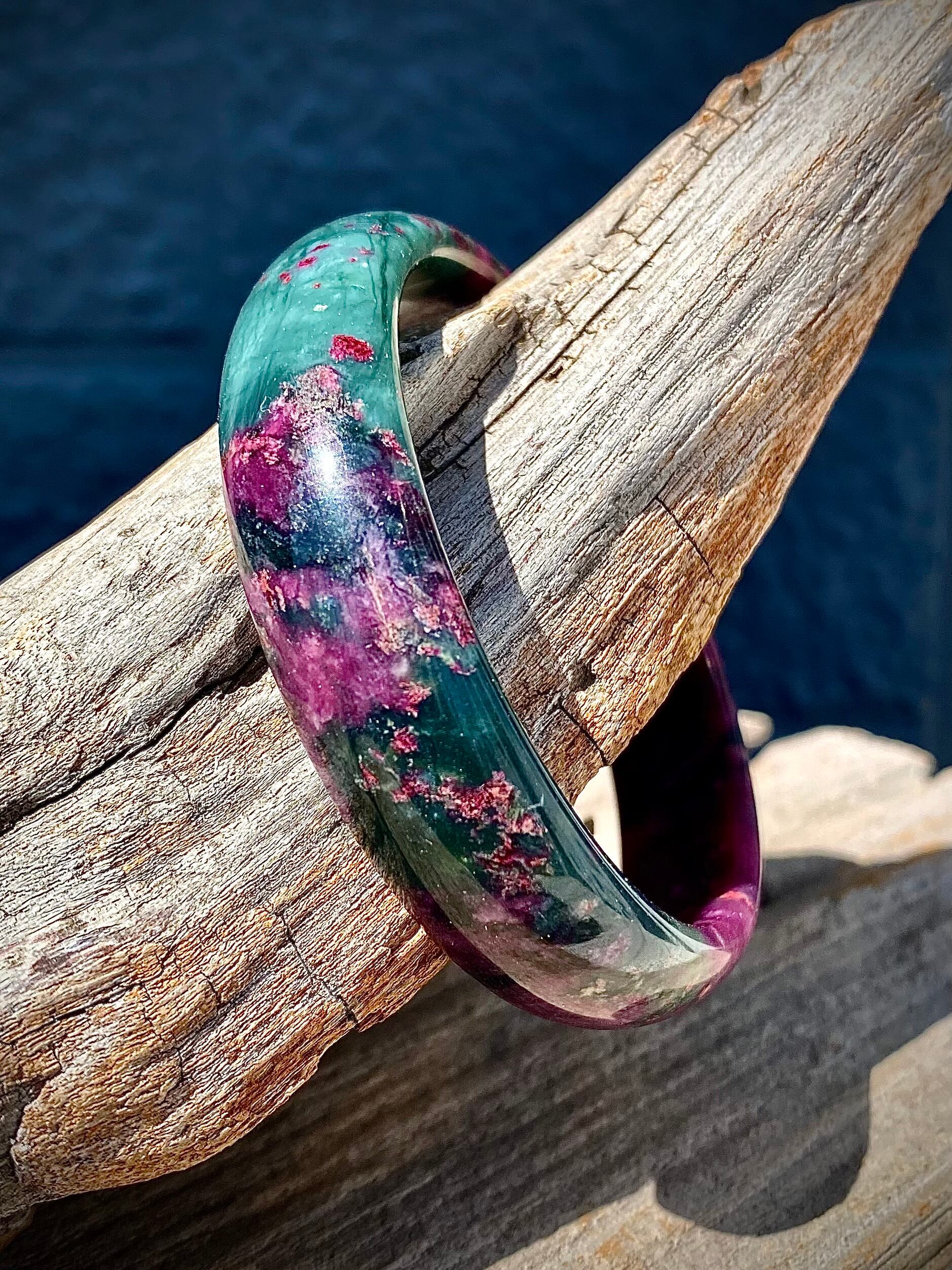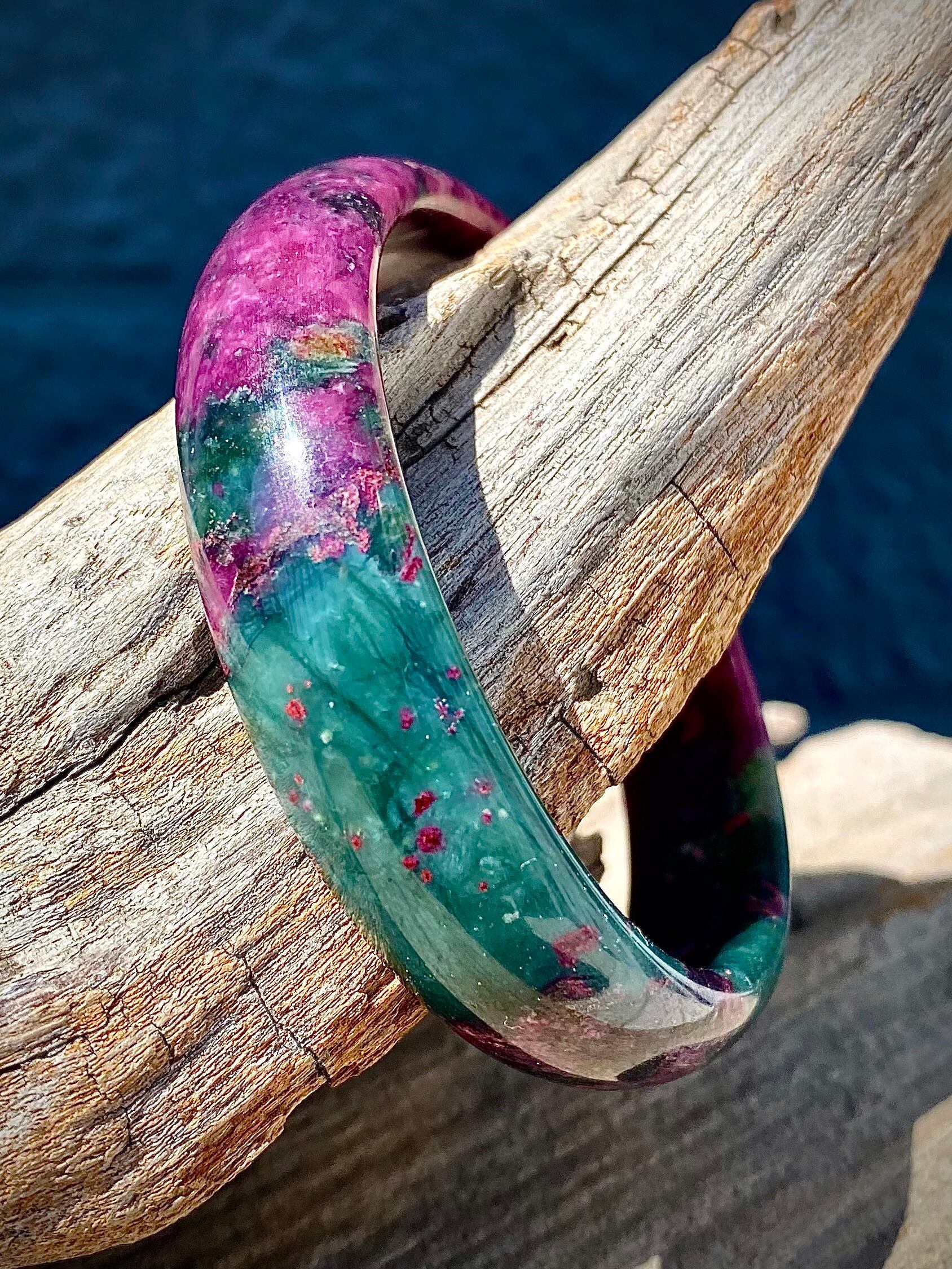 セレクトインポートしました、天然石染めのピンク翡翠バングルです。