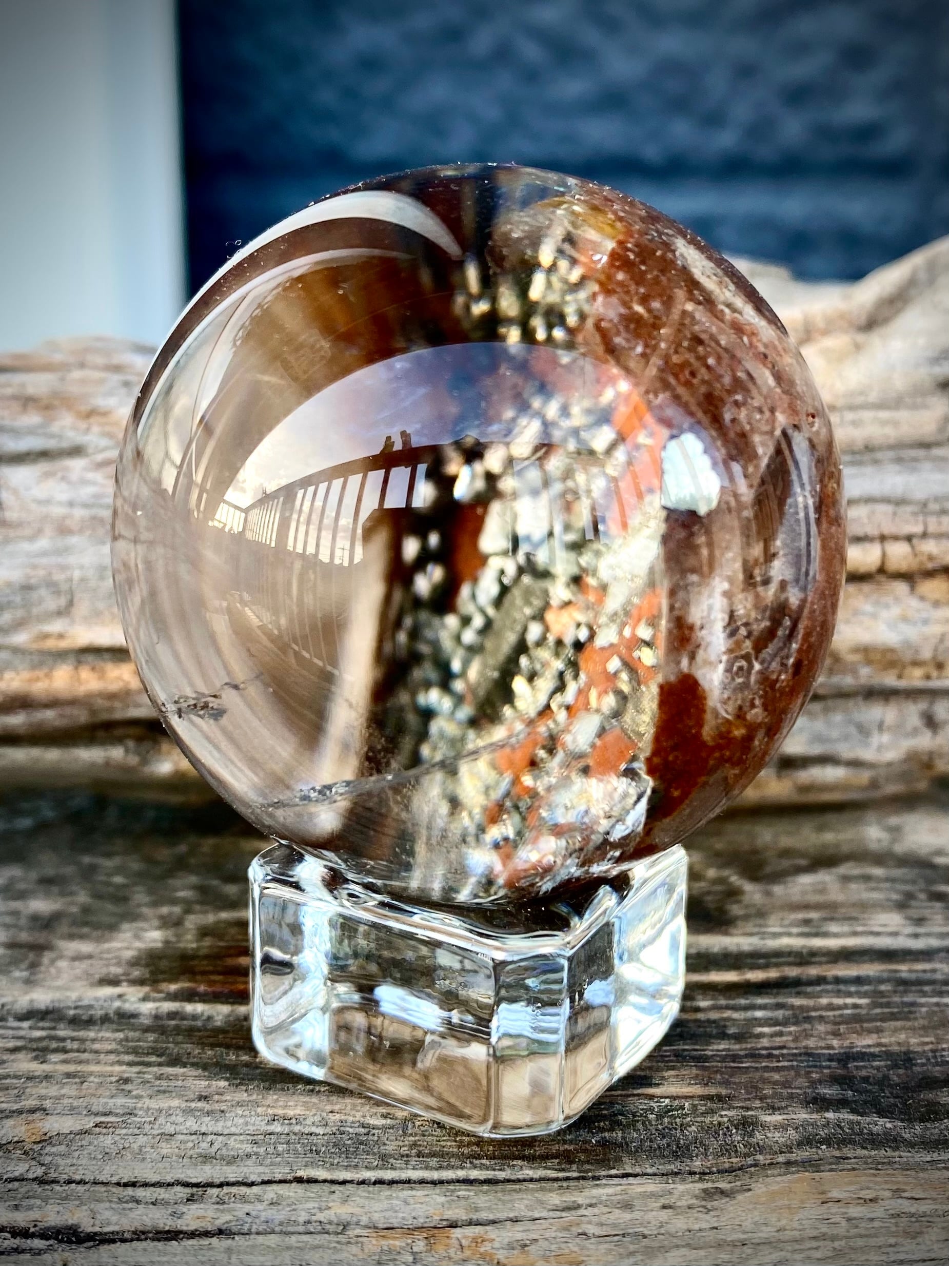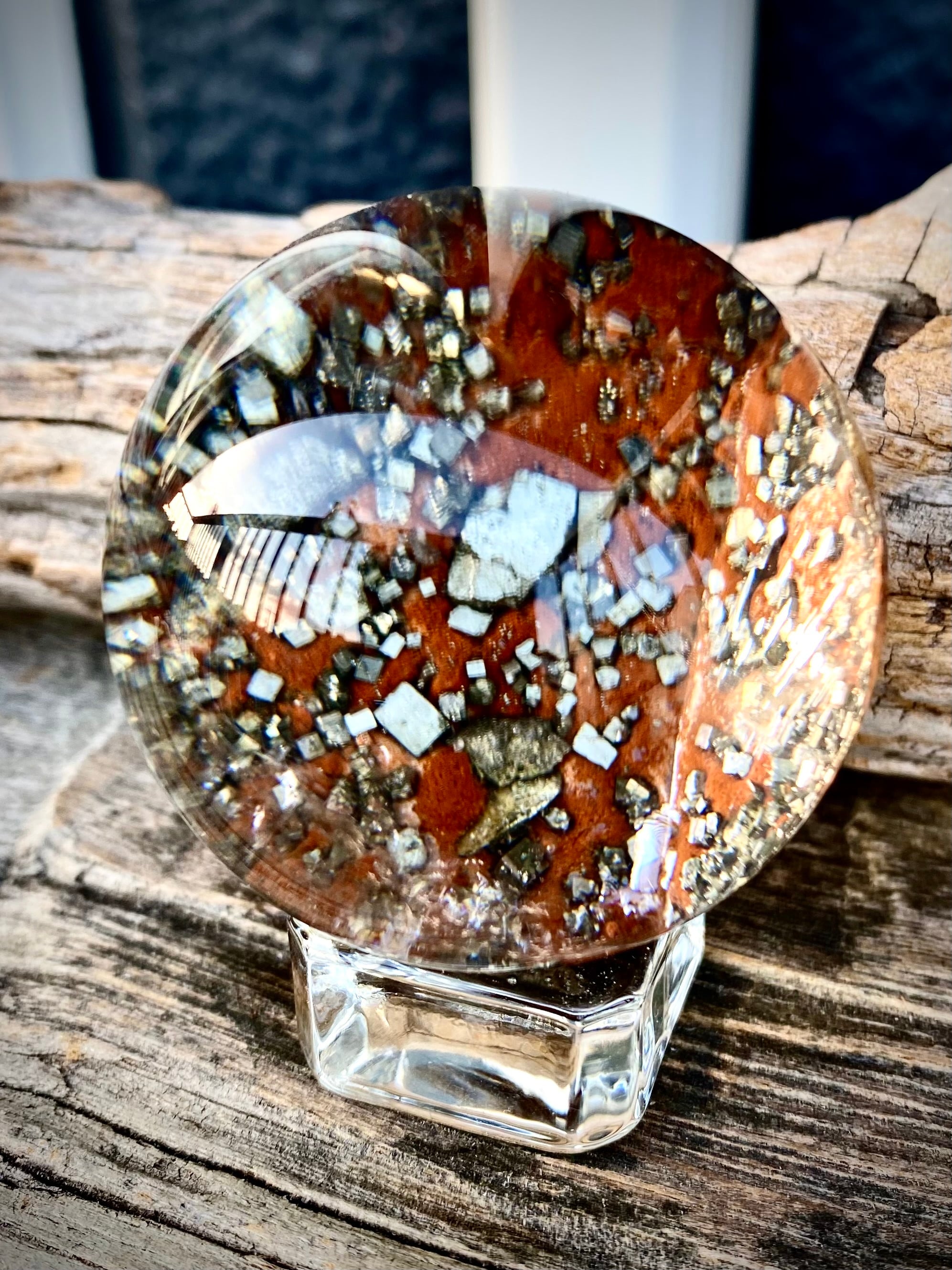 セレクトインポートしました天然石パイライトインクォーツスフィアです。