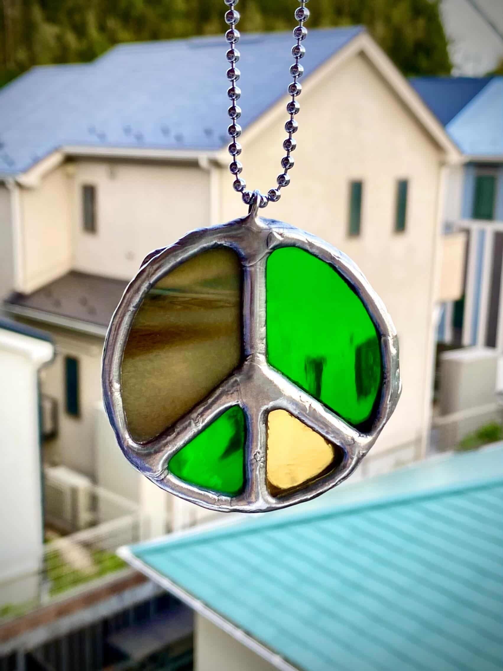 ステンドグラスサンキャッチャーピースマーク