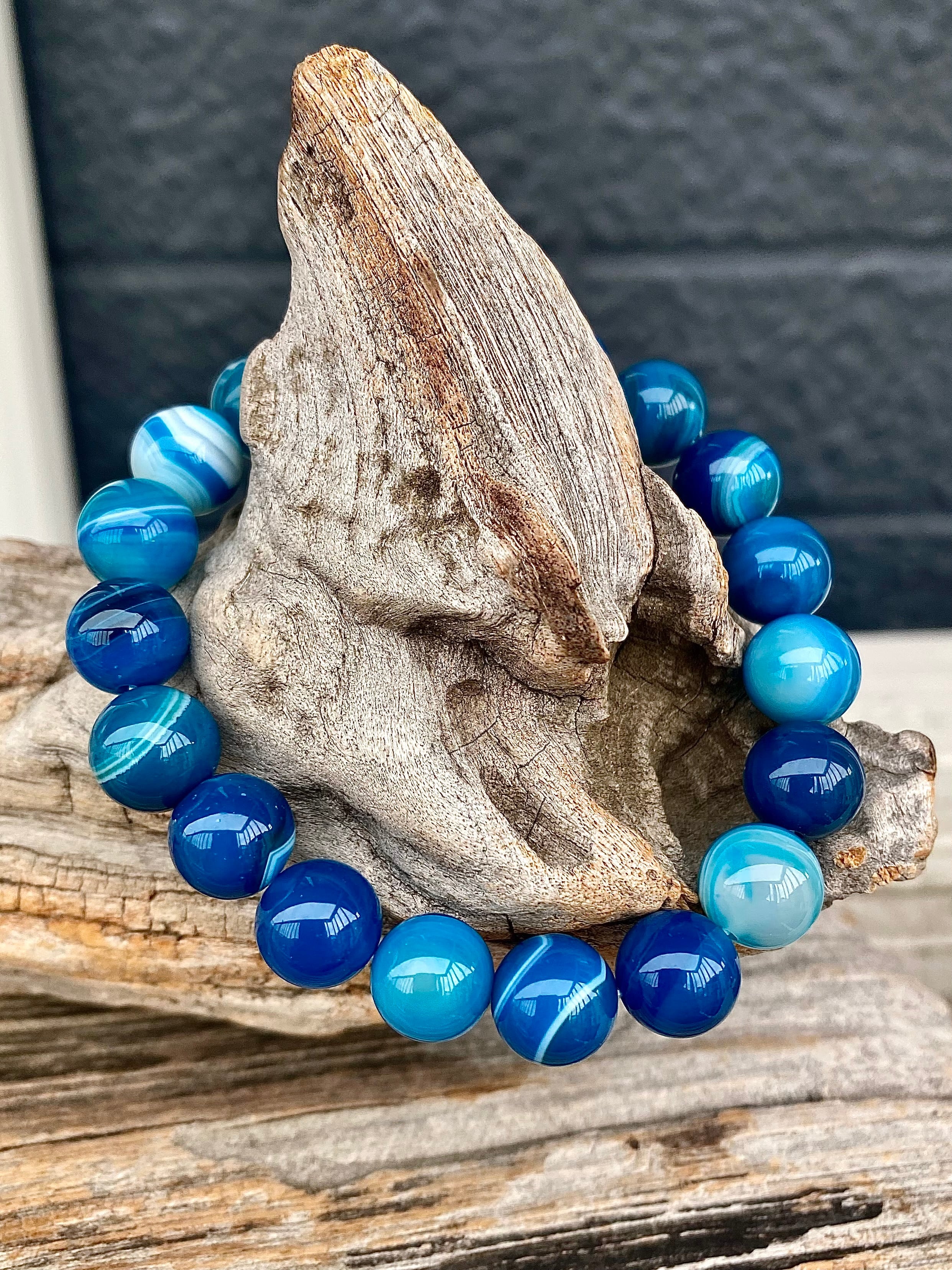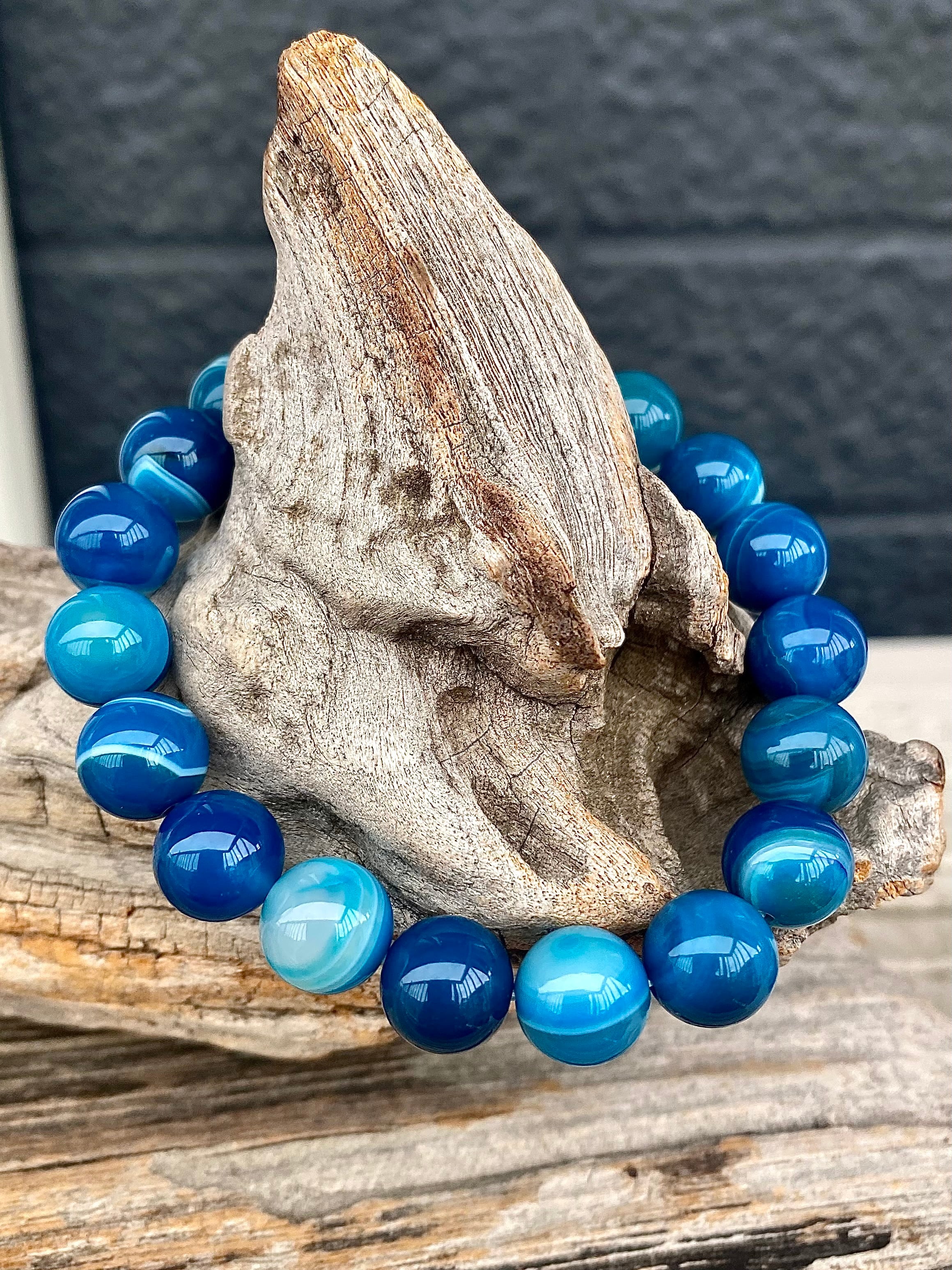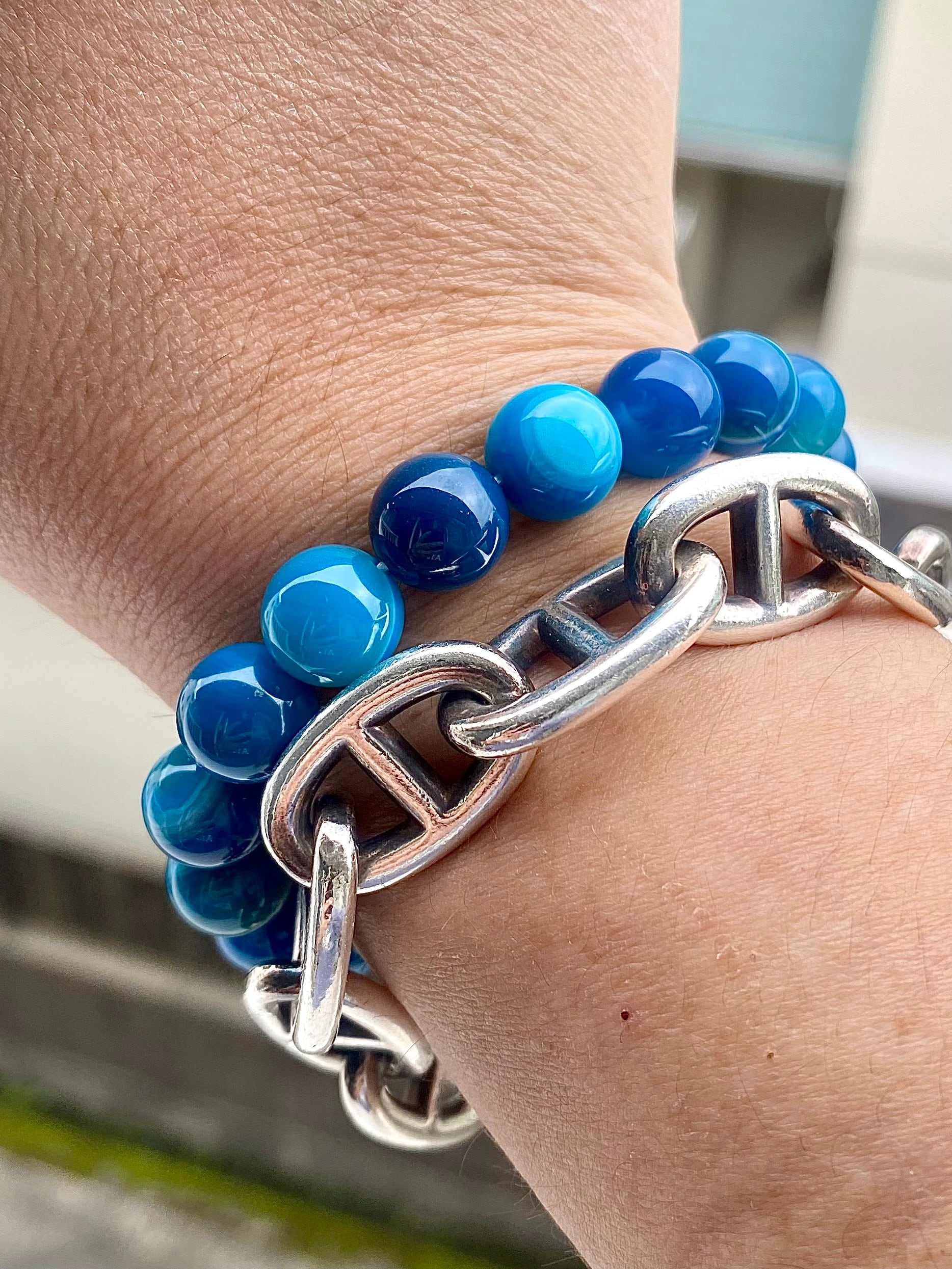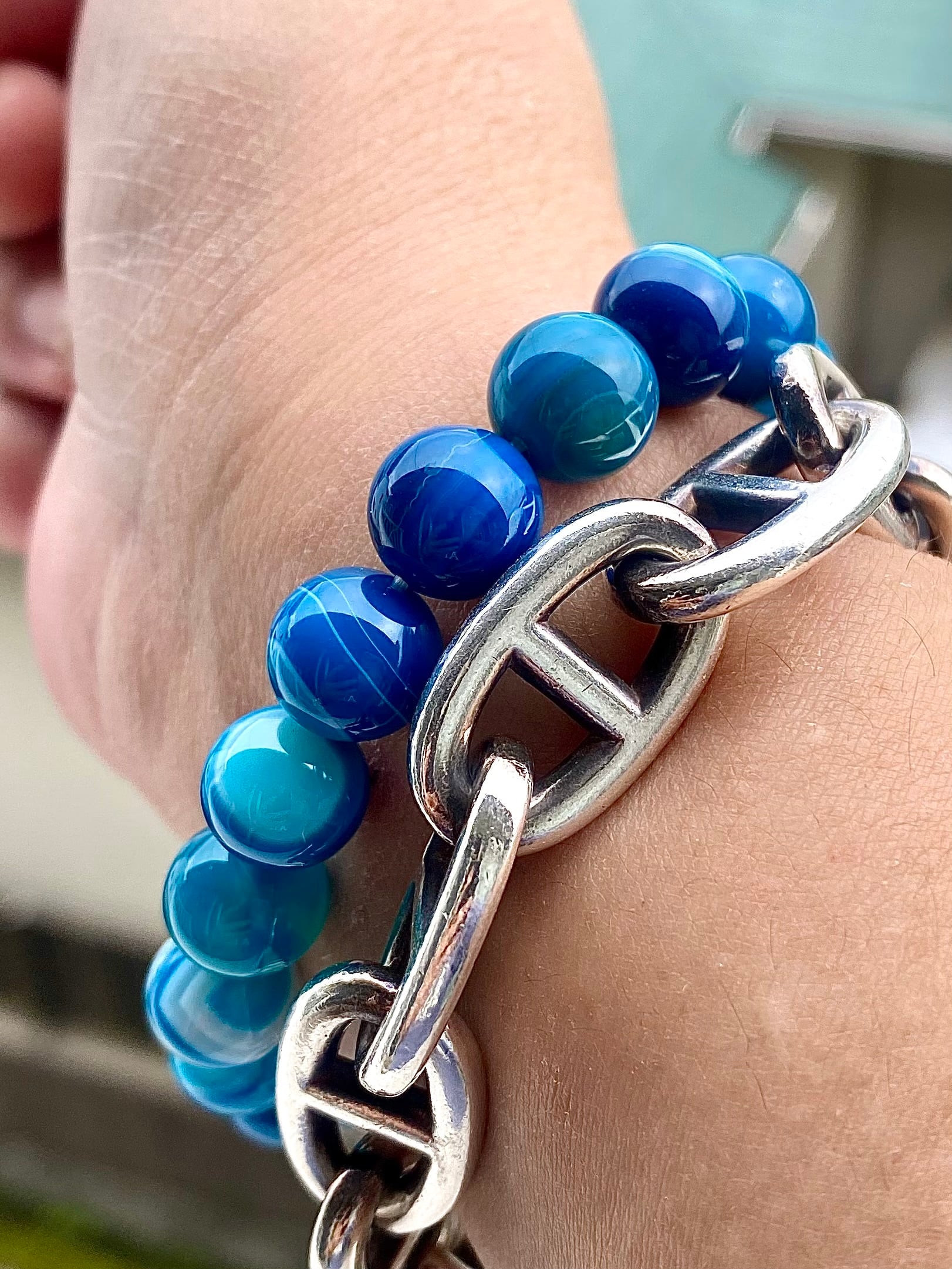 瑪瑙専門ショップにて買い付けしました天然石ブルー瑪瑙染めブレスレットです。