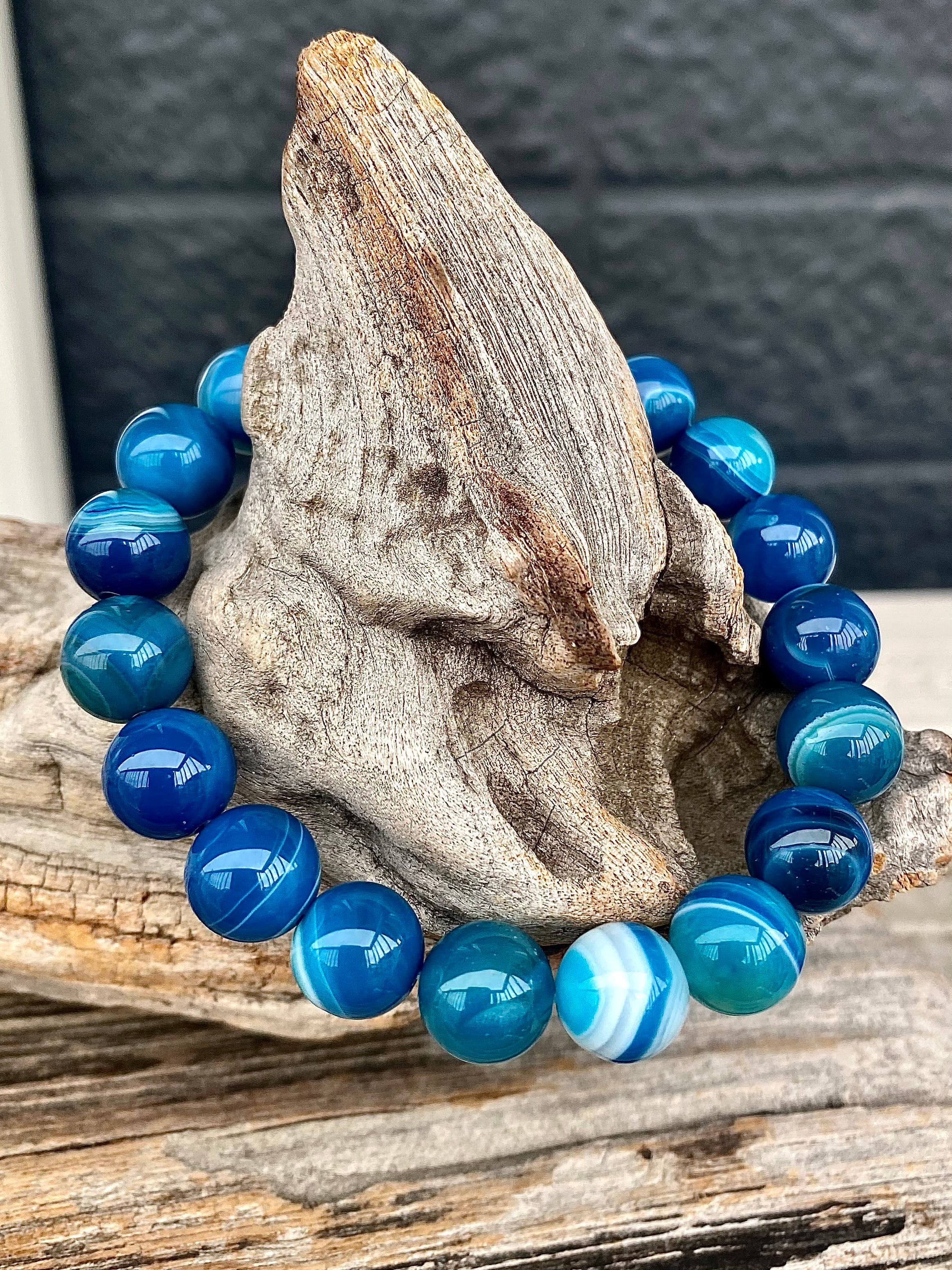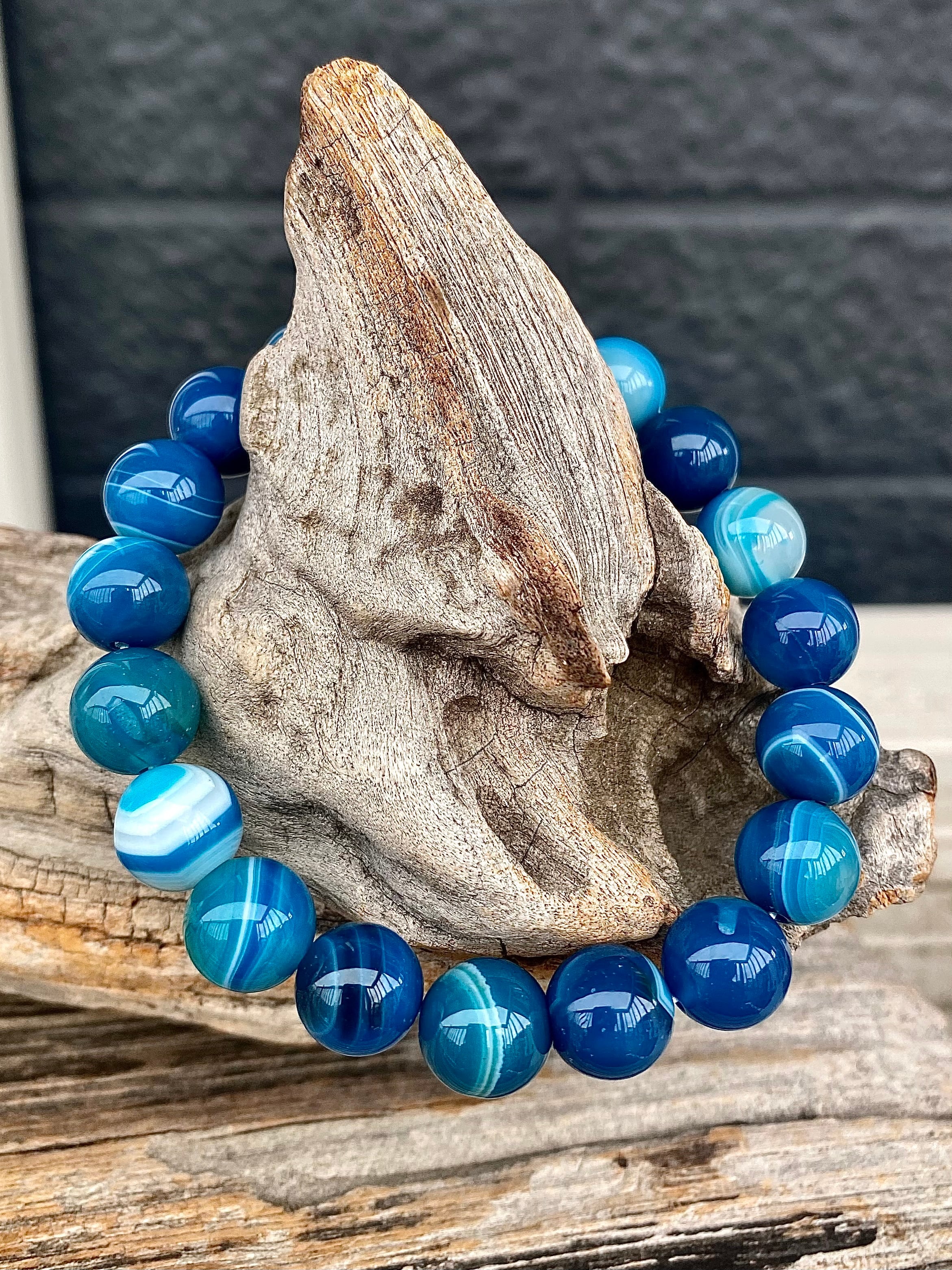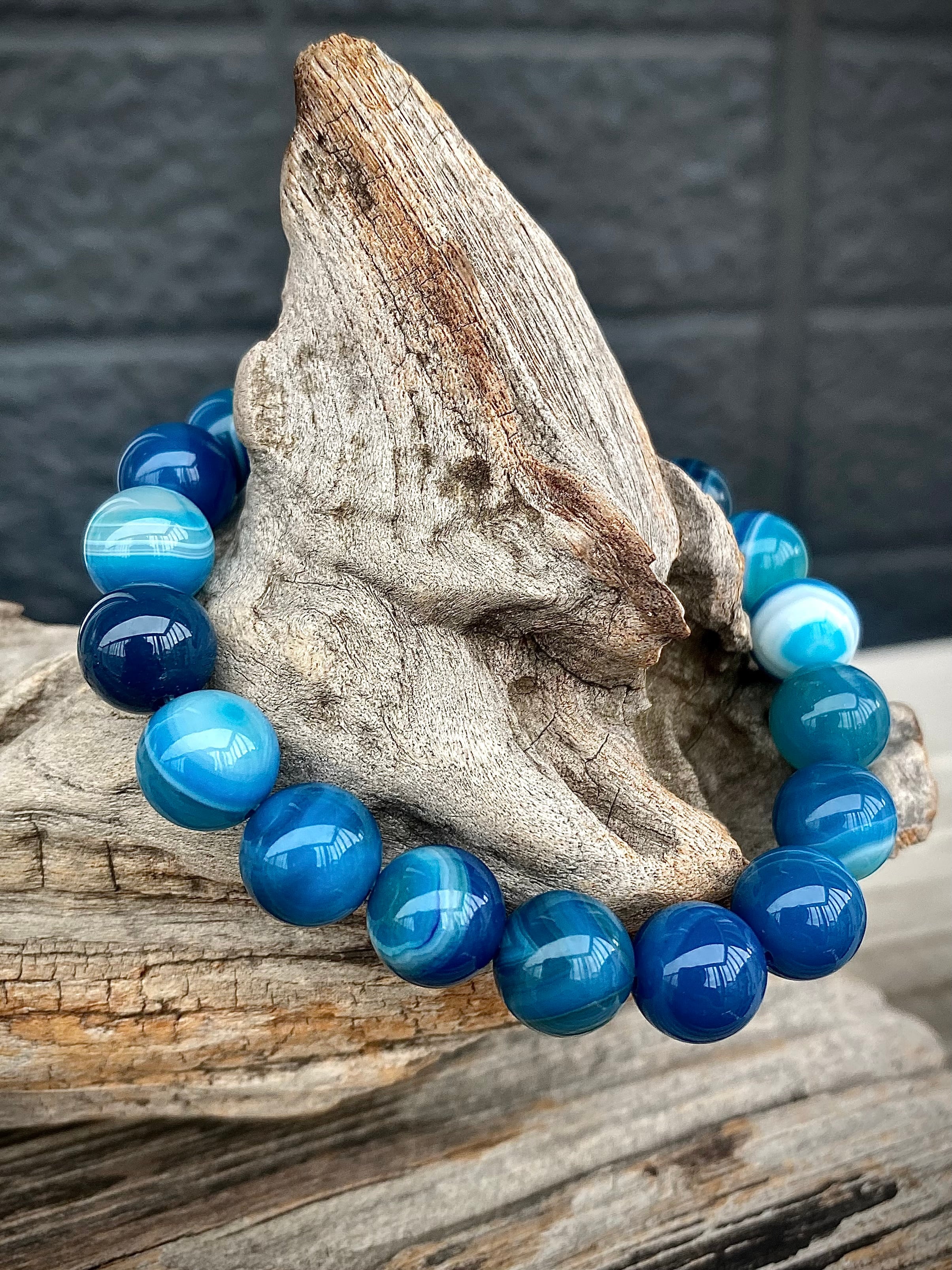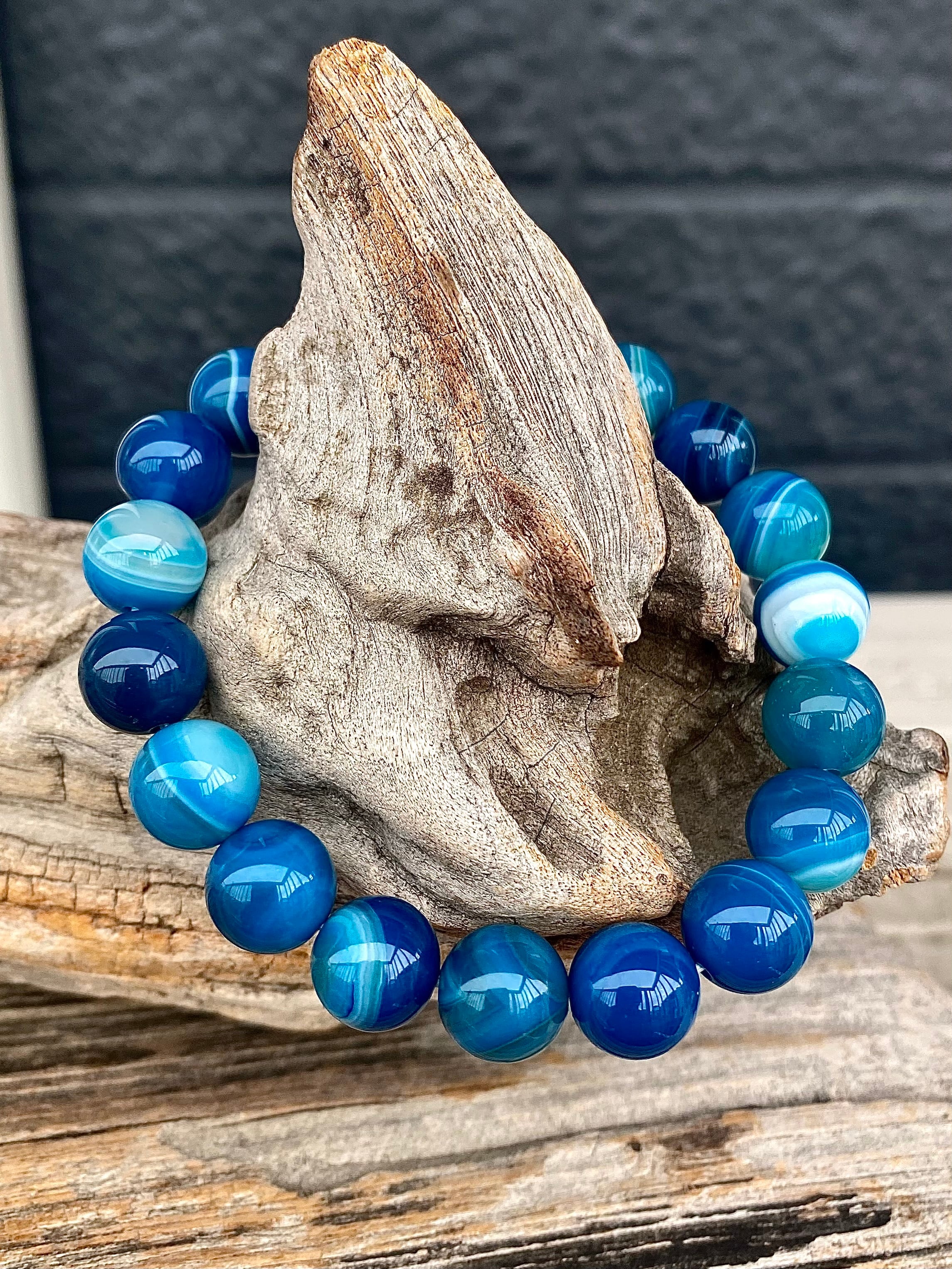 瑪瑙専門ショップにて買い付けしました天然石ブルー瑪瑙染めブレスレットです。